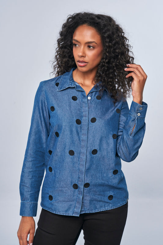 casaco jeans malha manga longa com bordado