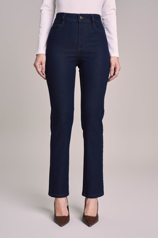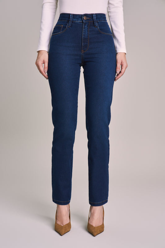 calça jeans reta cintura intermediária tradicional