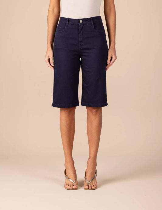 bermuda jeans ciclista cintura intemediária com ponto corrente