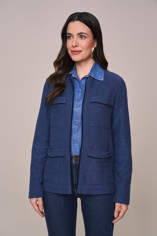 jaqueta malha color tradicional com bolsos