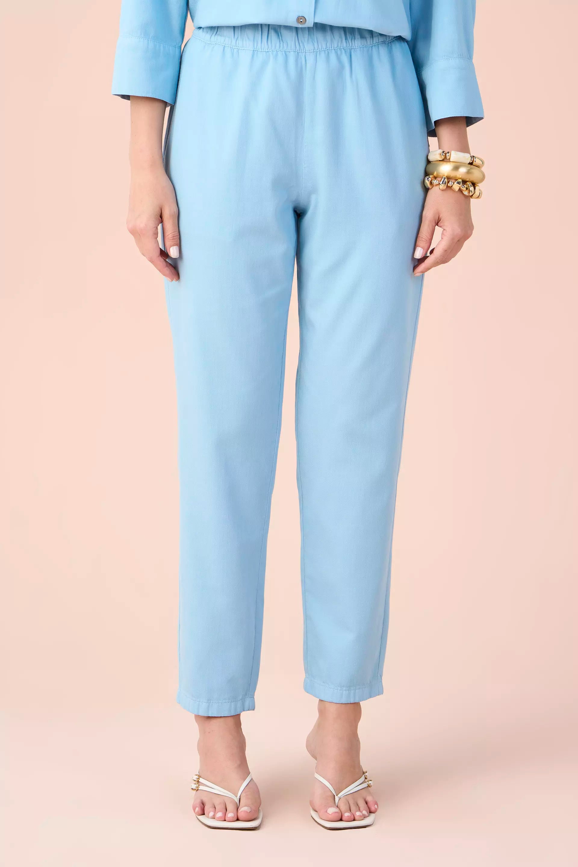 calça sarja mom cintura intermedíaria com elástico solta ao corpo sarja cos elastico para maior conforto use para um look casual 67% viscose 33% algodao