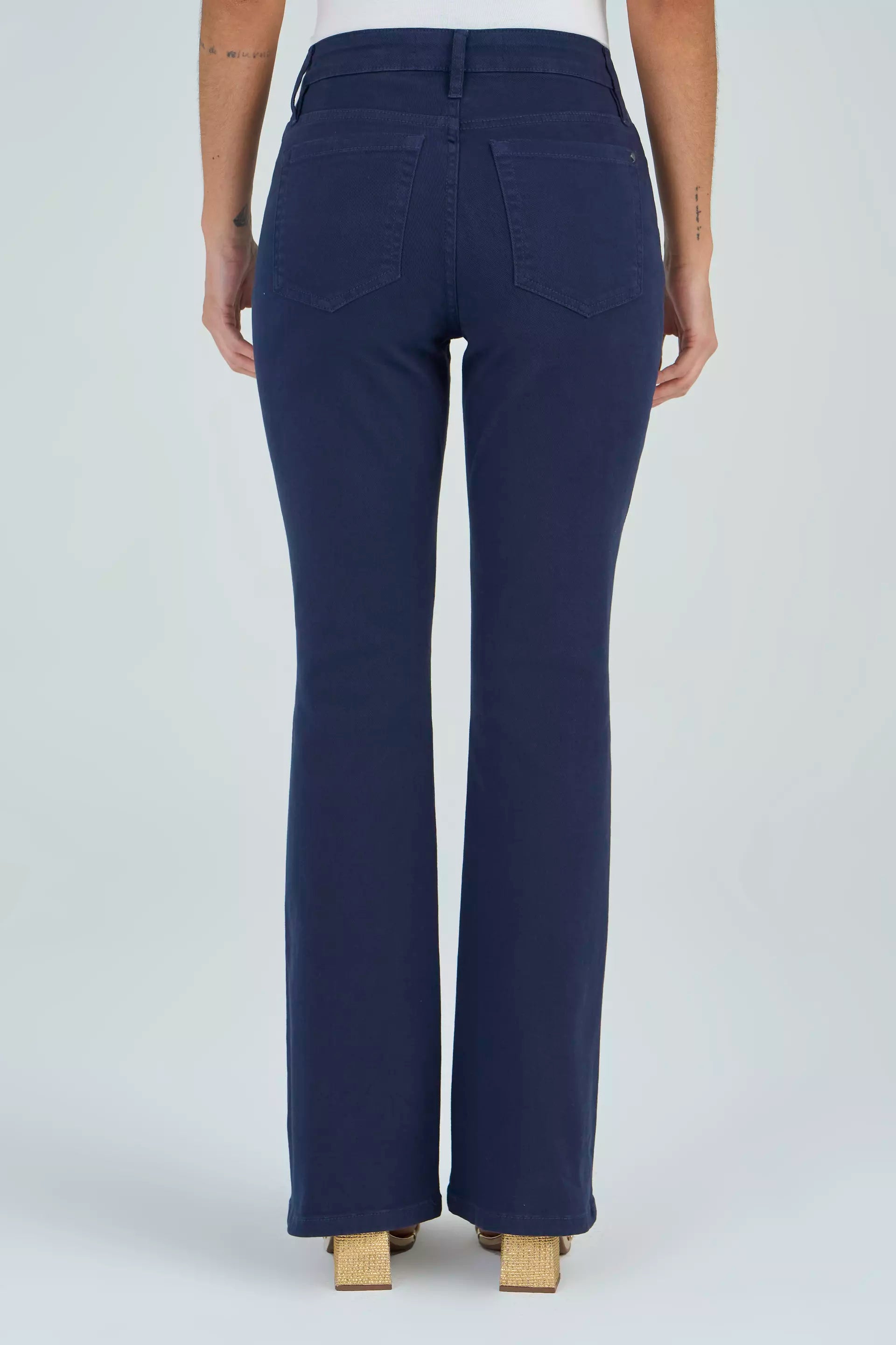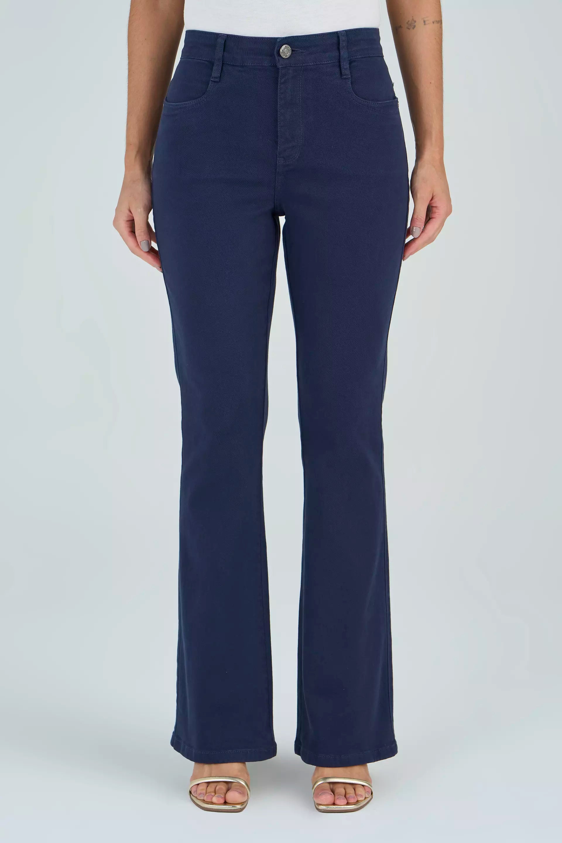 calça sarja bootcut cintura intermedíaria básica