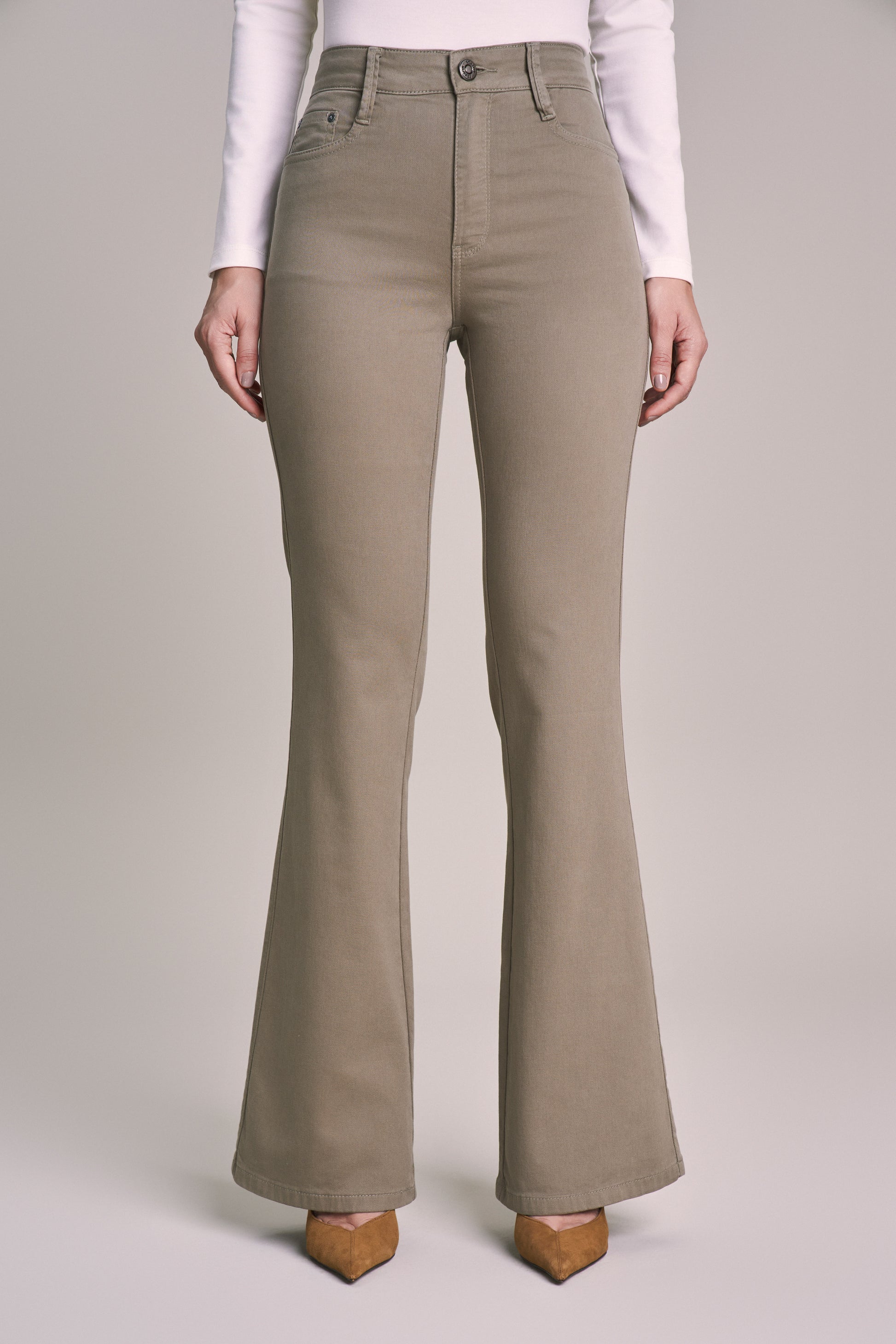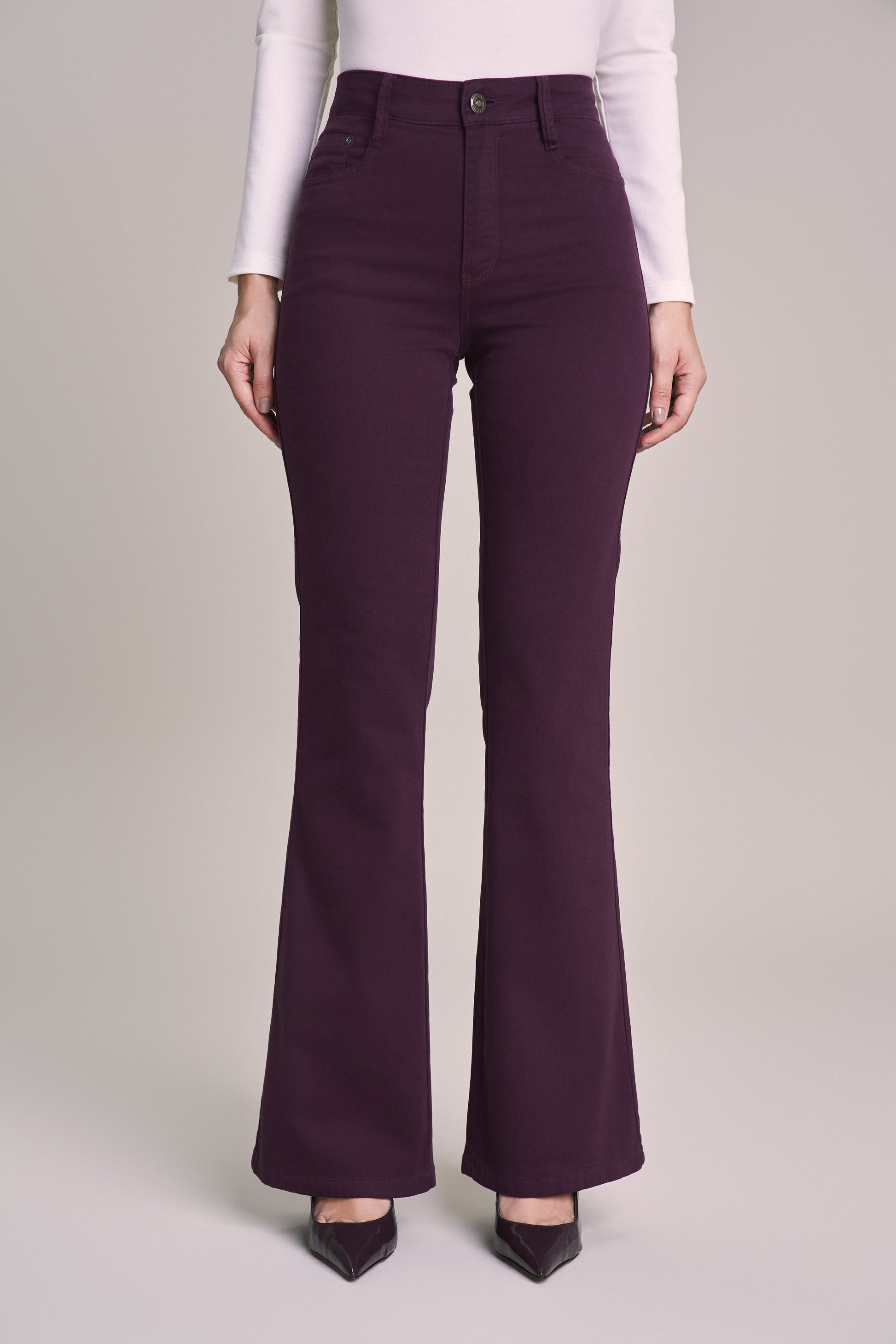 calça malha color flare cintura intermediária tradicional