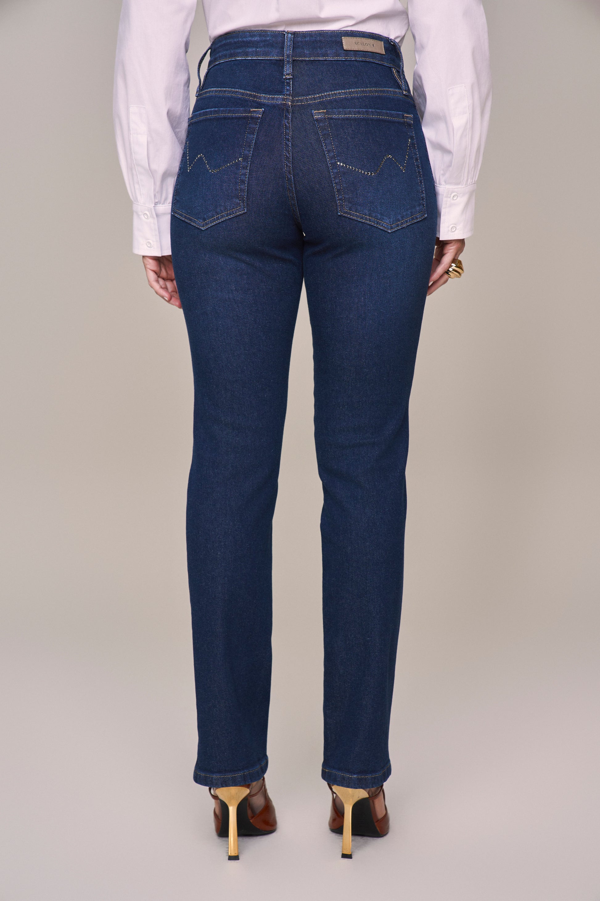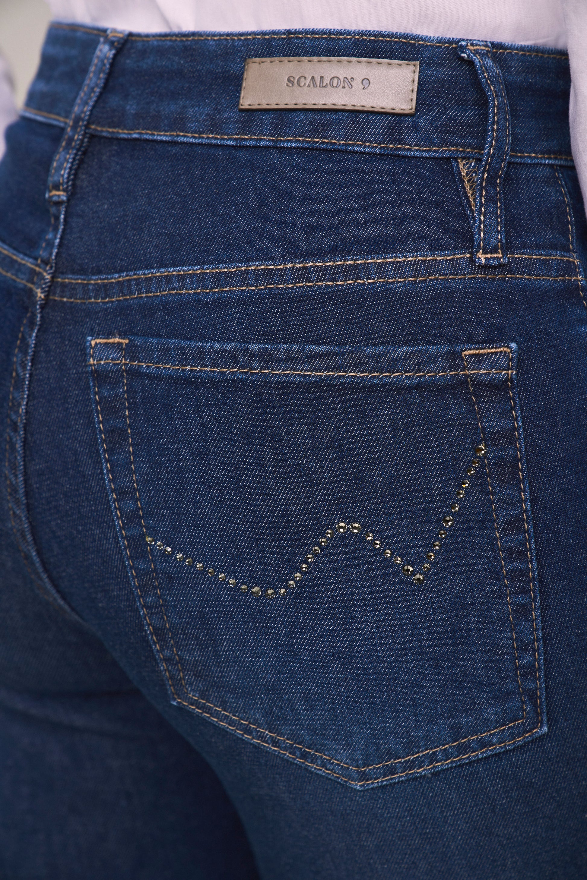calça jeans reta cintura intermediária com cristais