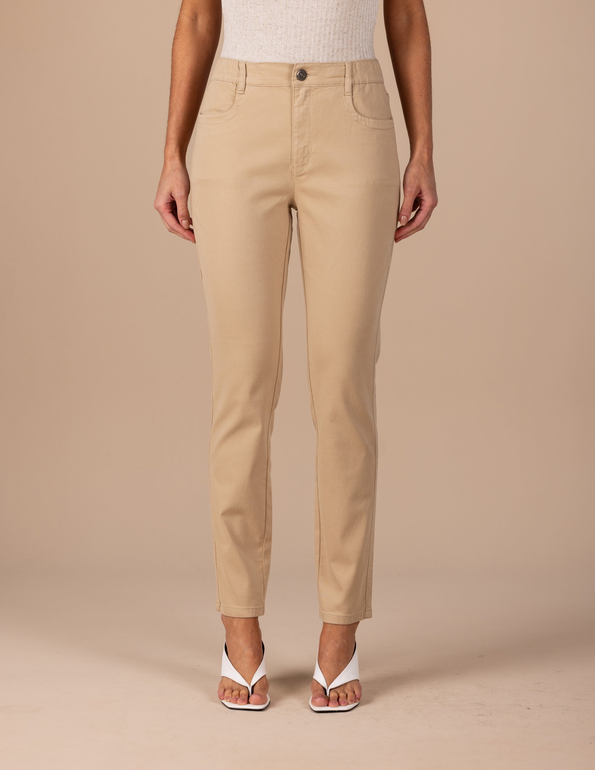 calça malha color skinny cintura intermediária com elástico