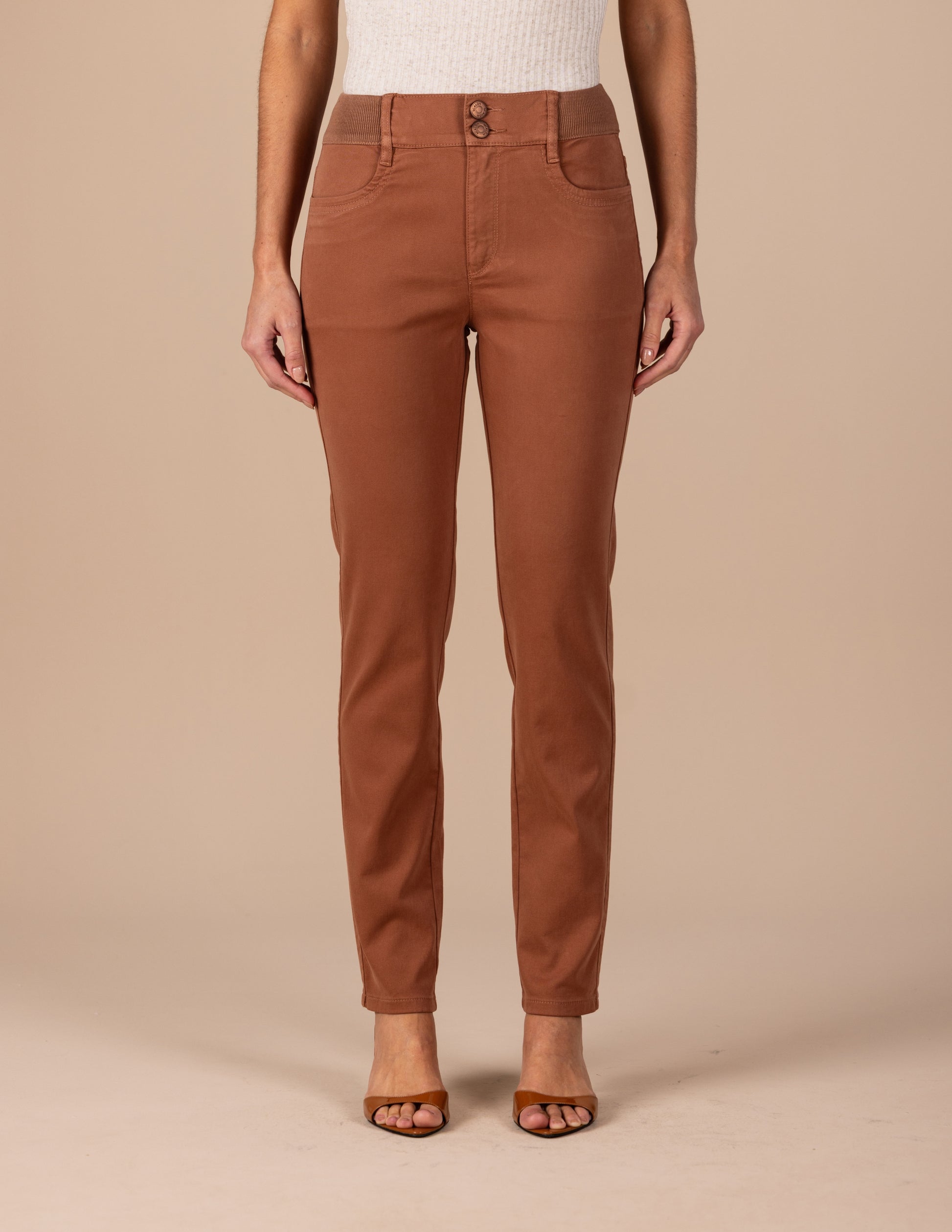 calça malha color skinny cintura intermediária cós de tricot