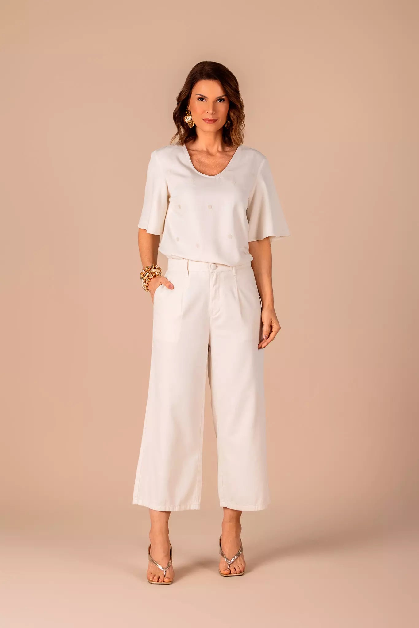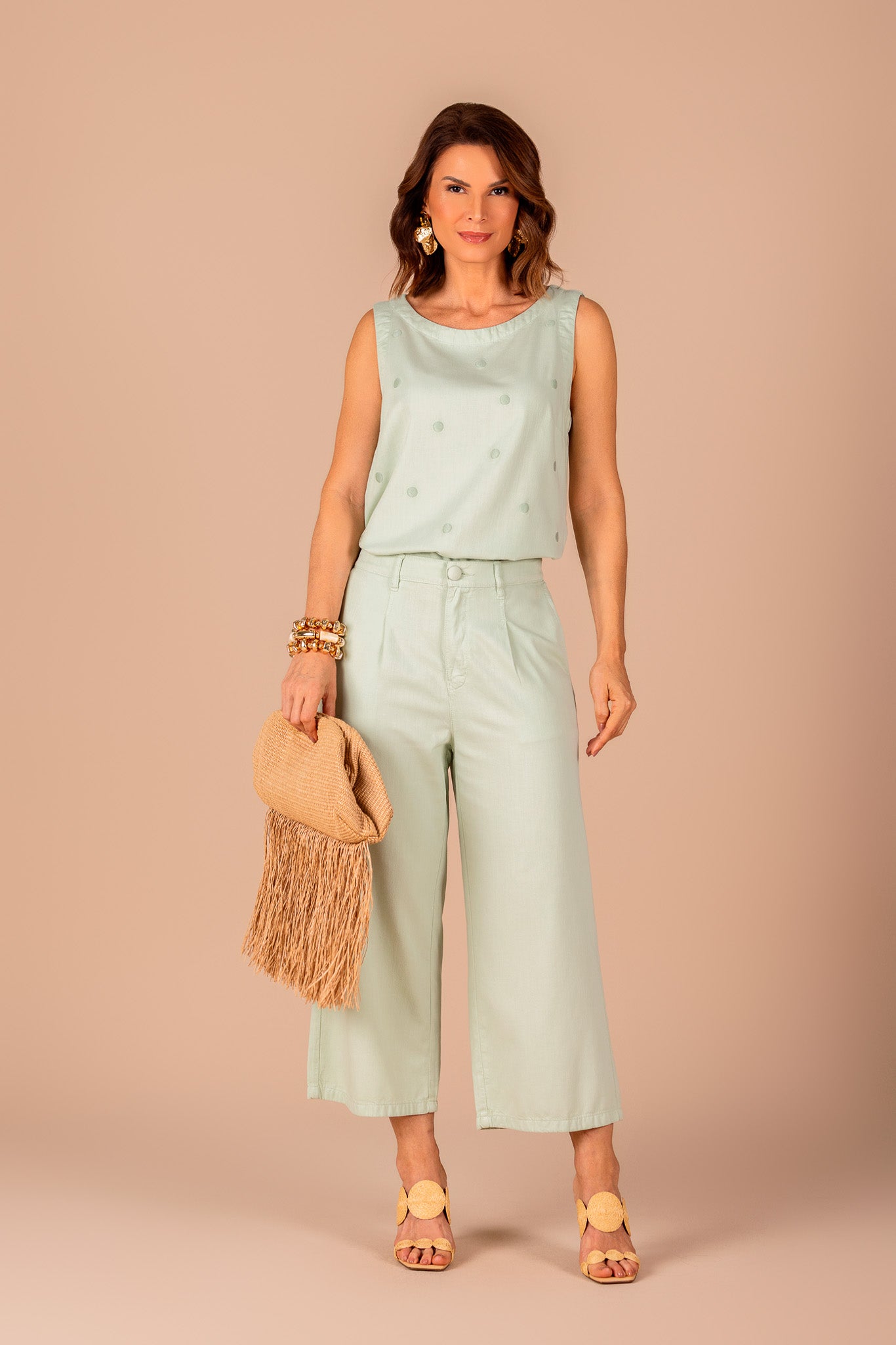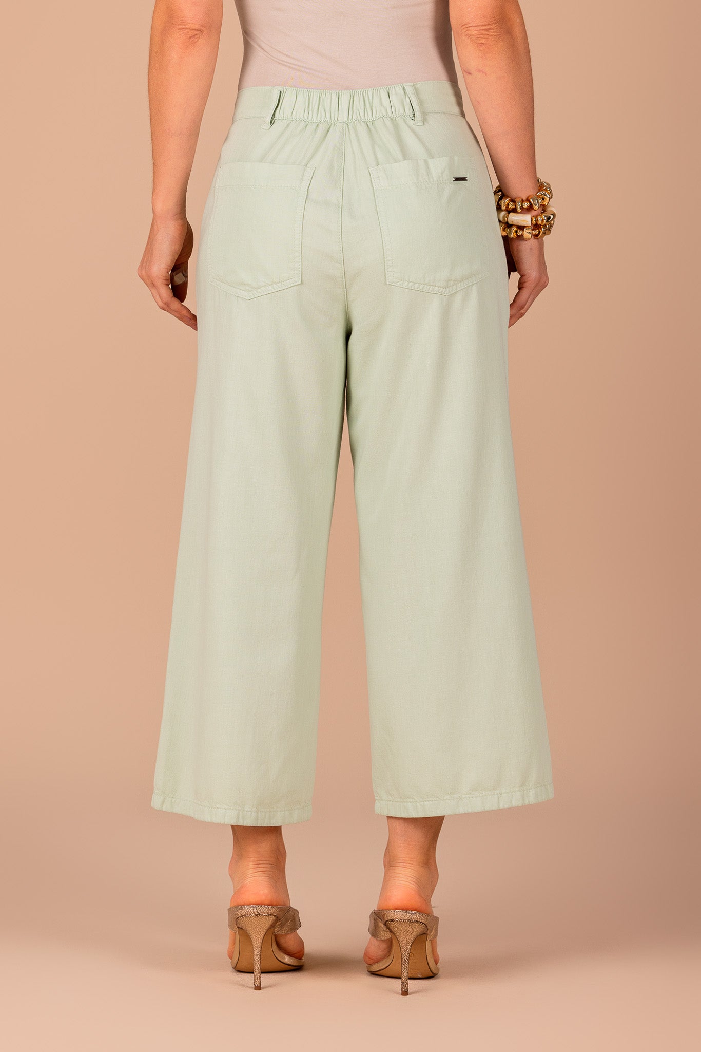 calça sarja pantacourt cintura intermediária cós de elástico se ajusta naturalmente ao corpo sarja color pregas use para um look casual 67% viscose 33% algodao