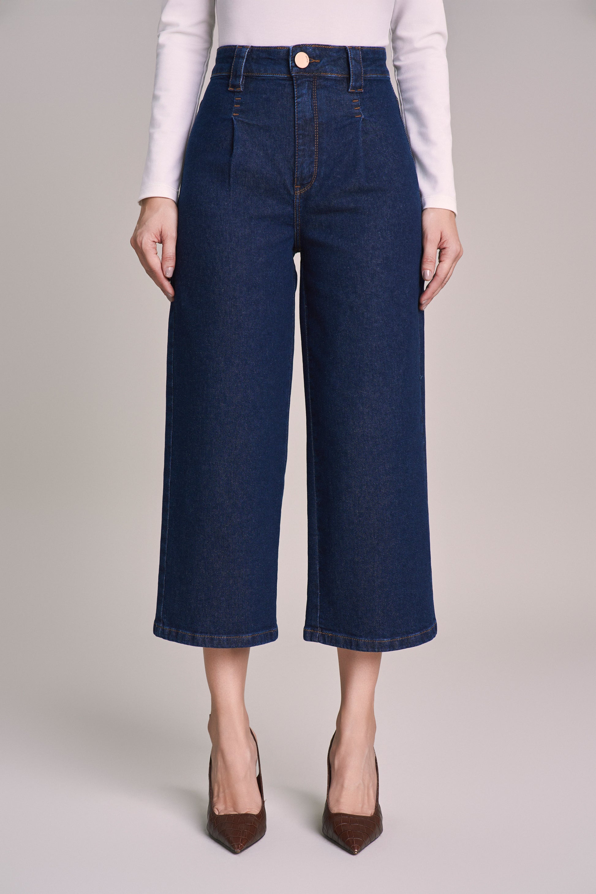 calça jeans pantacourt cintura intermediária com travetes se ajusta naturalmente ao corpo jeans com elastano pregas use para um look casual 98% algodão 2% elastano
