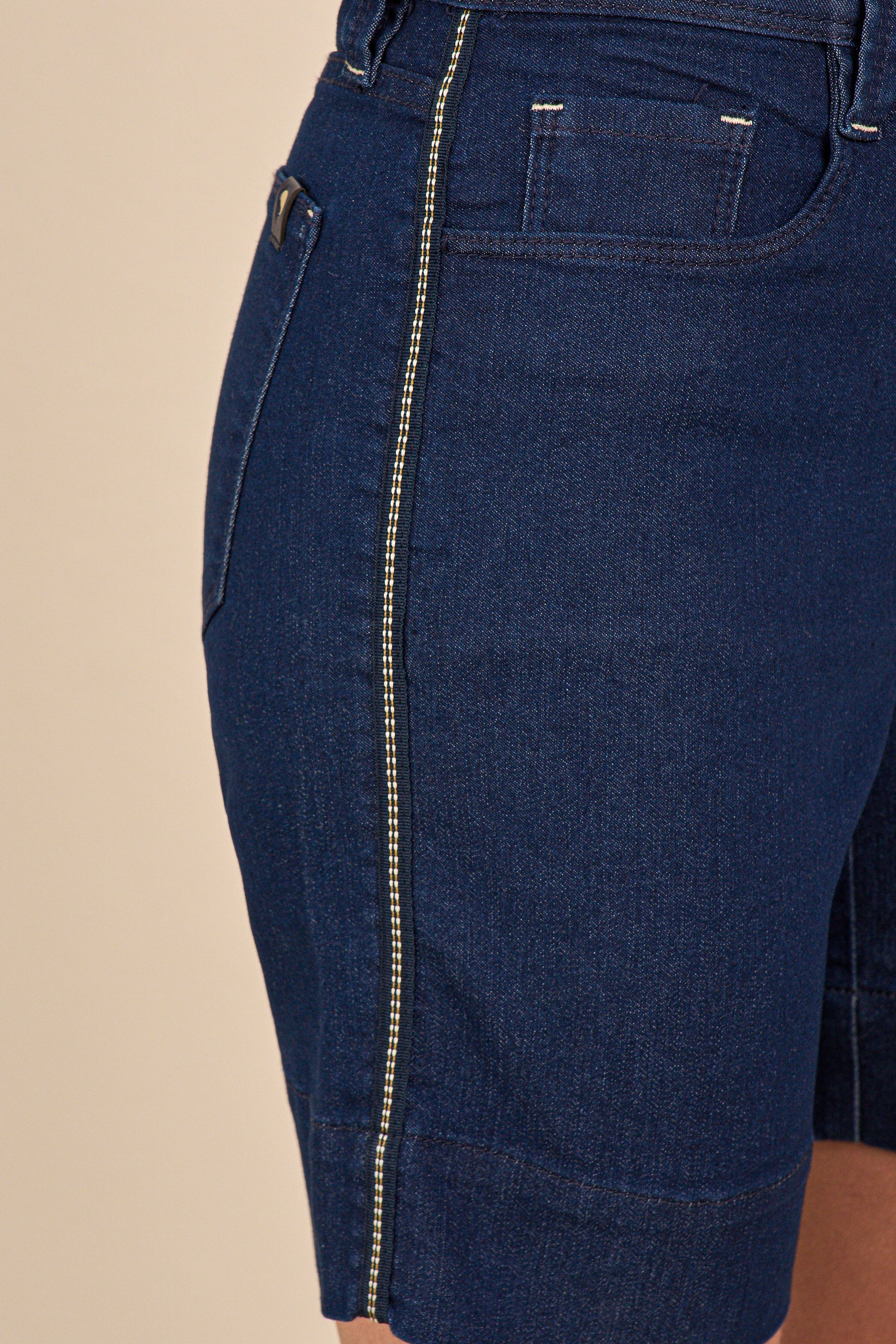 bermuda jeans midi cintura intermediária com galão lateral se ajusta naturalmente ao corpo jeans leve galão use para um look casual 72% algodão 26% poliéster 2% elastano