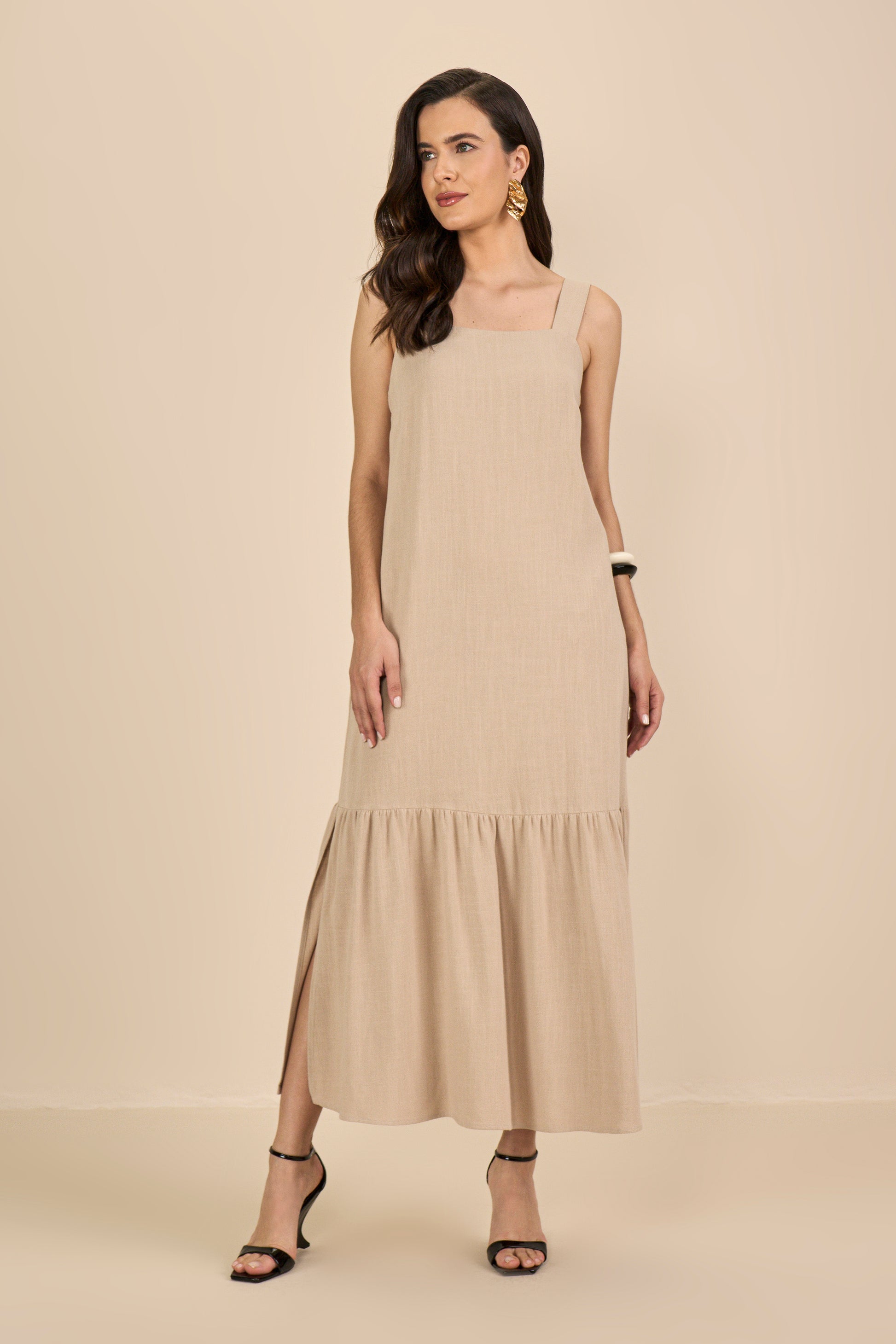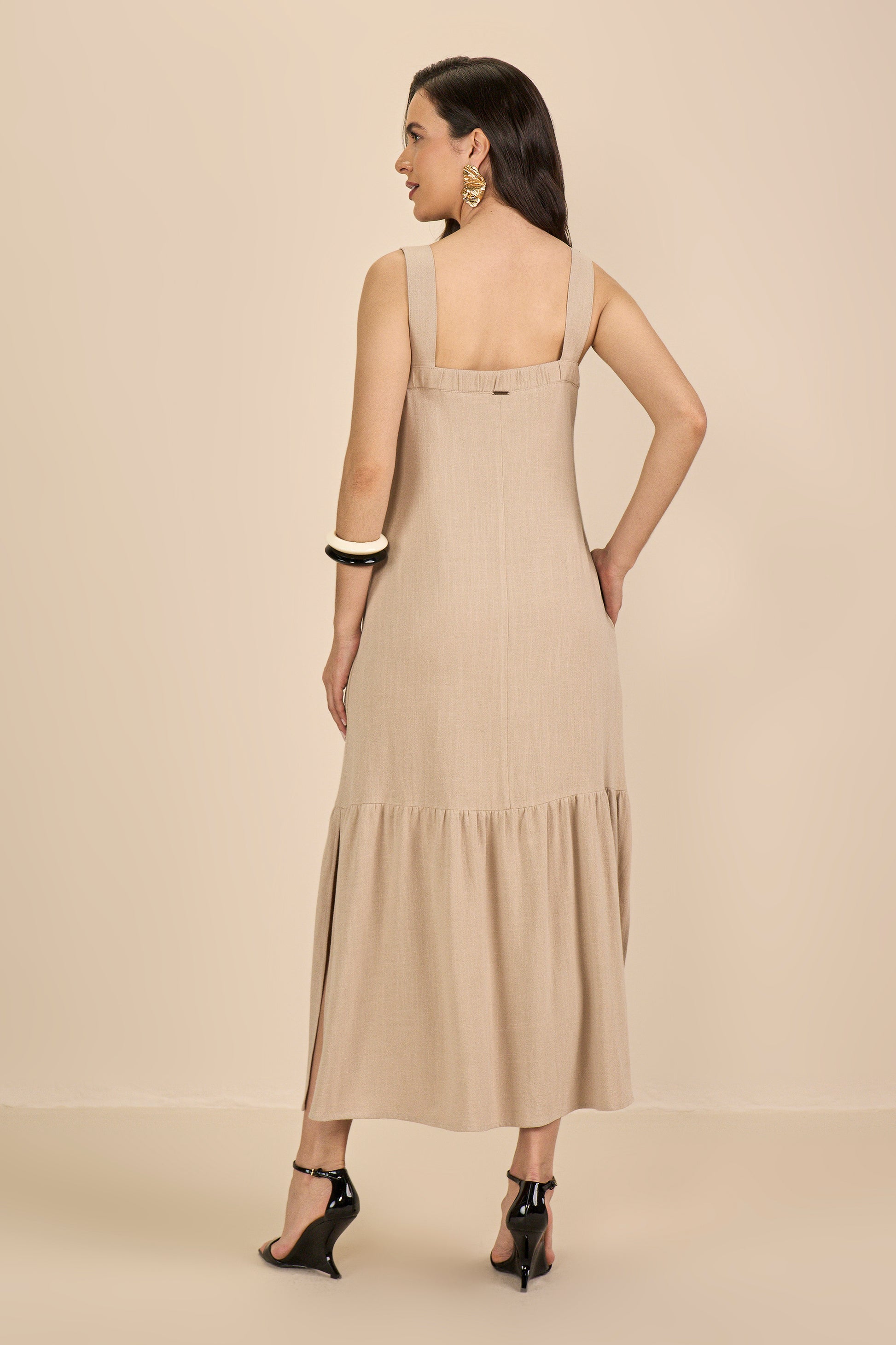 vestido viscose longuete com abertura solto ao corpo viscose abertura barra use para um look casual 80%viscose 20%linho