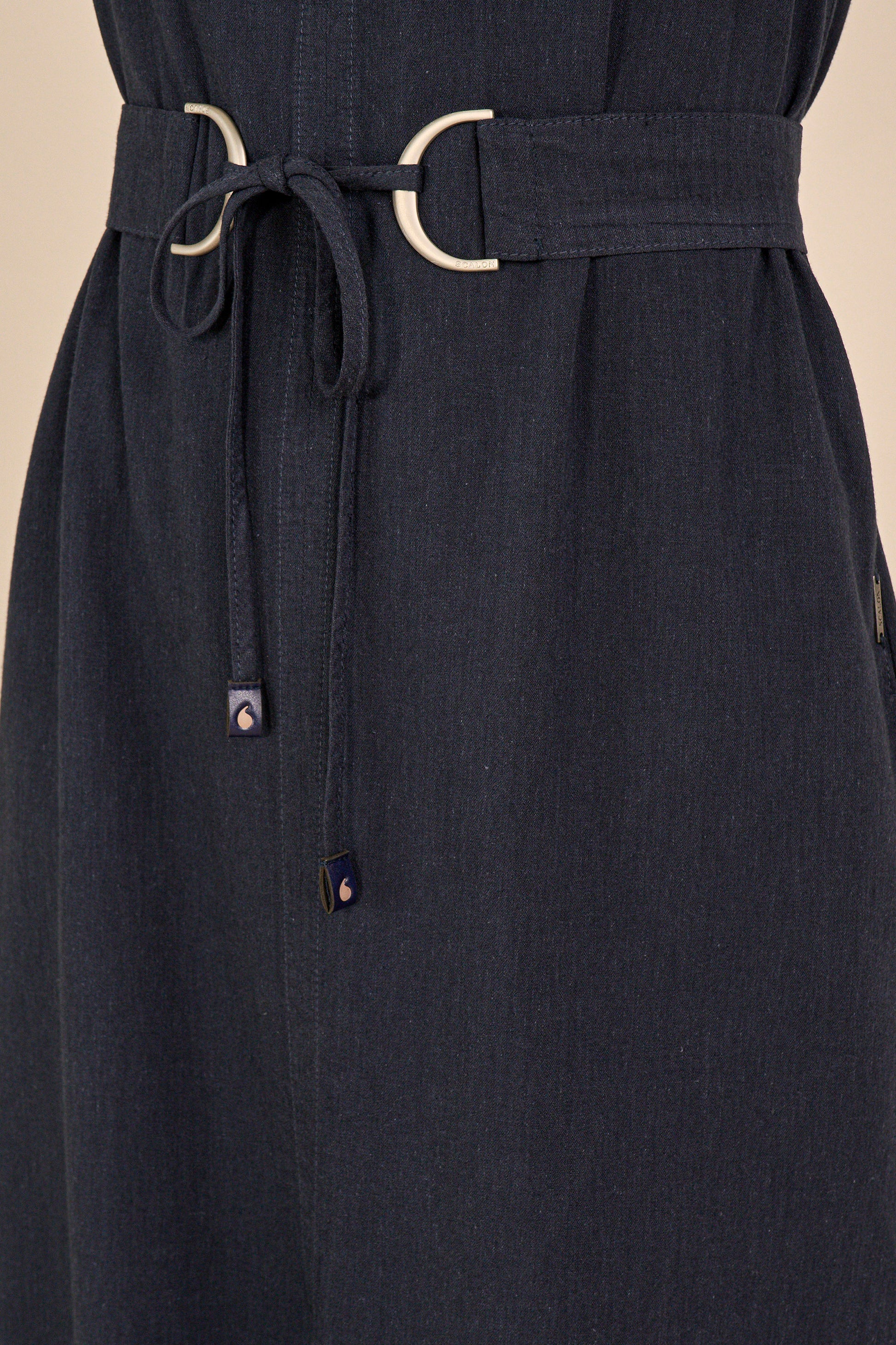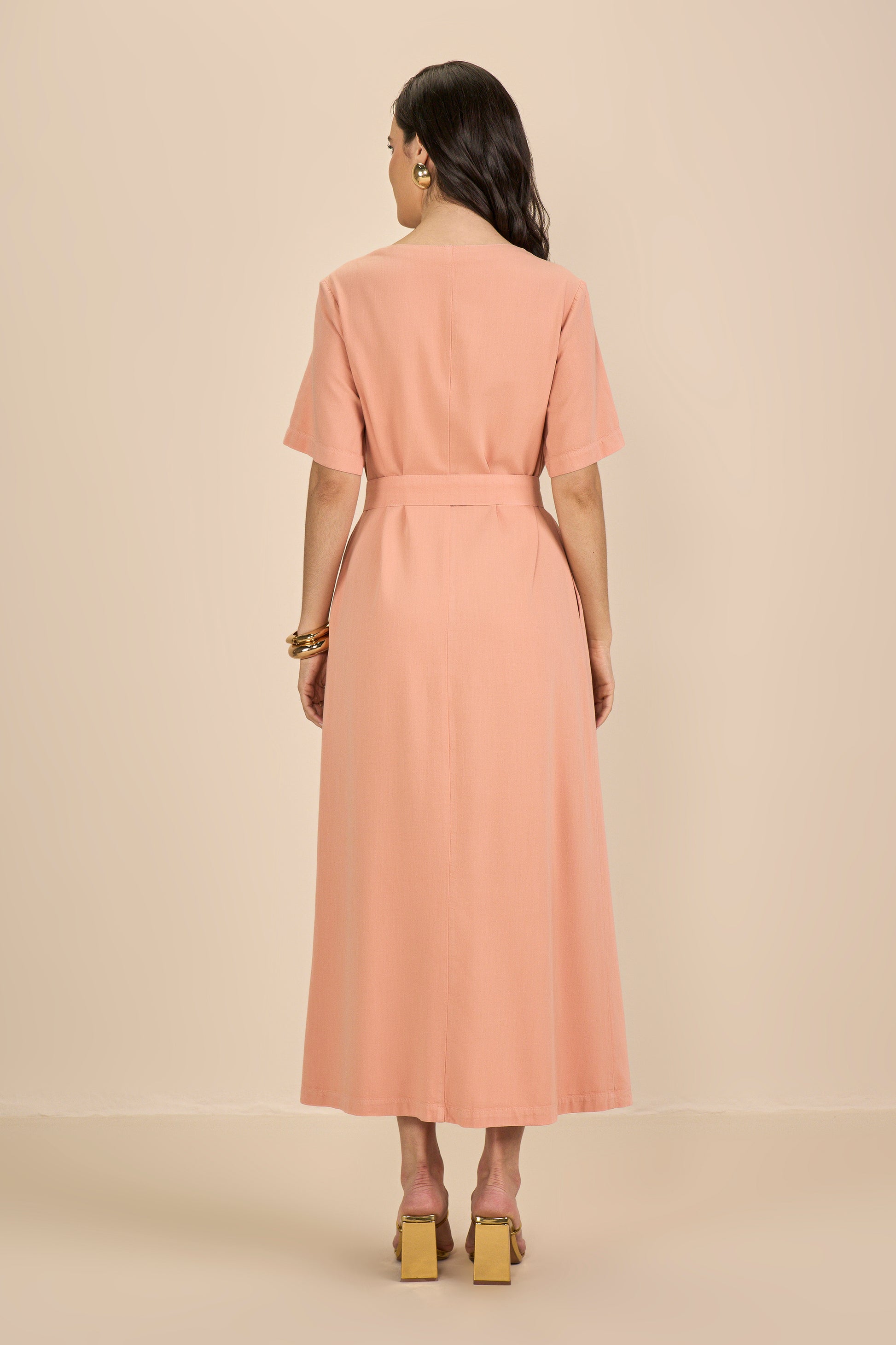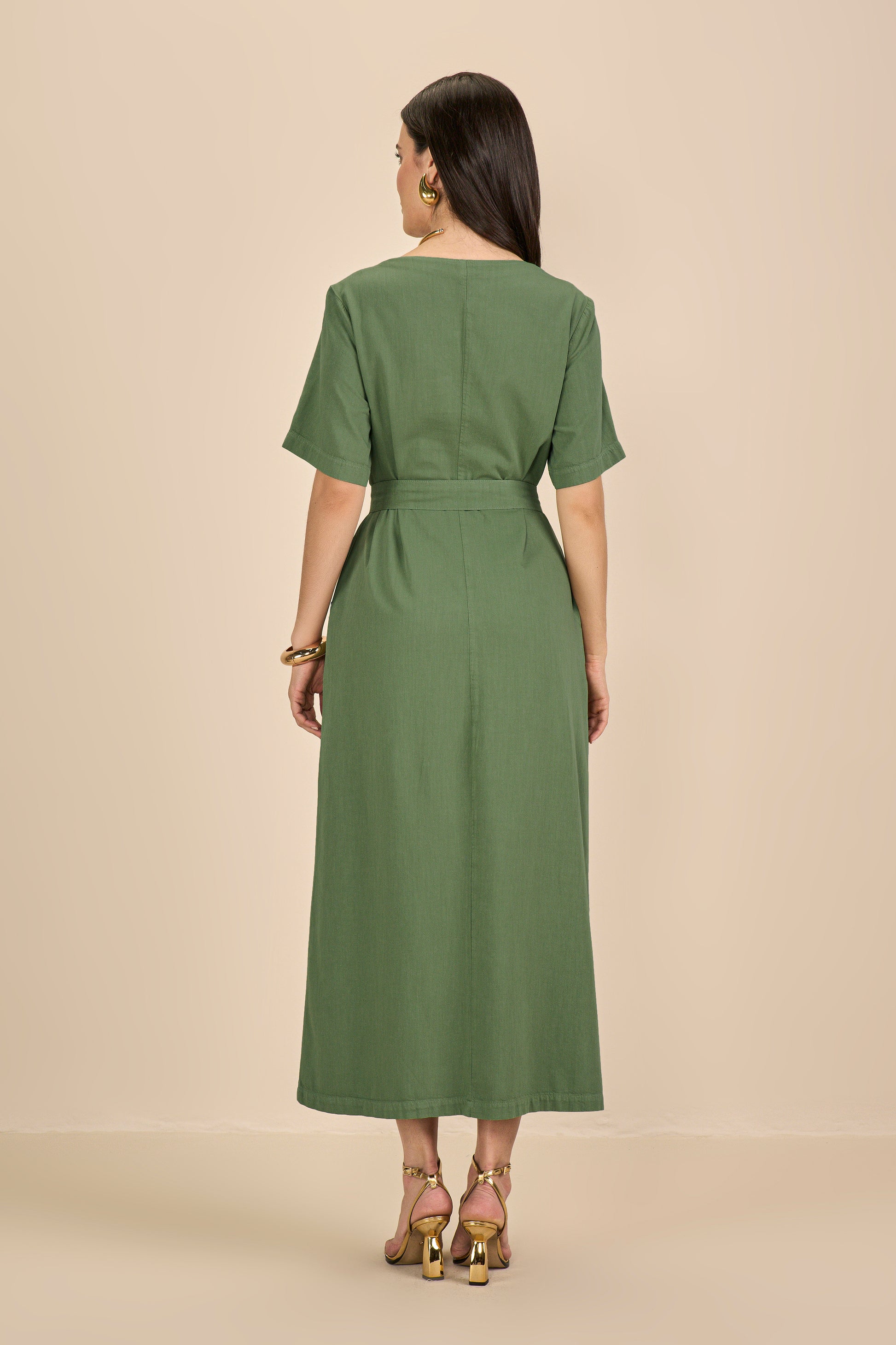 vestido sarja longuete manga curta com faixa solto ao corpo sarja leve faixa use para um look casual 67% viscose 33% algodão