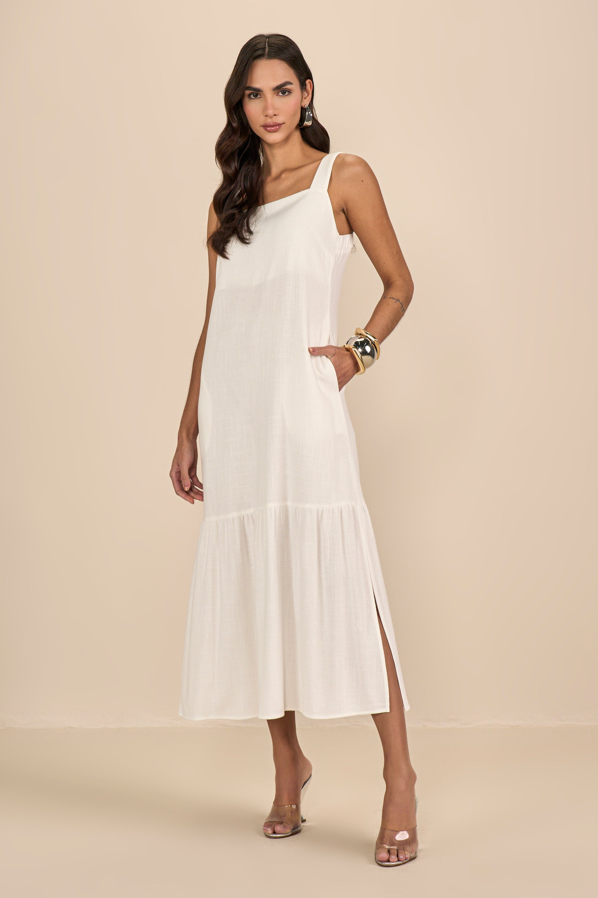 vestido viscose longuete com abertura solto ao corpo viscose abertura barra use para um look casual 80% viscose 20% linho