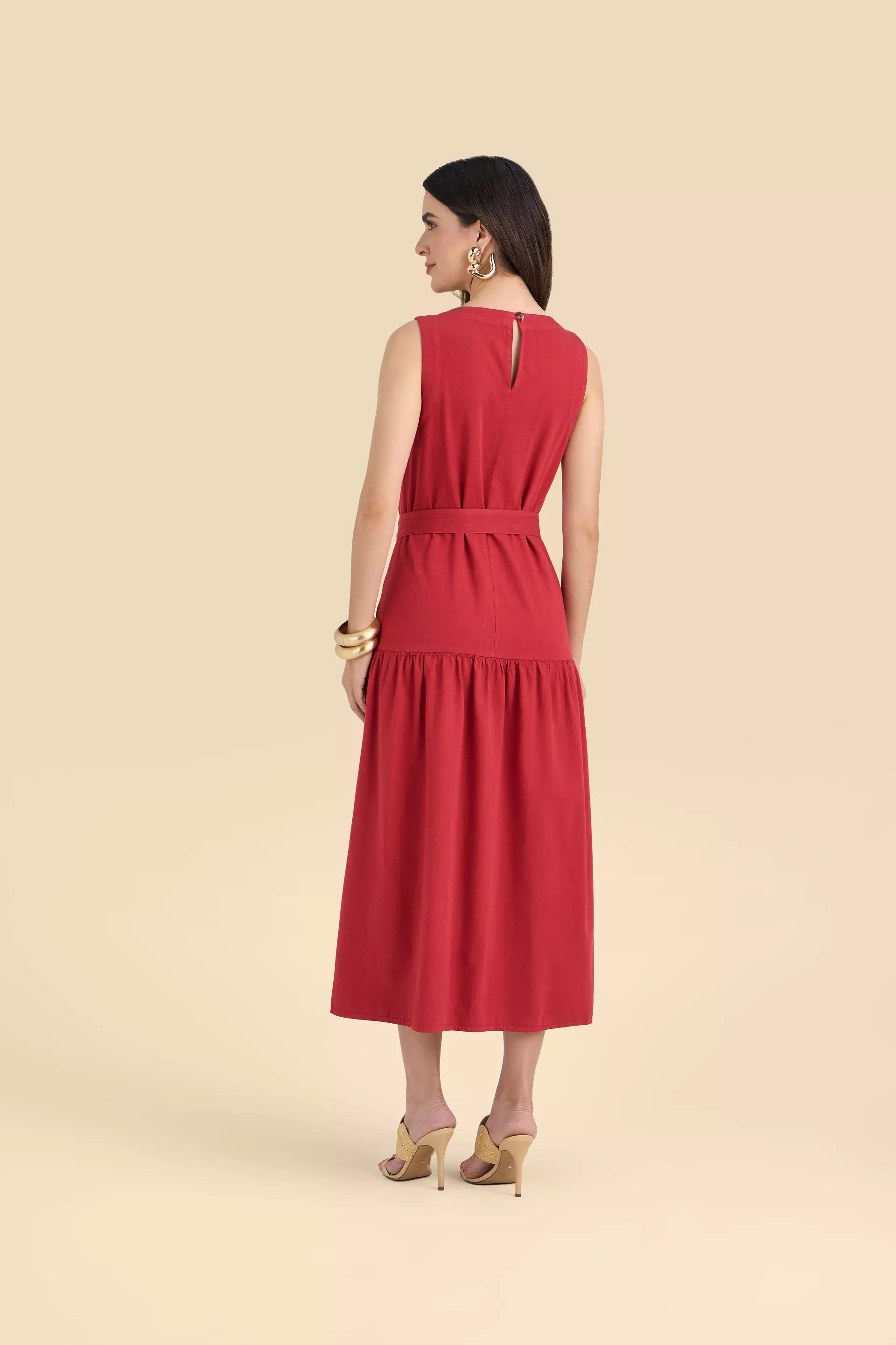 vestido sarja longuetealça larga com recorte e faixa solta ao corpo sarja leve recortes use para um look casual 67% viscose 33% algodao