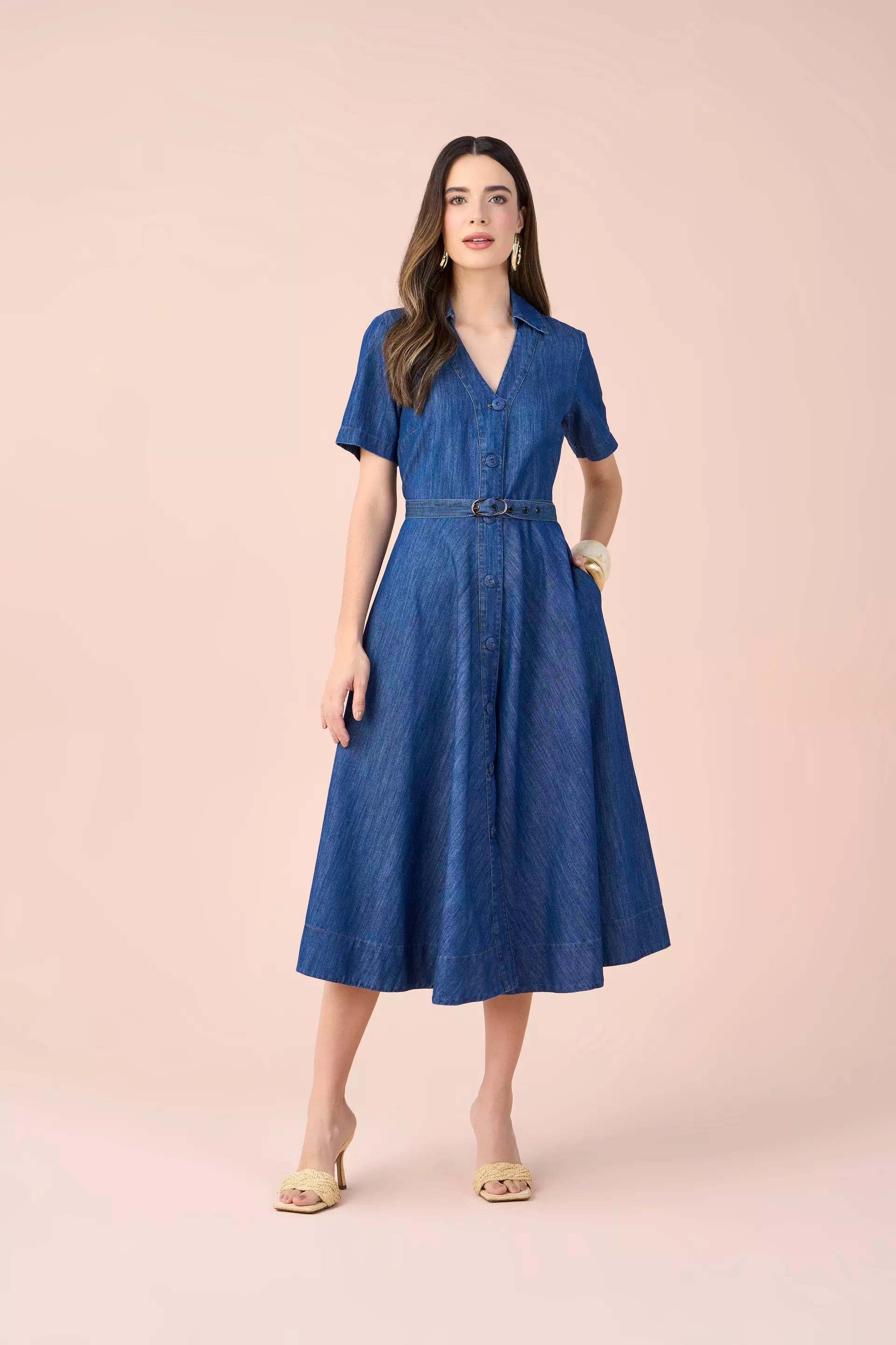vestido jeans midi manga curta com cinto solta ao corpo jeans leve cinto use para um look casual 100% algodao