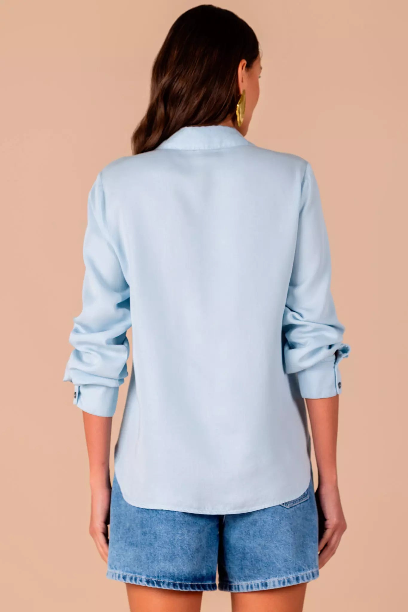 camisa sarja manga longa tradicional solta ao corpo sarja color tradicional use para um look atemporal 100% liocel