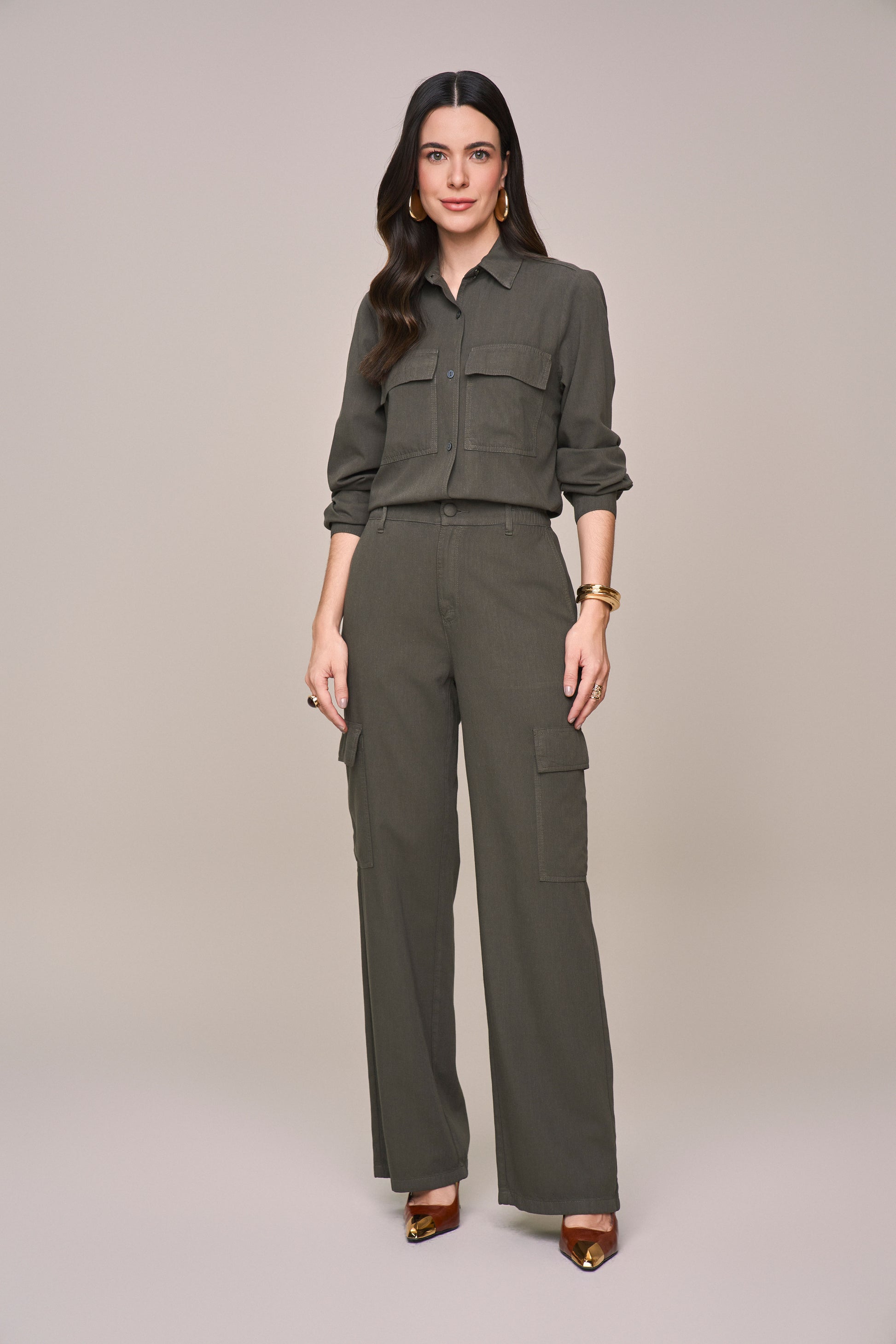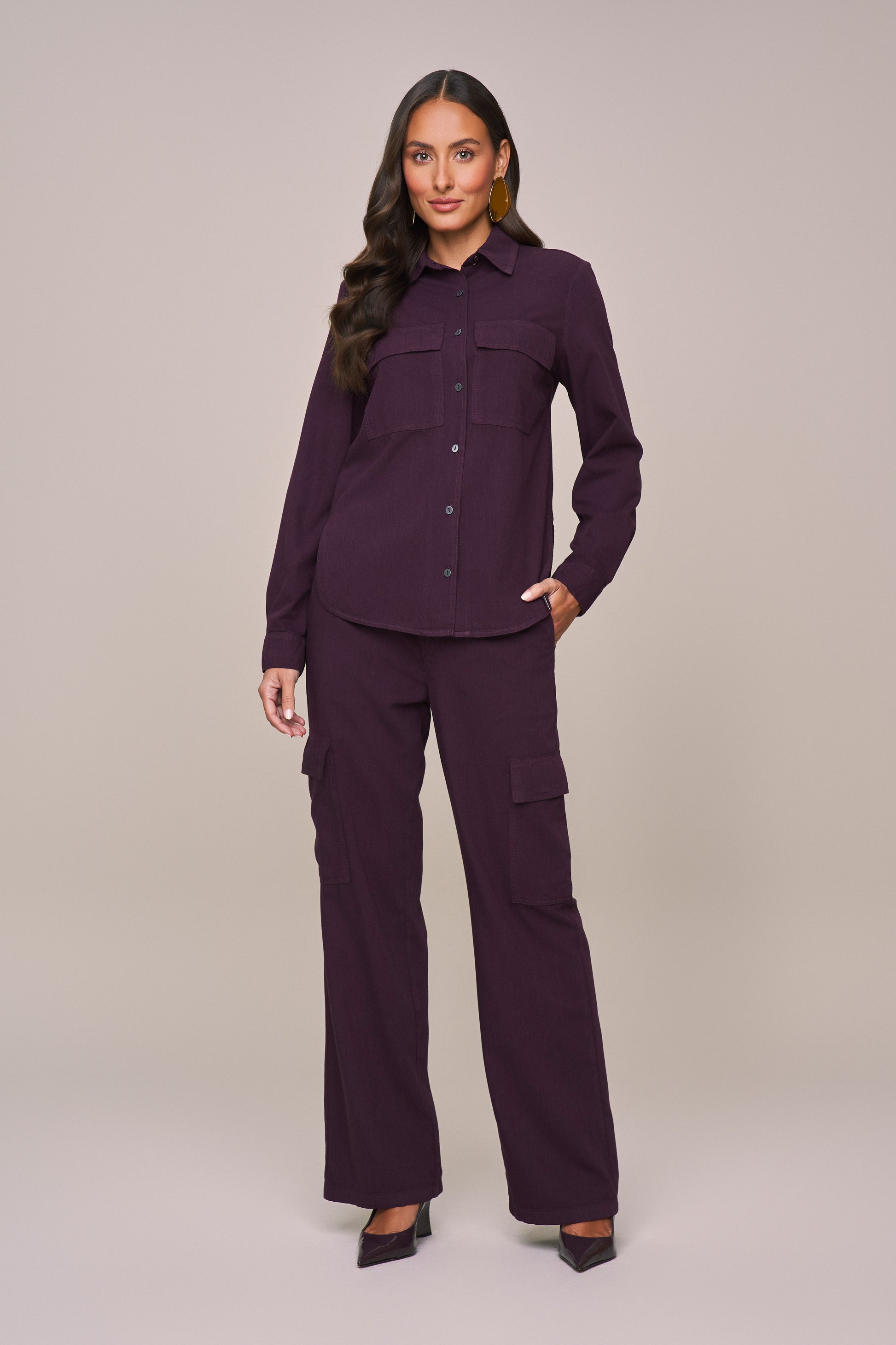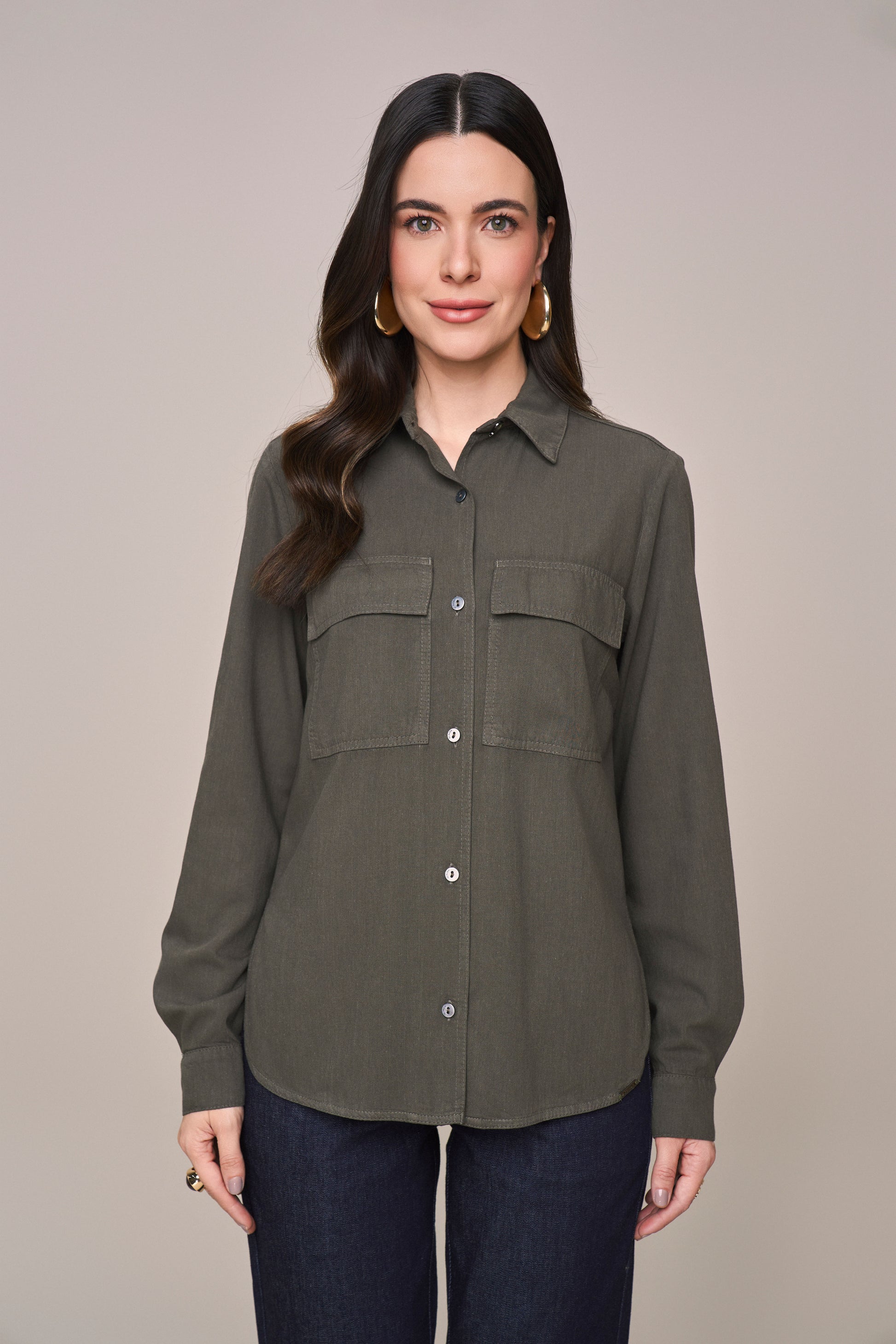 camisa sarja manga longa com bolsos sobrepostos