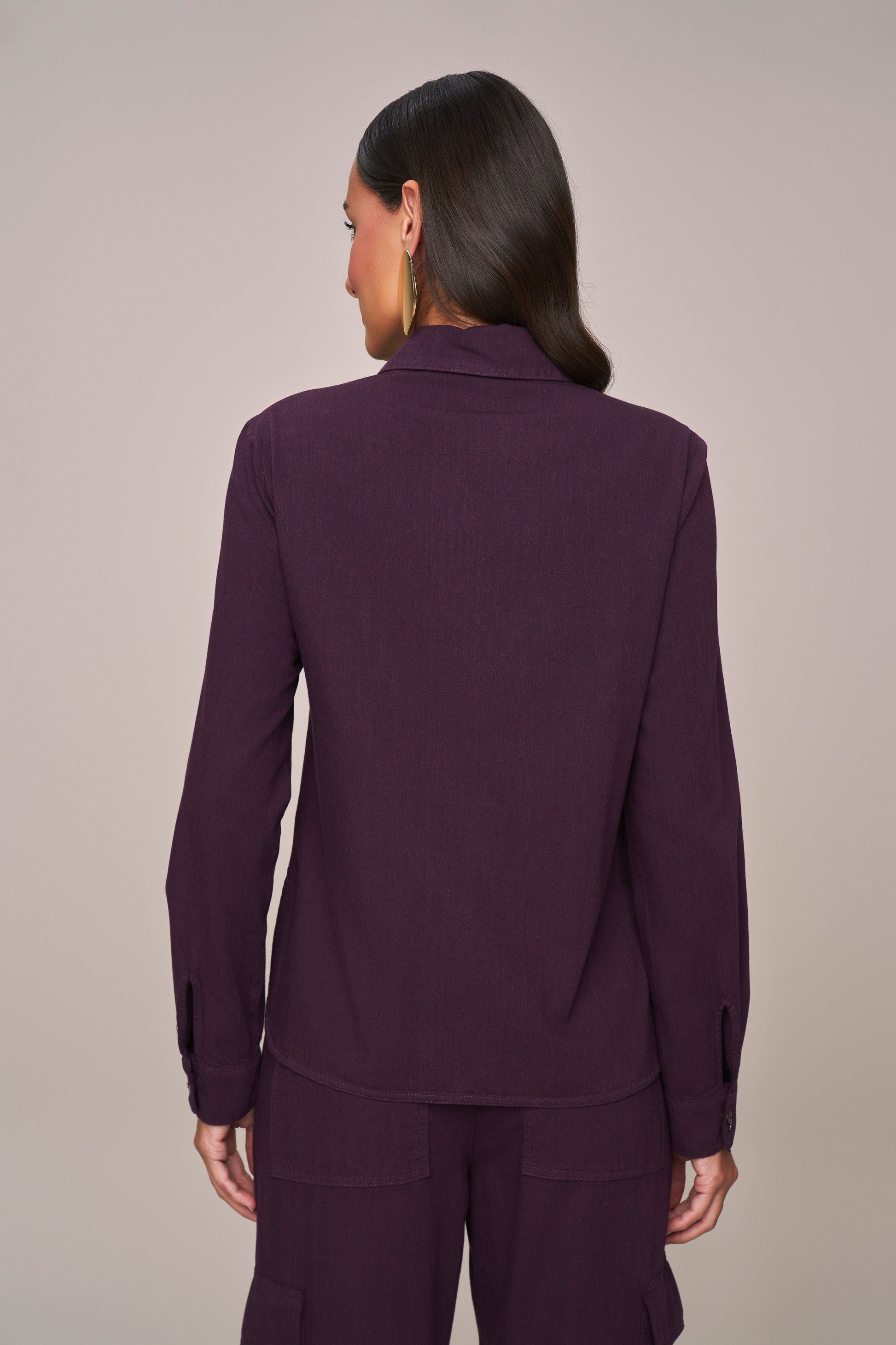camisa sarja manga longa com bolsos sobrepostos solta ao corpo sarja abertura lateral use para um look casual 67% viscose 33% algodao