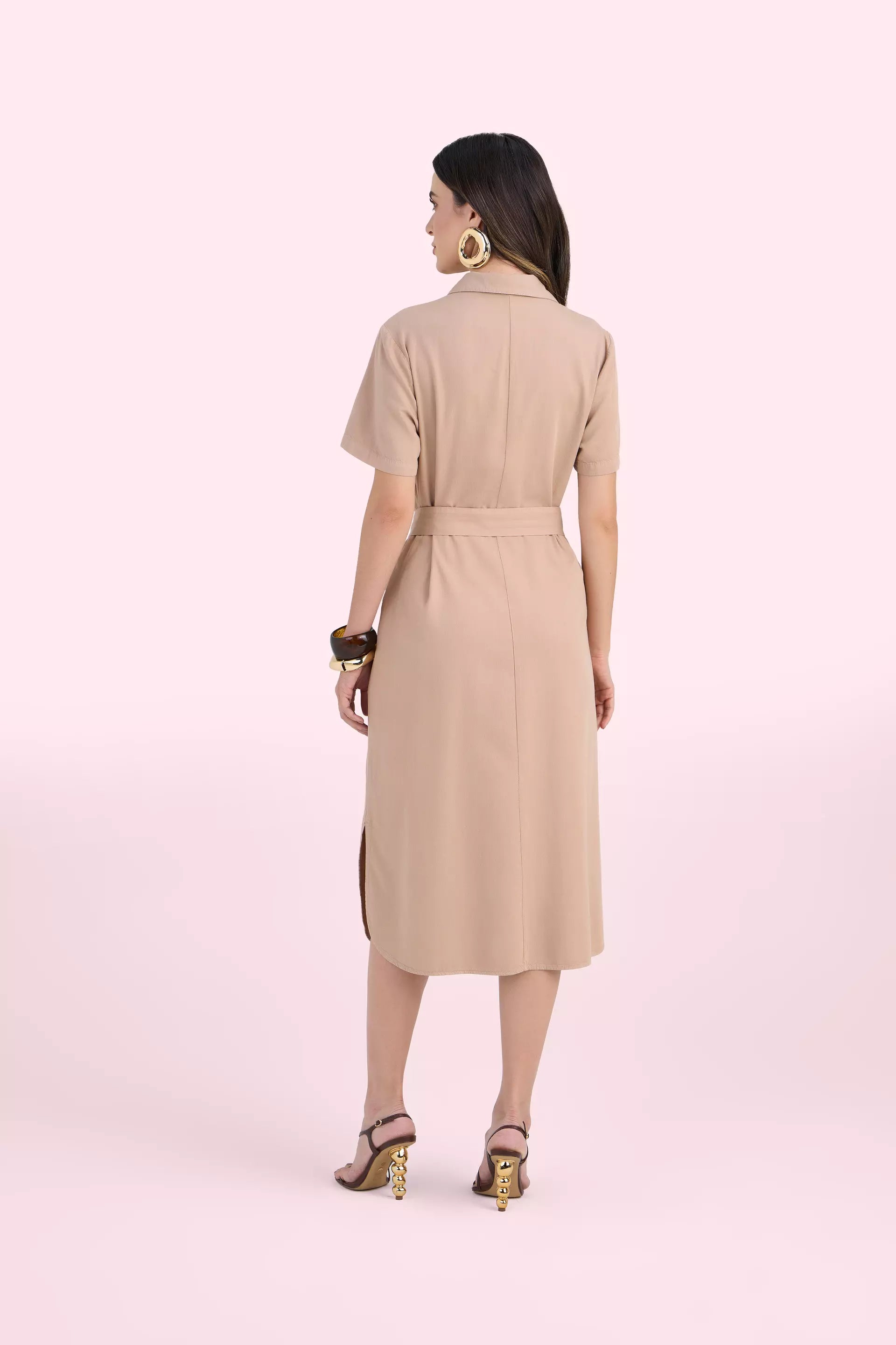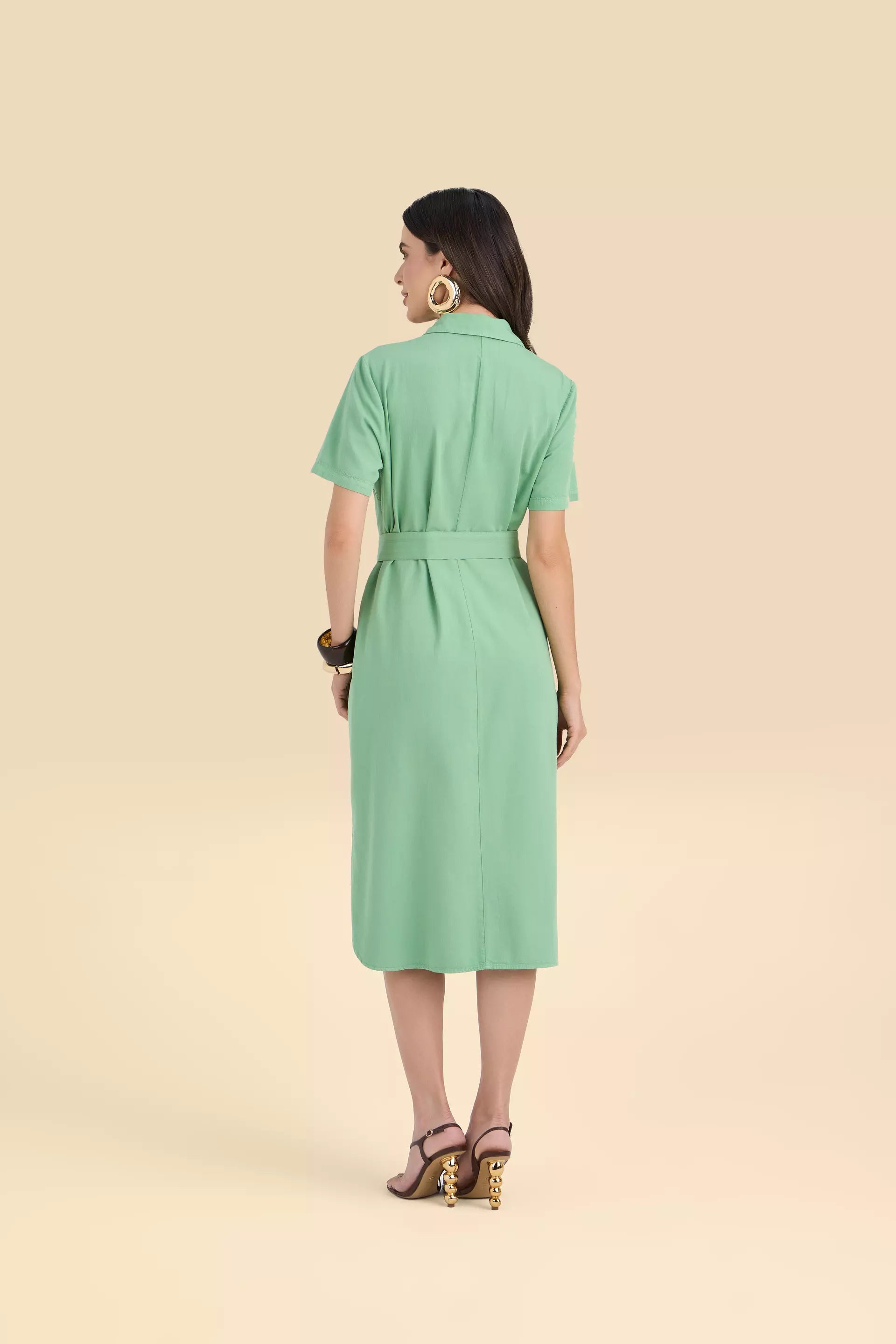 vestido chemise sarja manga curta com faixa solto ao corpo sarja leve faixa use para um look casual 67% viscose 33% algodao