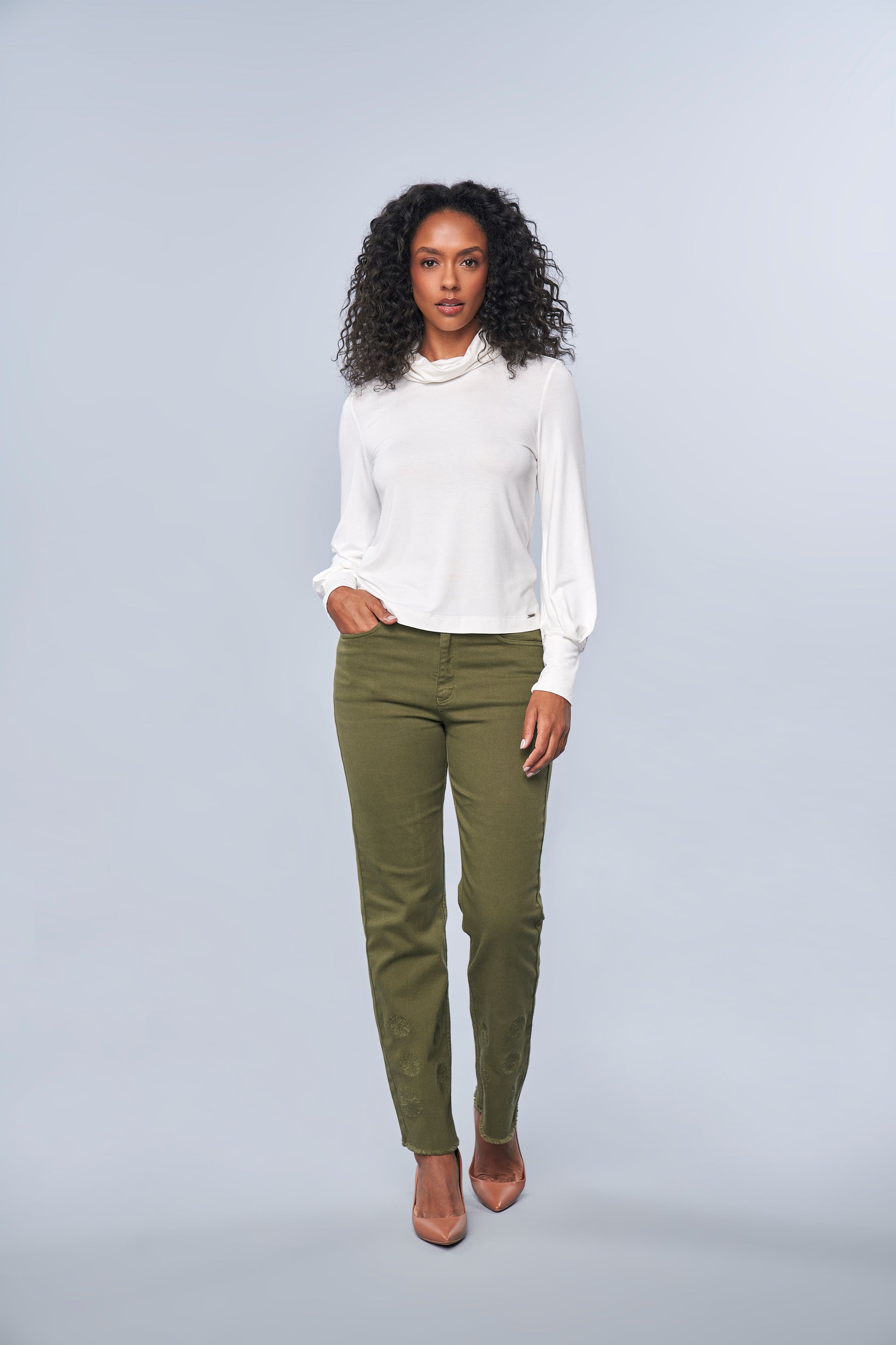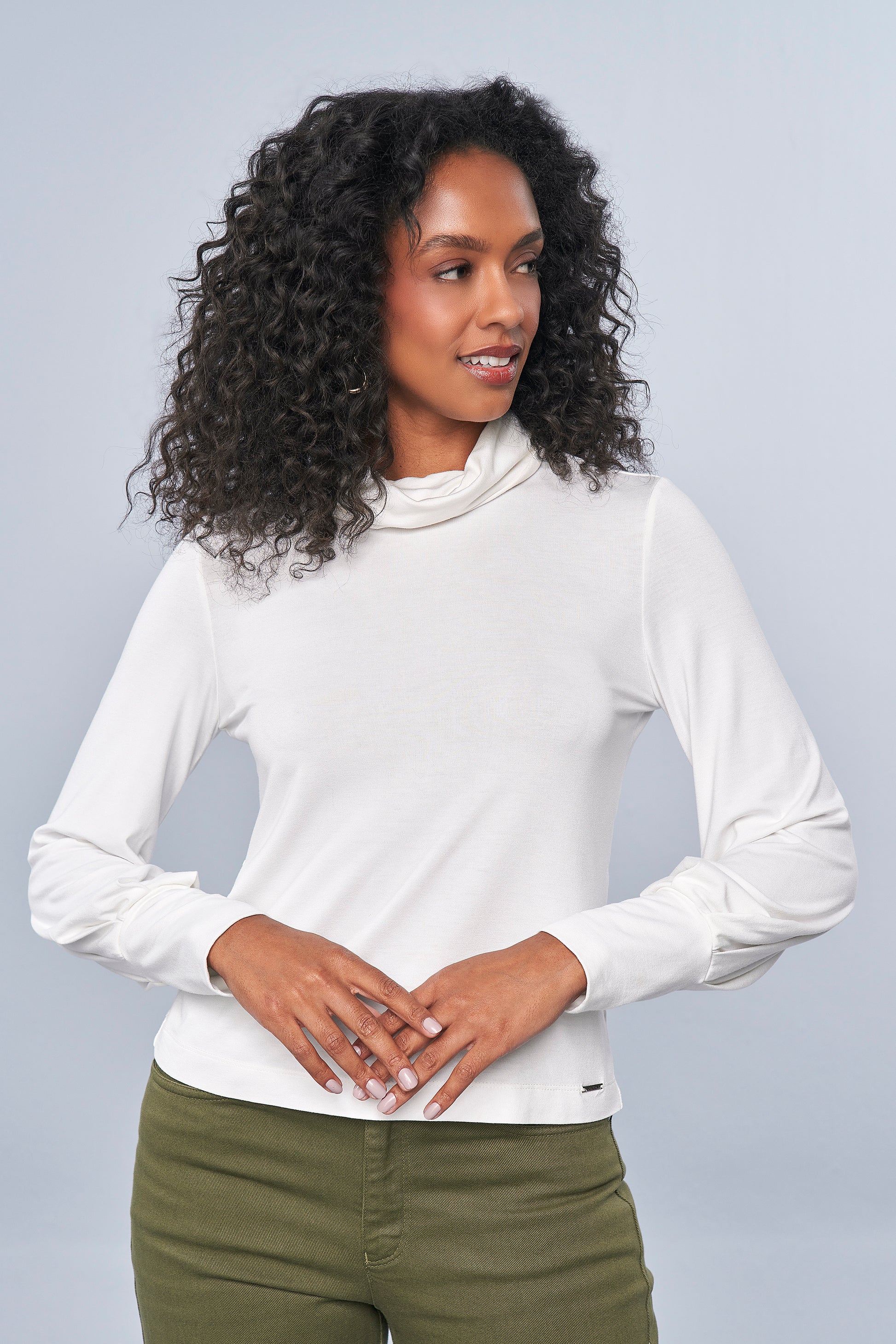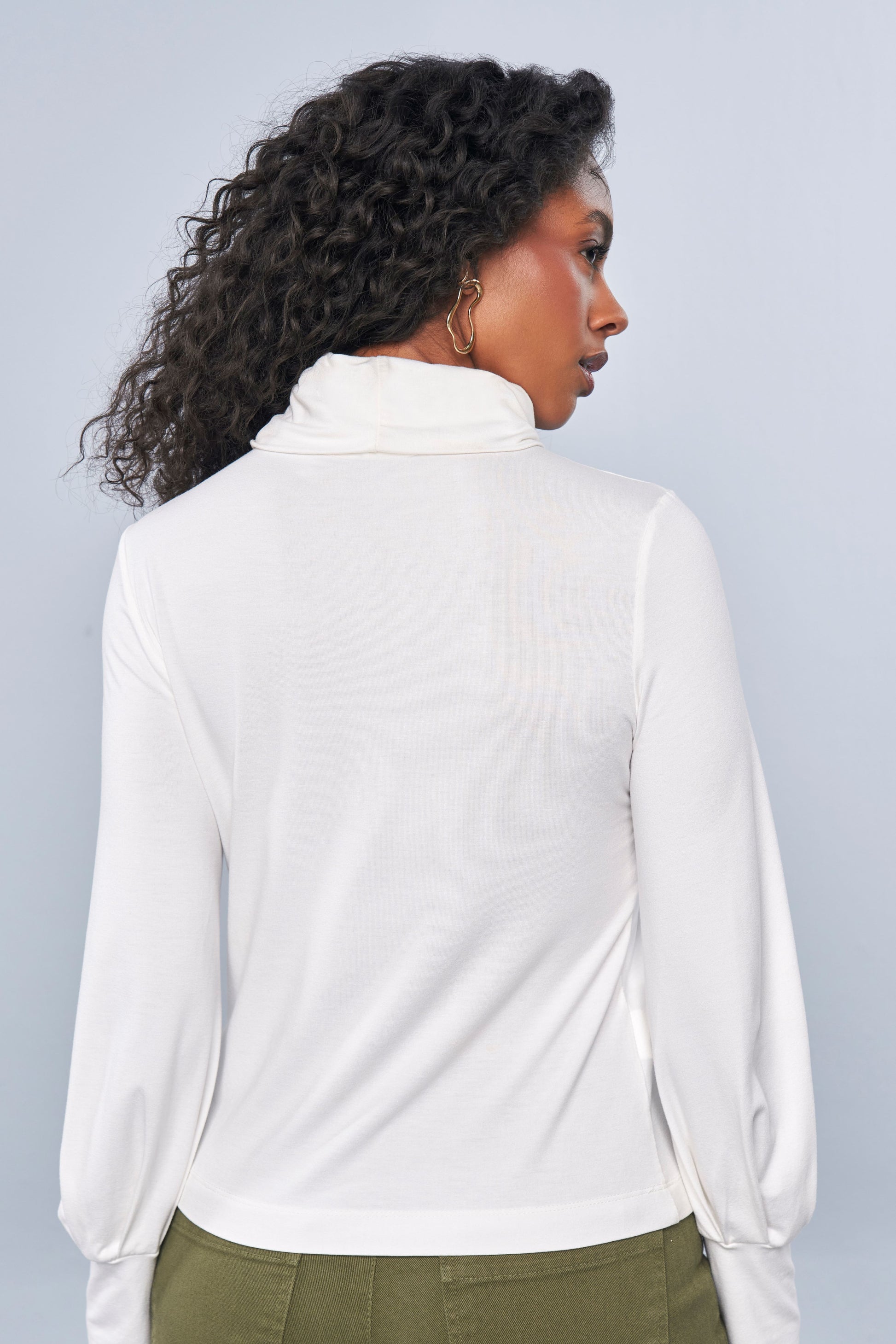 blusa malha manga longa com gola rolê