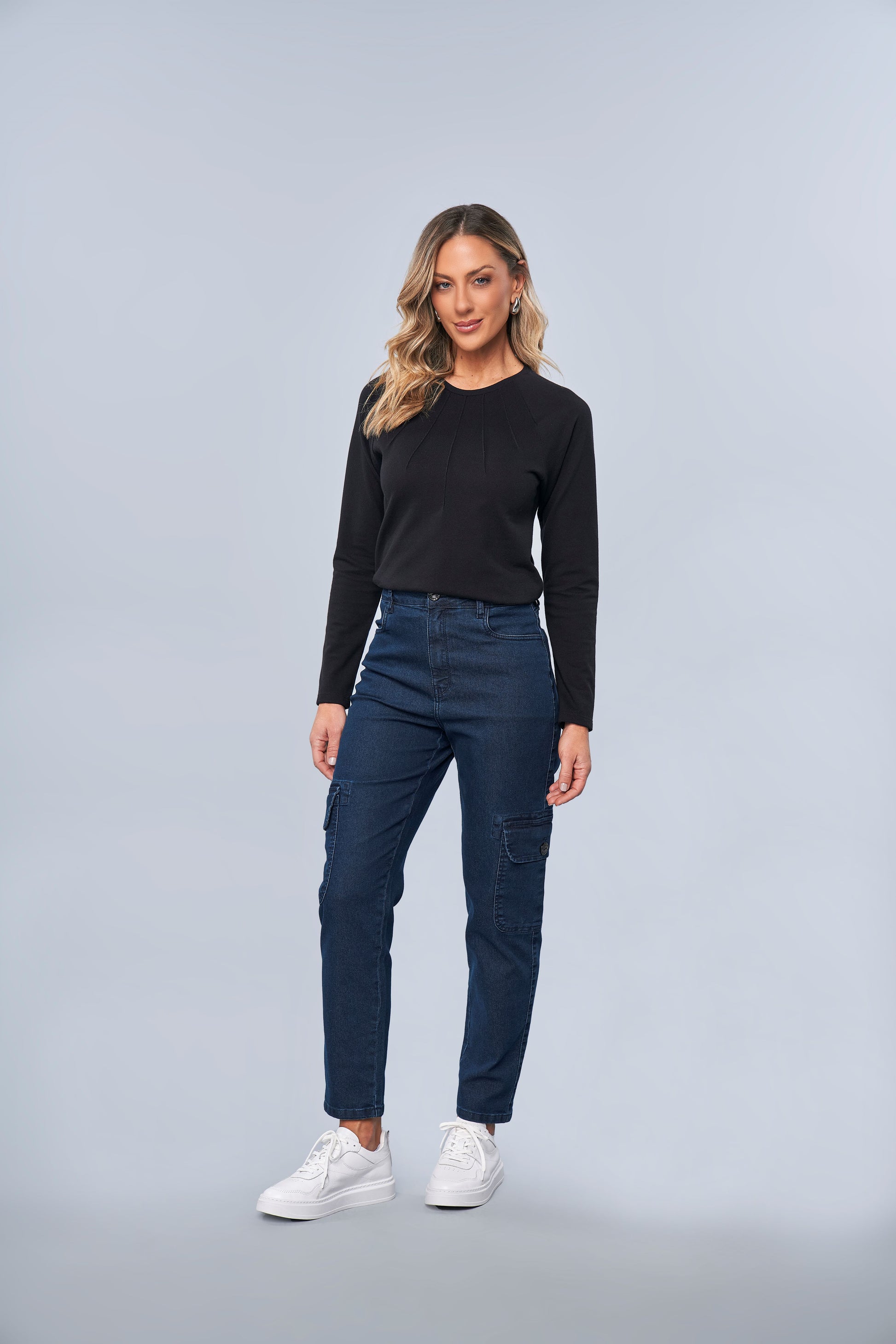 blusa malha tricot manga longa com nervuras soltas ao corpo malha leve nervuras use para um look casual 95% algodao 5% elastano