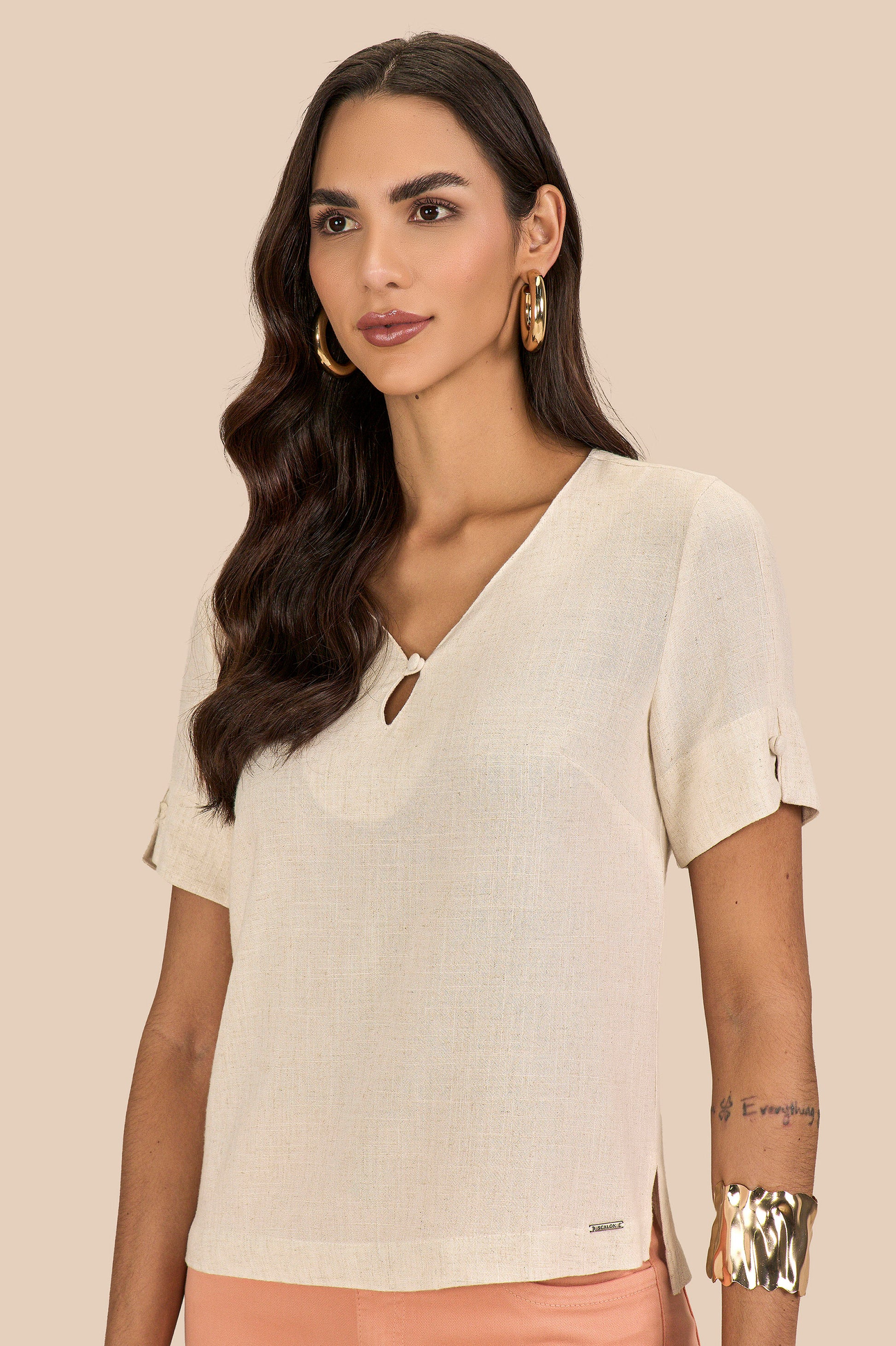blusa viscose manga curta com abertura mangas solto ao corpo viscose abertura use para um look casual 80%viscose 20%linho