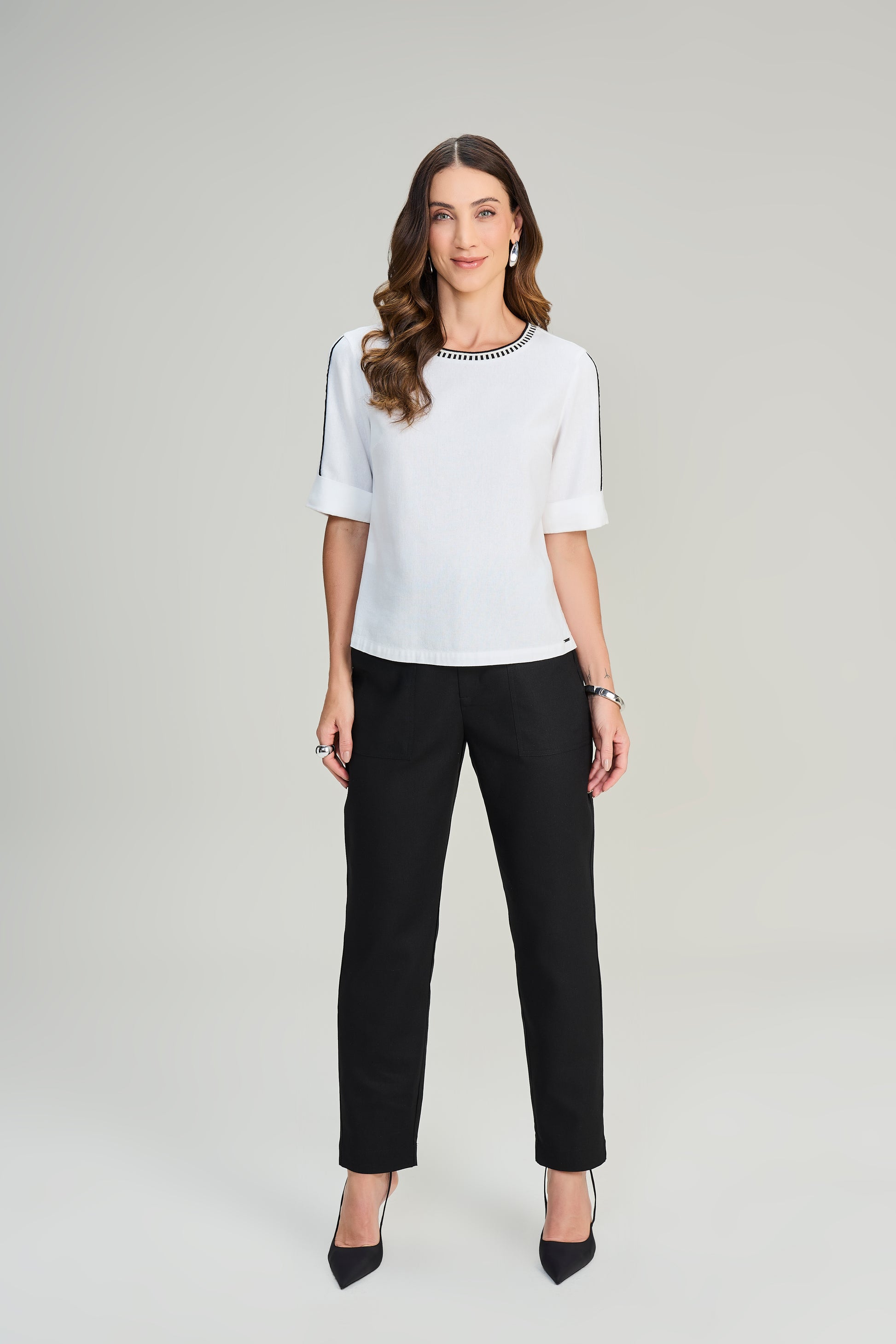 blusa viscose manga curta com tricot