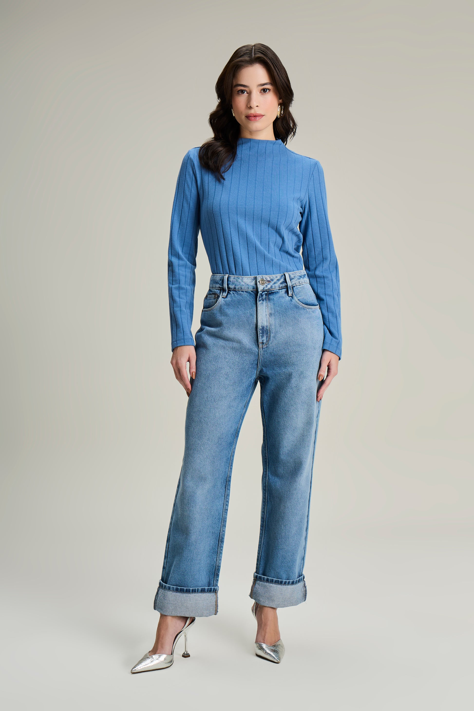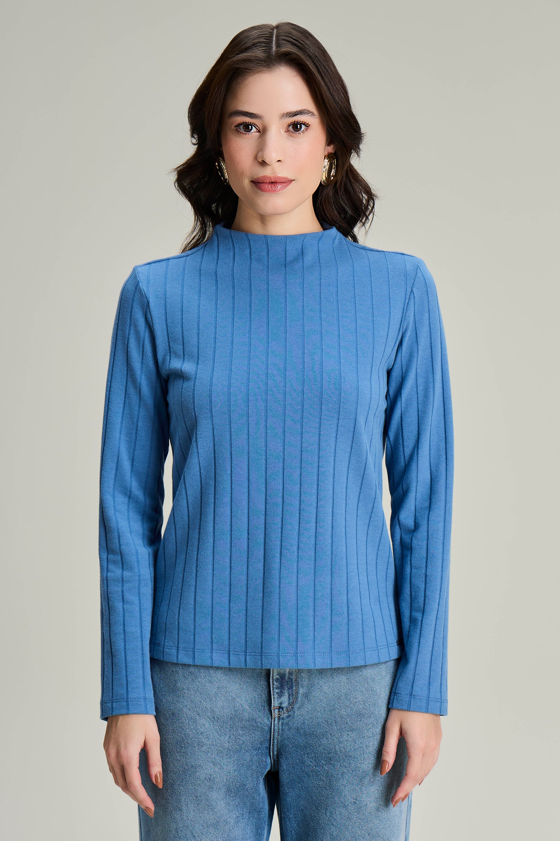 blusa malha canelada manga longa com abertura justo ao corpo malha canelada gola alta use para um look casual 81% algodao 11% poliester 8% elastano