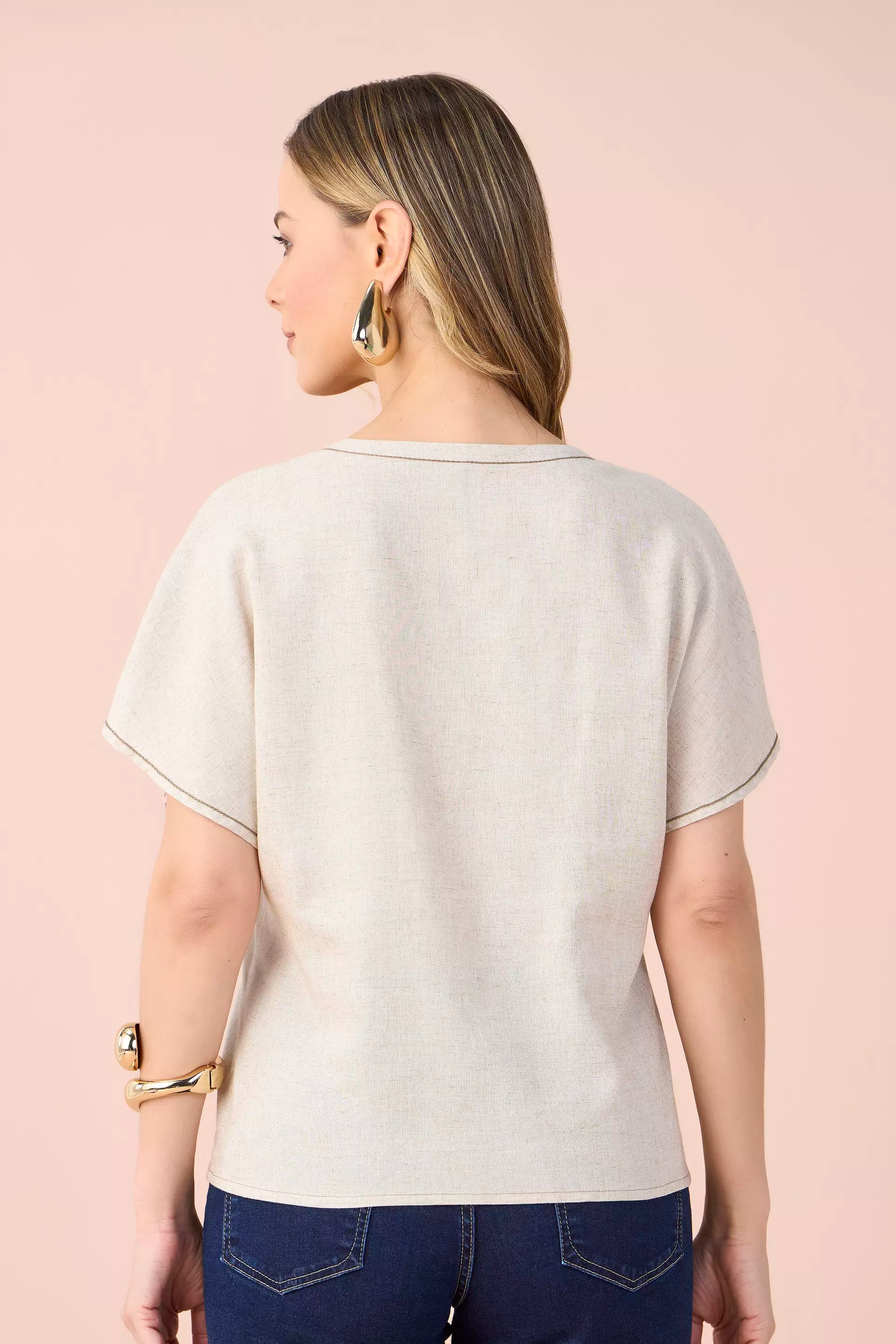 blusa viscose manga curta com detalhe frontal solto ao corpo viscose vista recortada use para um look casual 70% viscose 30% linho