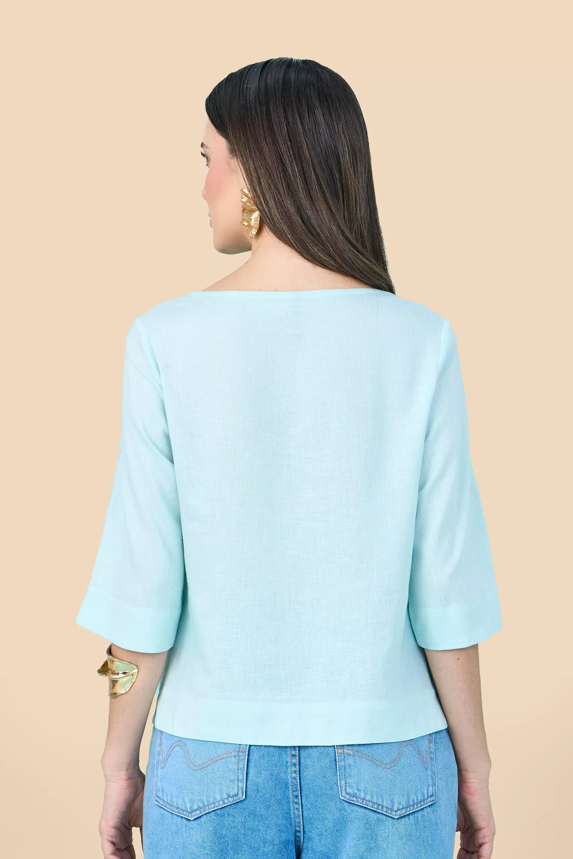 blusa viscose manga 3/4 com detalhe meia argola solta ao corpo viscose leve meia argola use para um look casual 70% viscose 30% linho