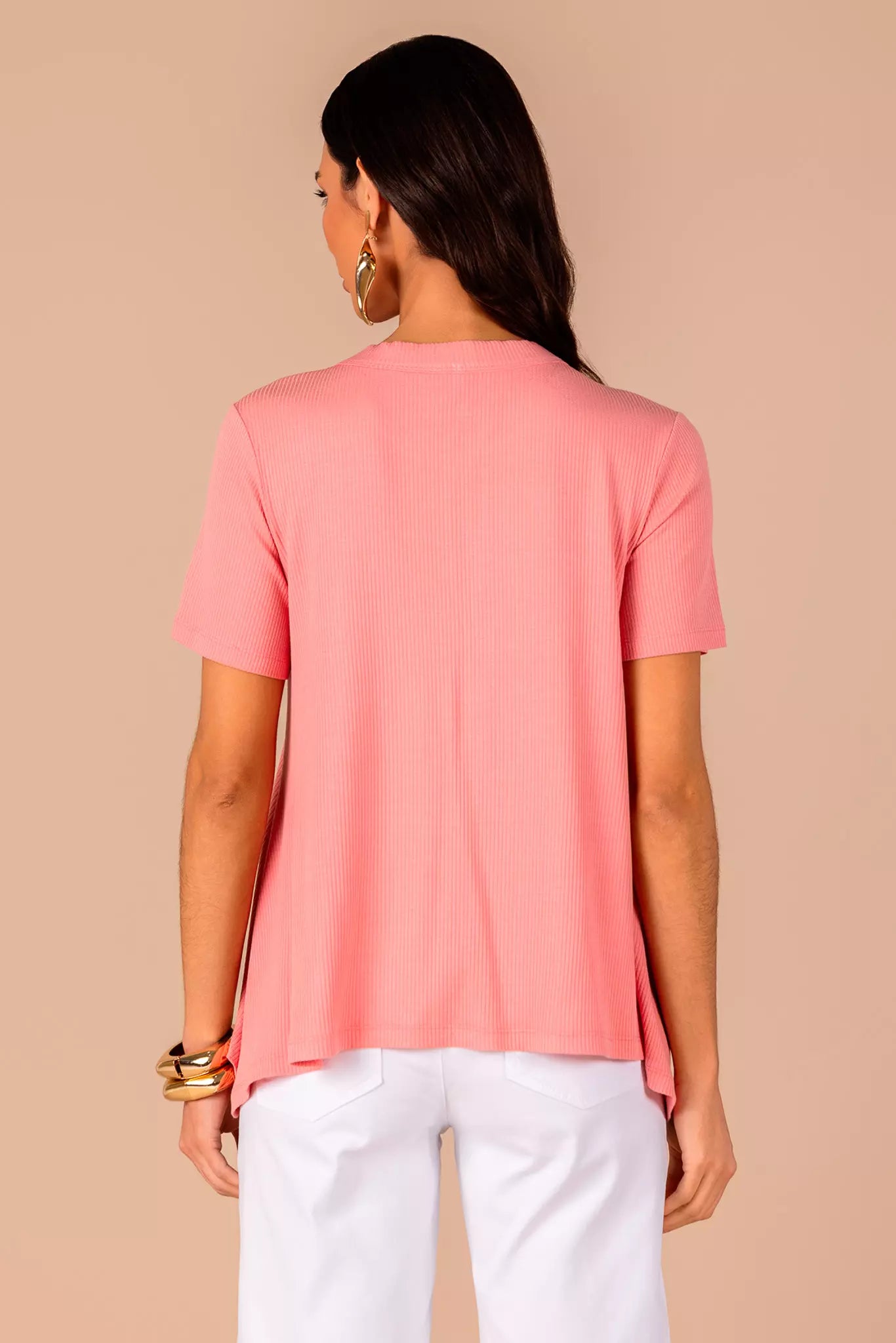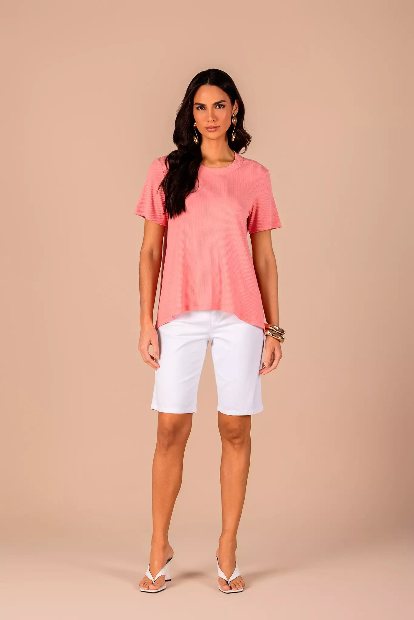 t-shirt malha canelada manga curta com assimetrias solta ao corpo viscose assimetria use para um look casual 96% viscose 4% elastano