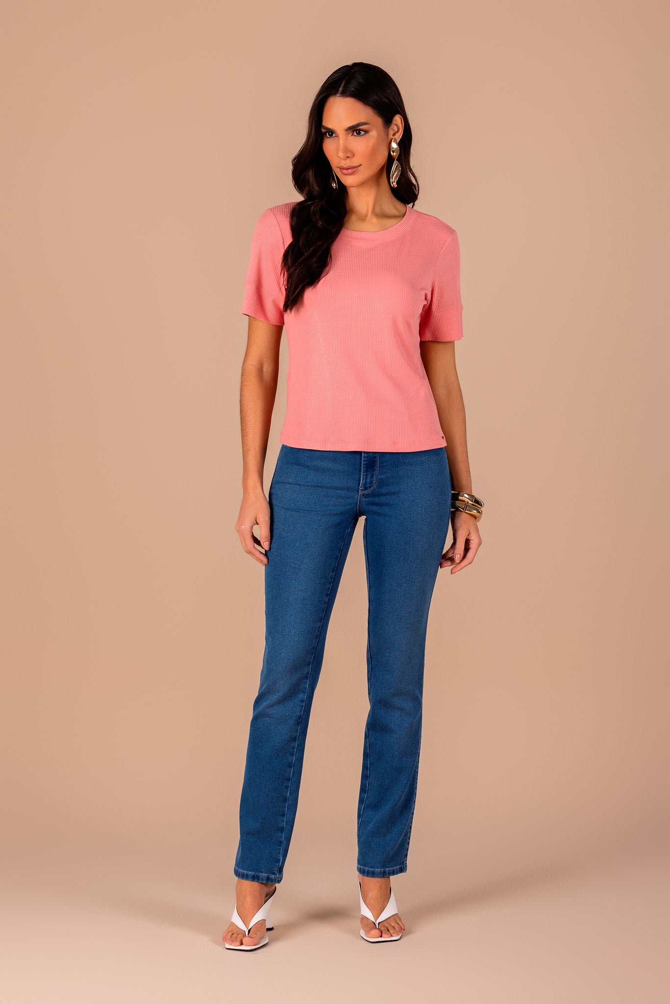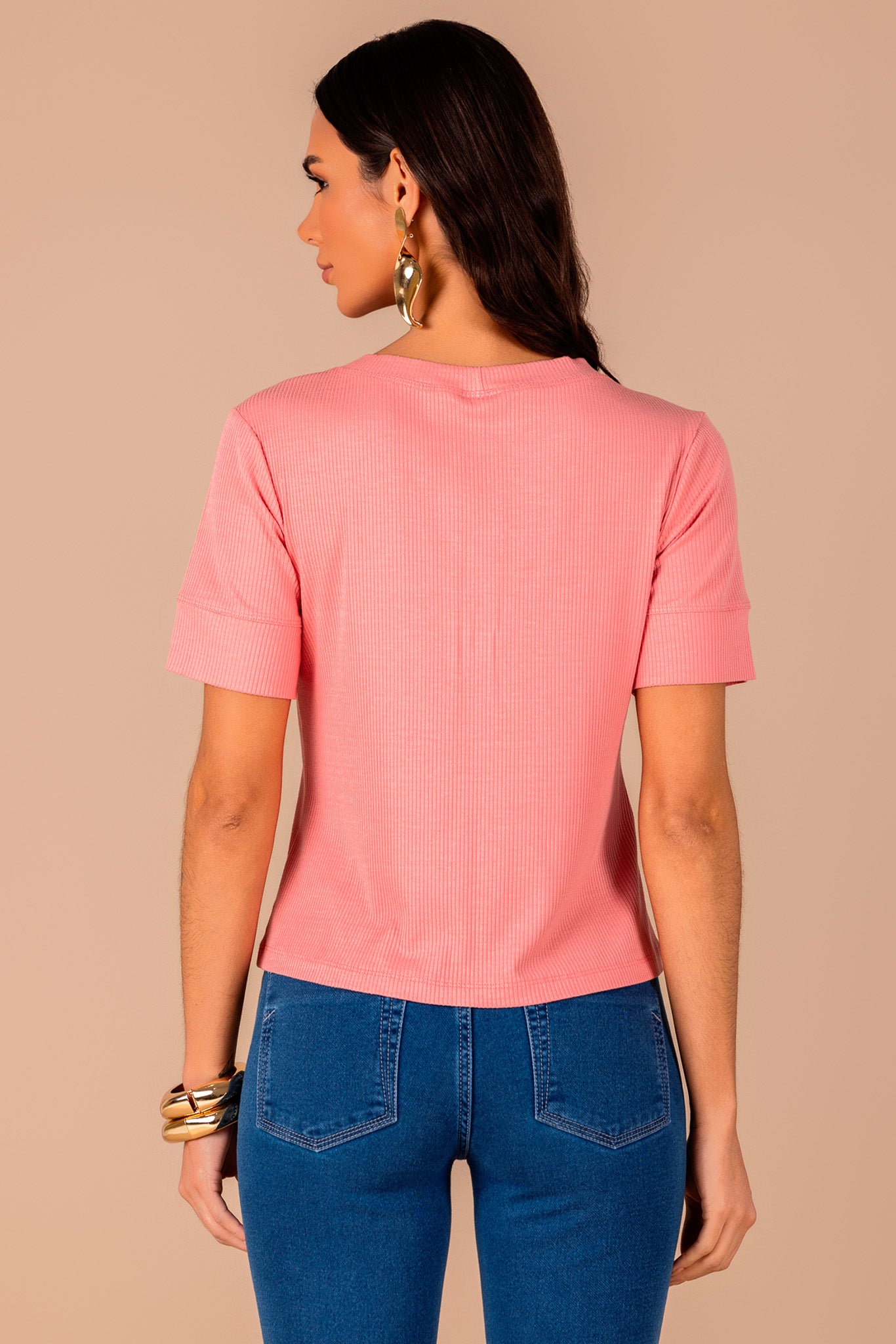 t-shirt malha canelada manga curta com punho solta ao corpo malha leve punho use para um look casual 96% viscose 4% elastano