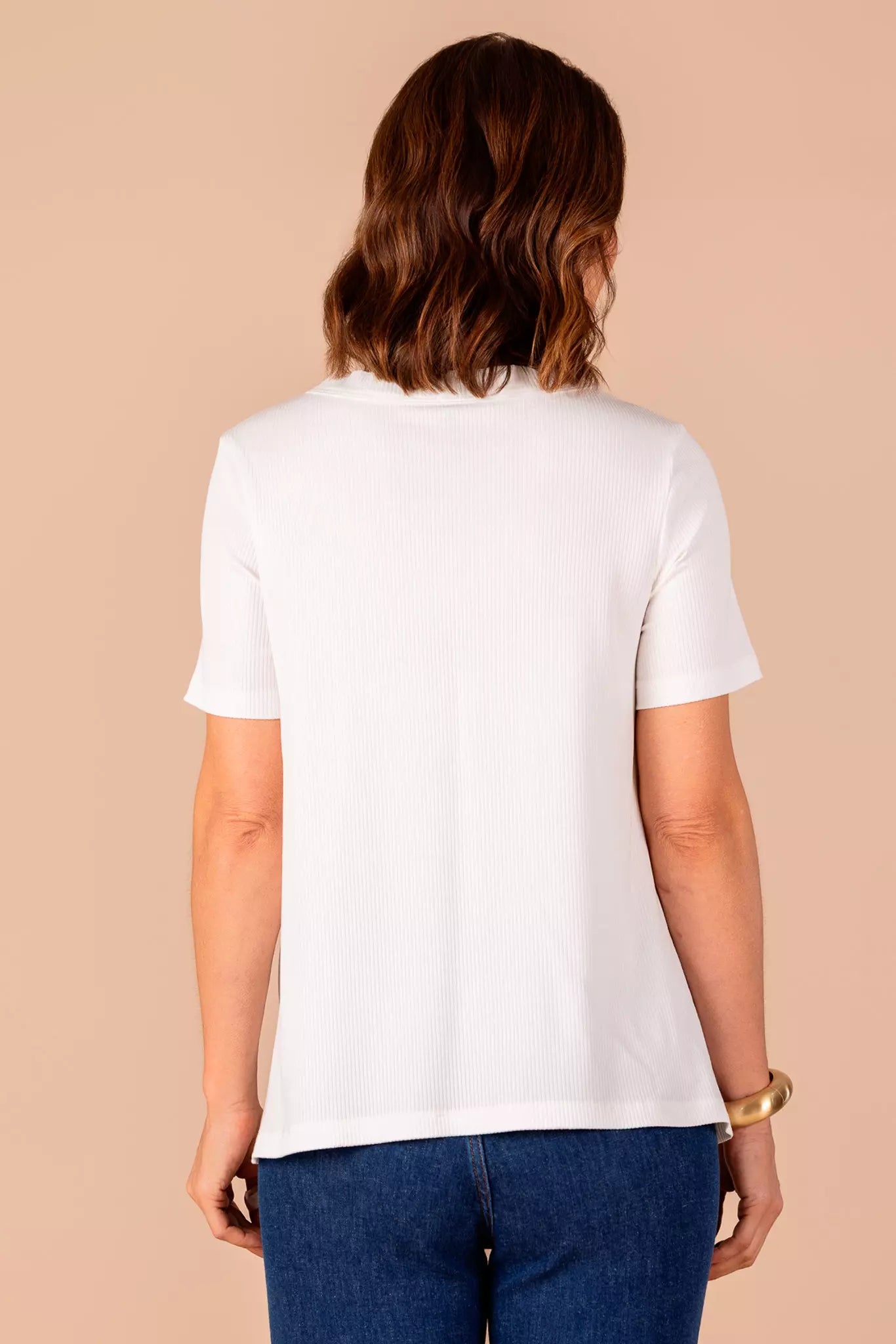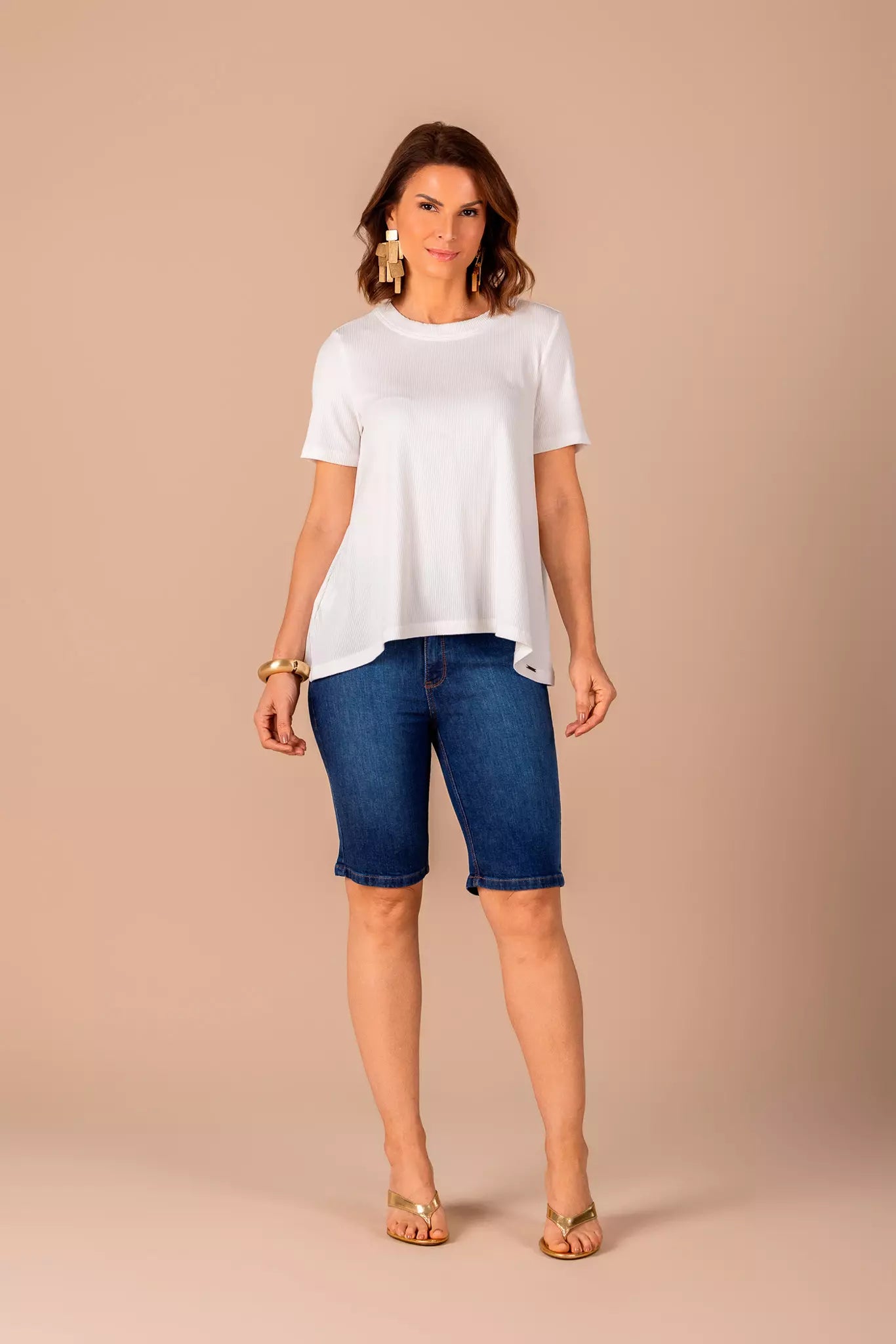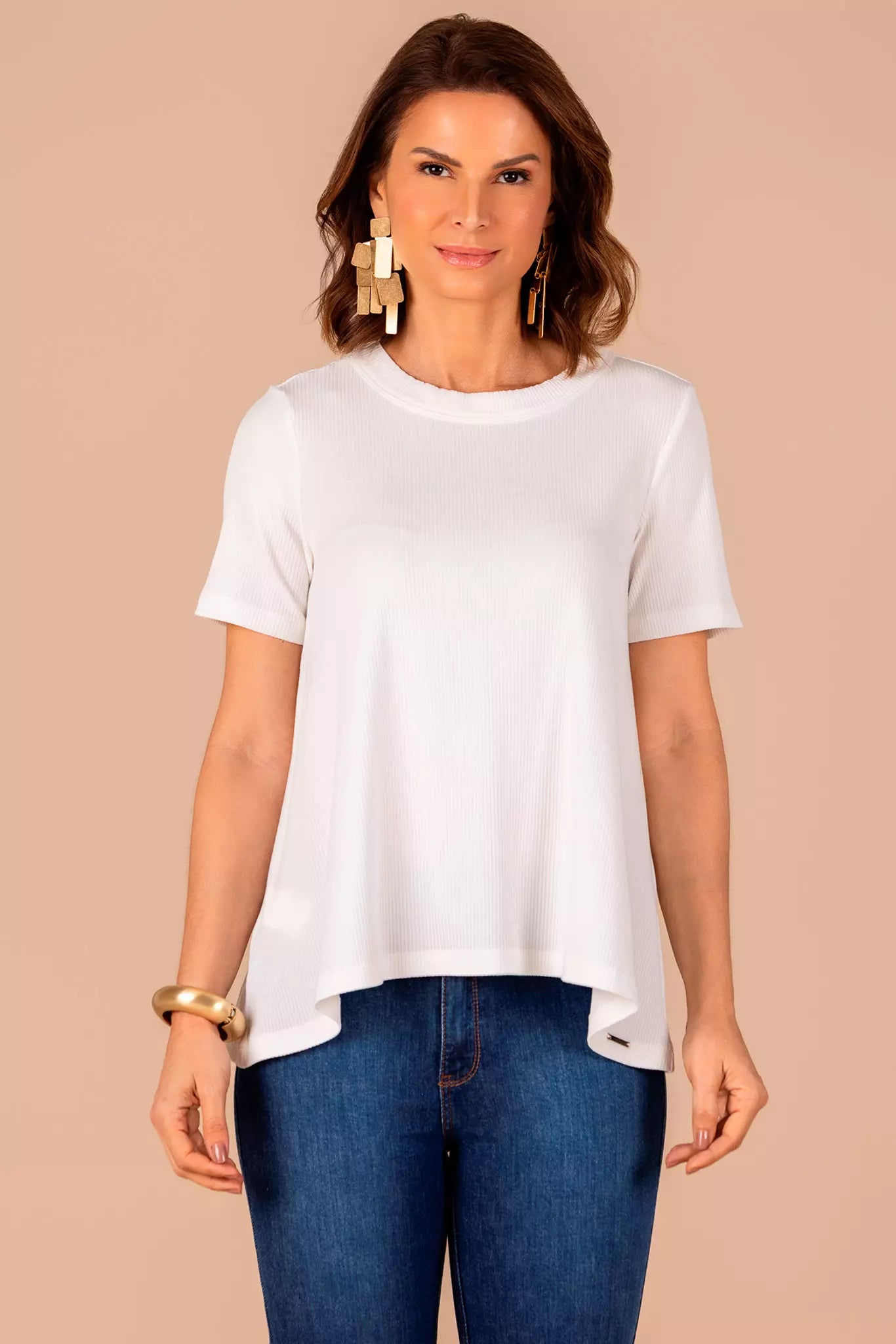t-shirt malha canelada manga curta com assimetrias solta ao corpo viscose assimetria use para um look casual 96% viscose 4% elastano