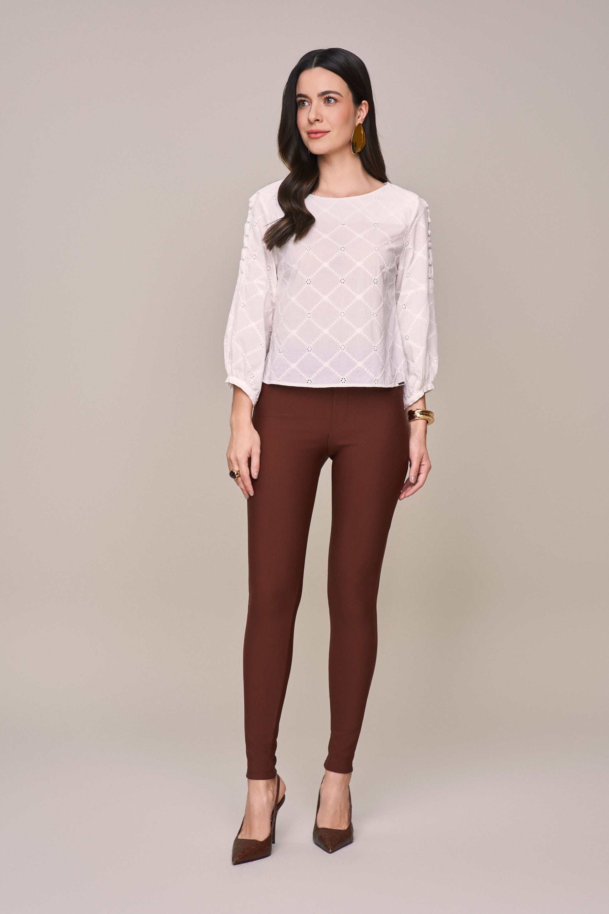 blusa laise manga 7/8 com botões encapados