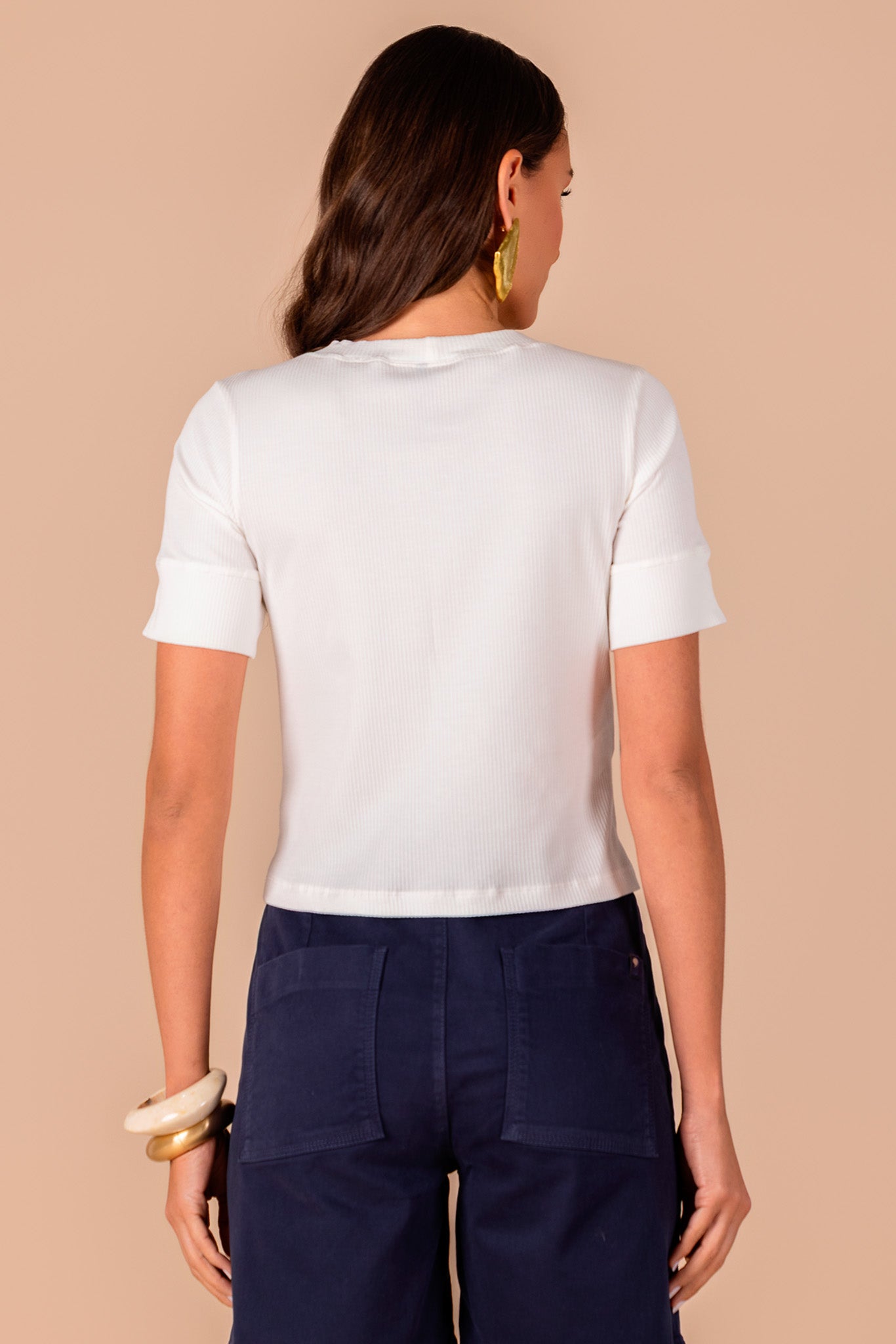 t-shirt malha canelada manga curta com punho