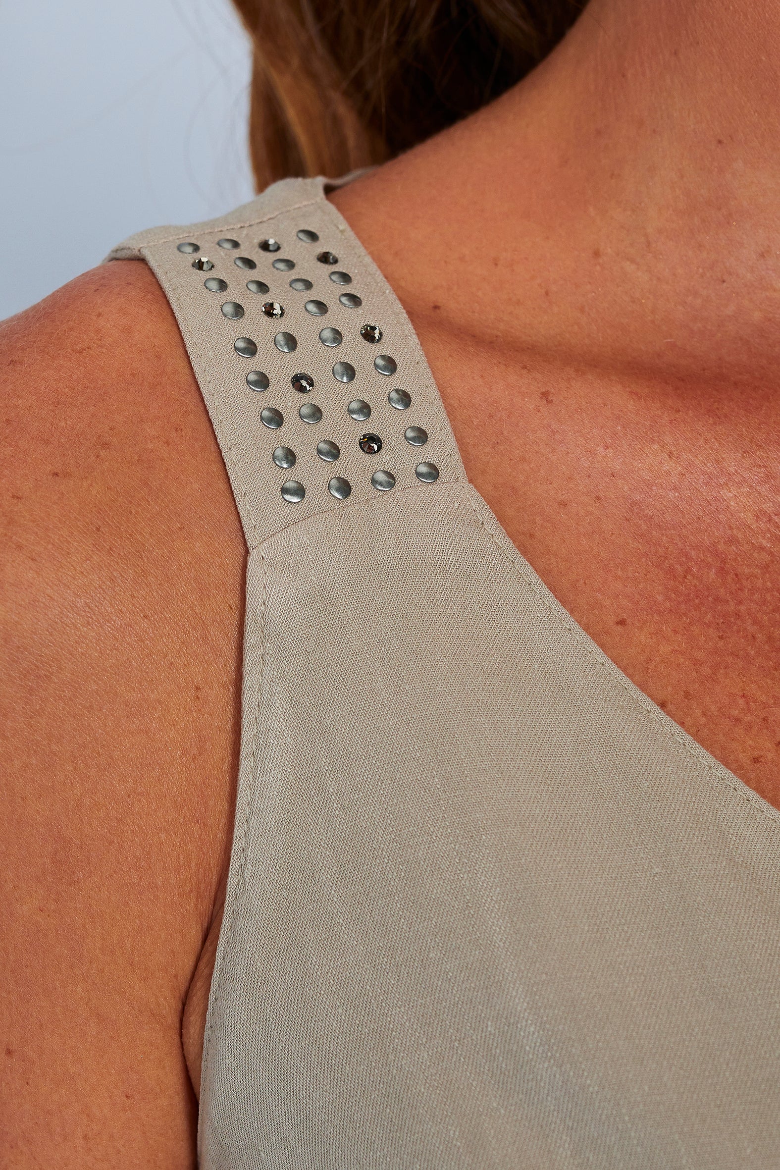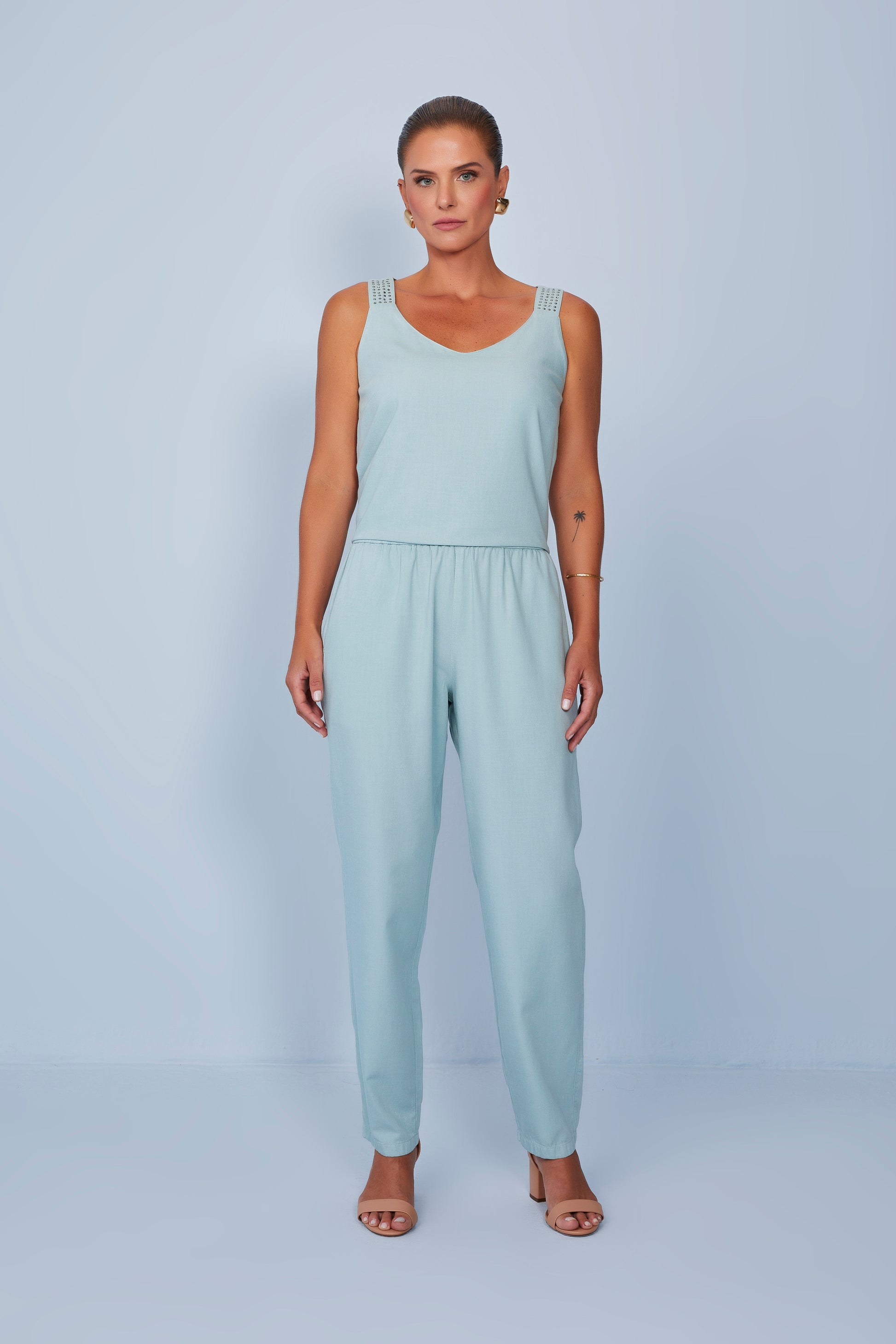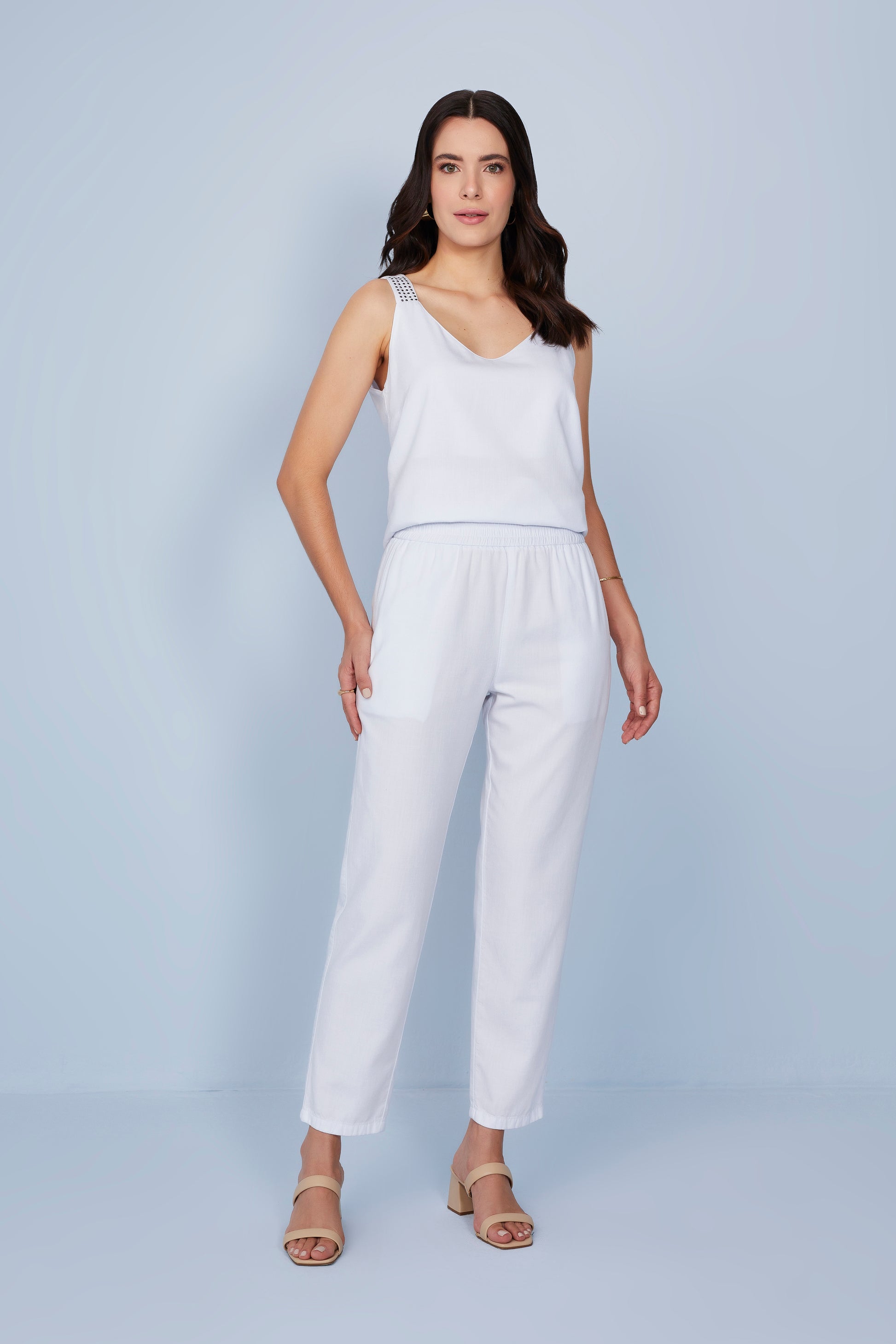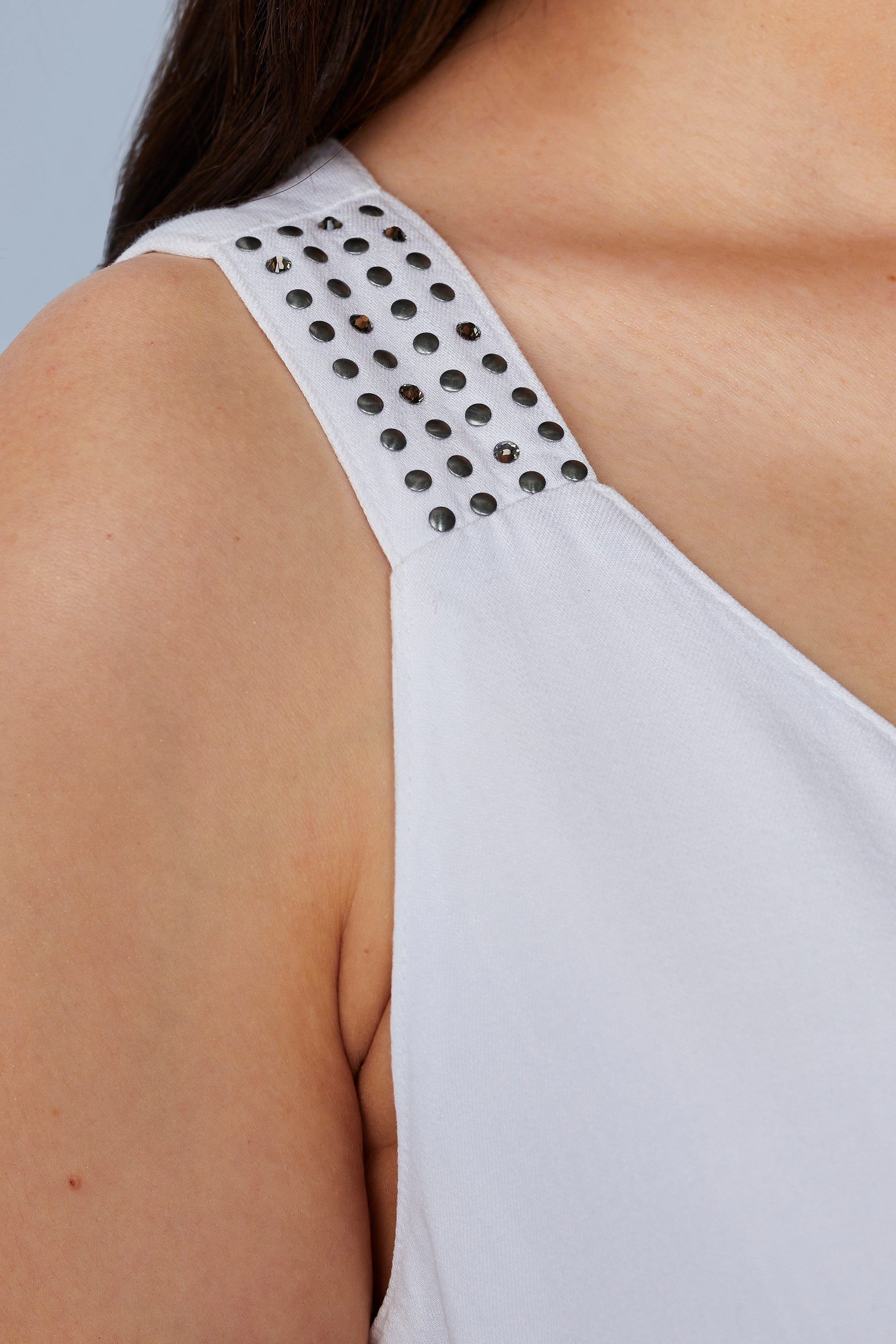 regata sarja alça larga com cristais soltos ao corpo sarja leve cristais use para um look casual 67% viscose 33% algodão