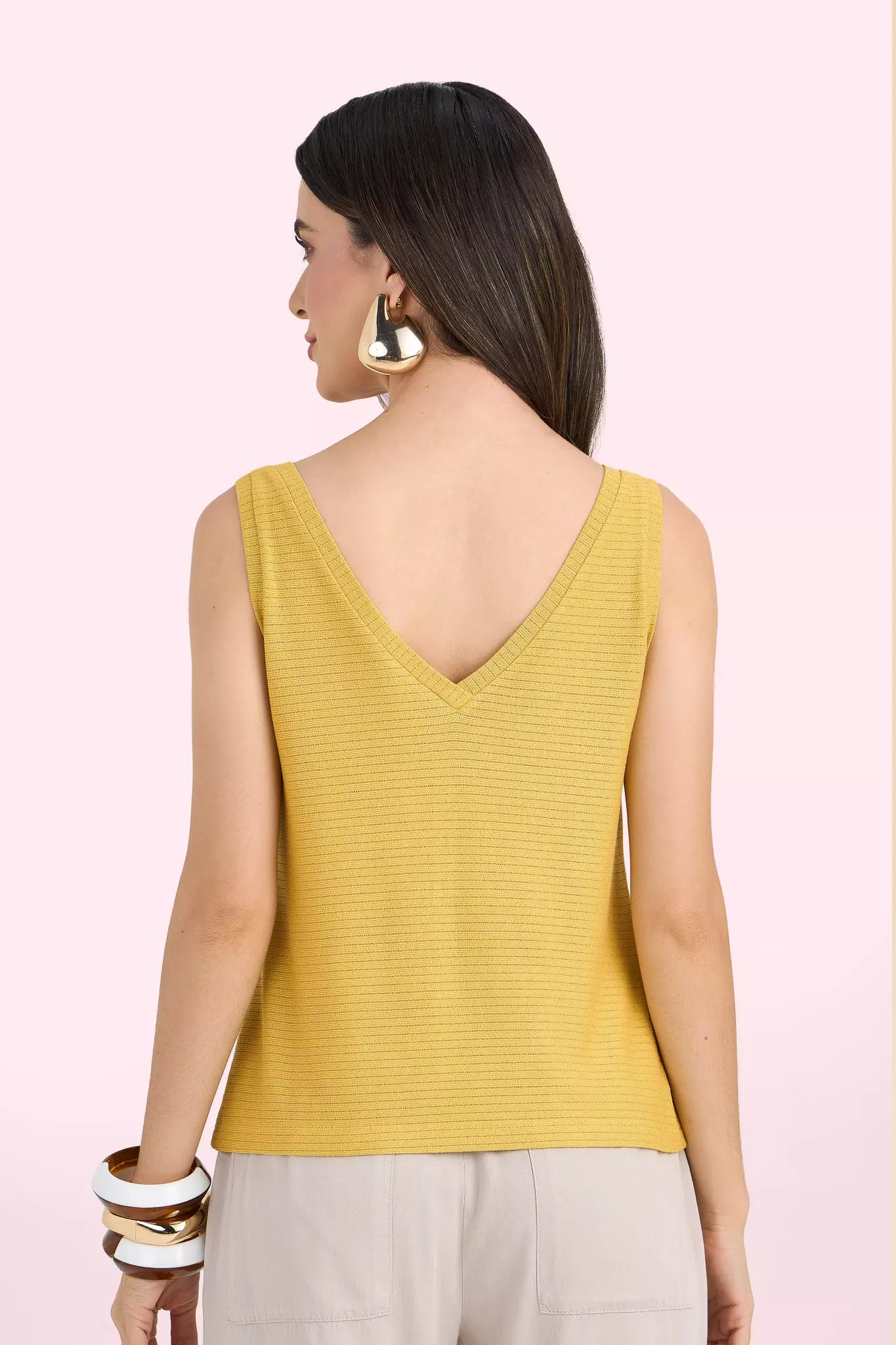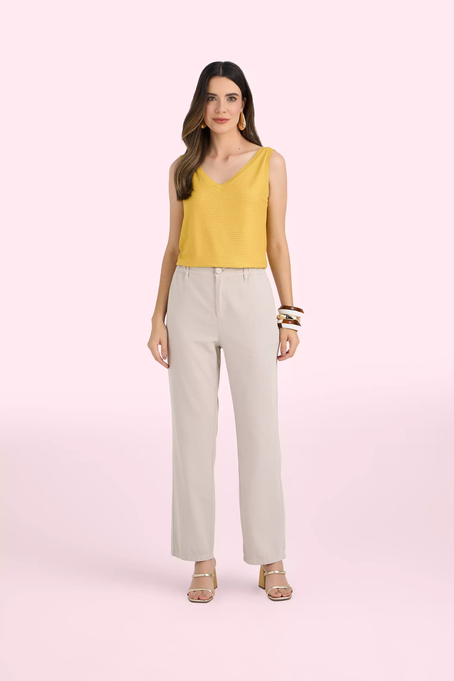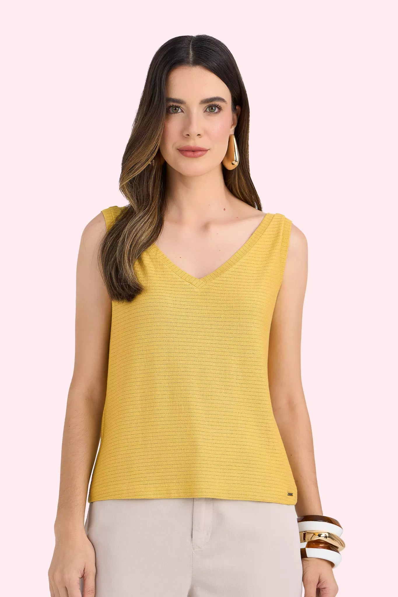regata malhaalça fina com decote v solta ao corpo malha leve tricot use para um look casual 96% viscose 4% elastano