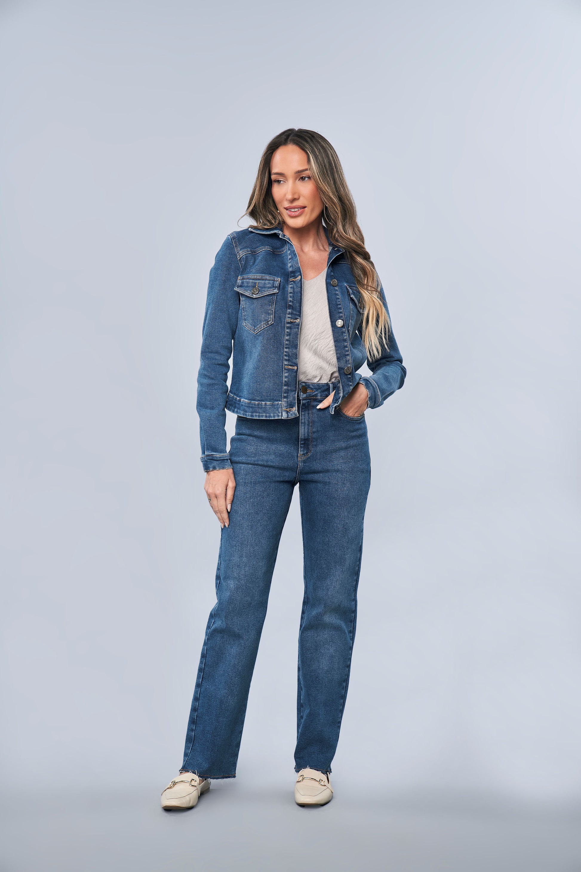jaqueta jeans manga longa com bolsos sobrepostos solto ao corpo jeans estruturado manga raglan use para um look casual 94% algodao 2% elastano 4%elastomultiester