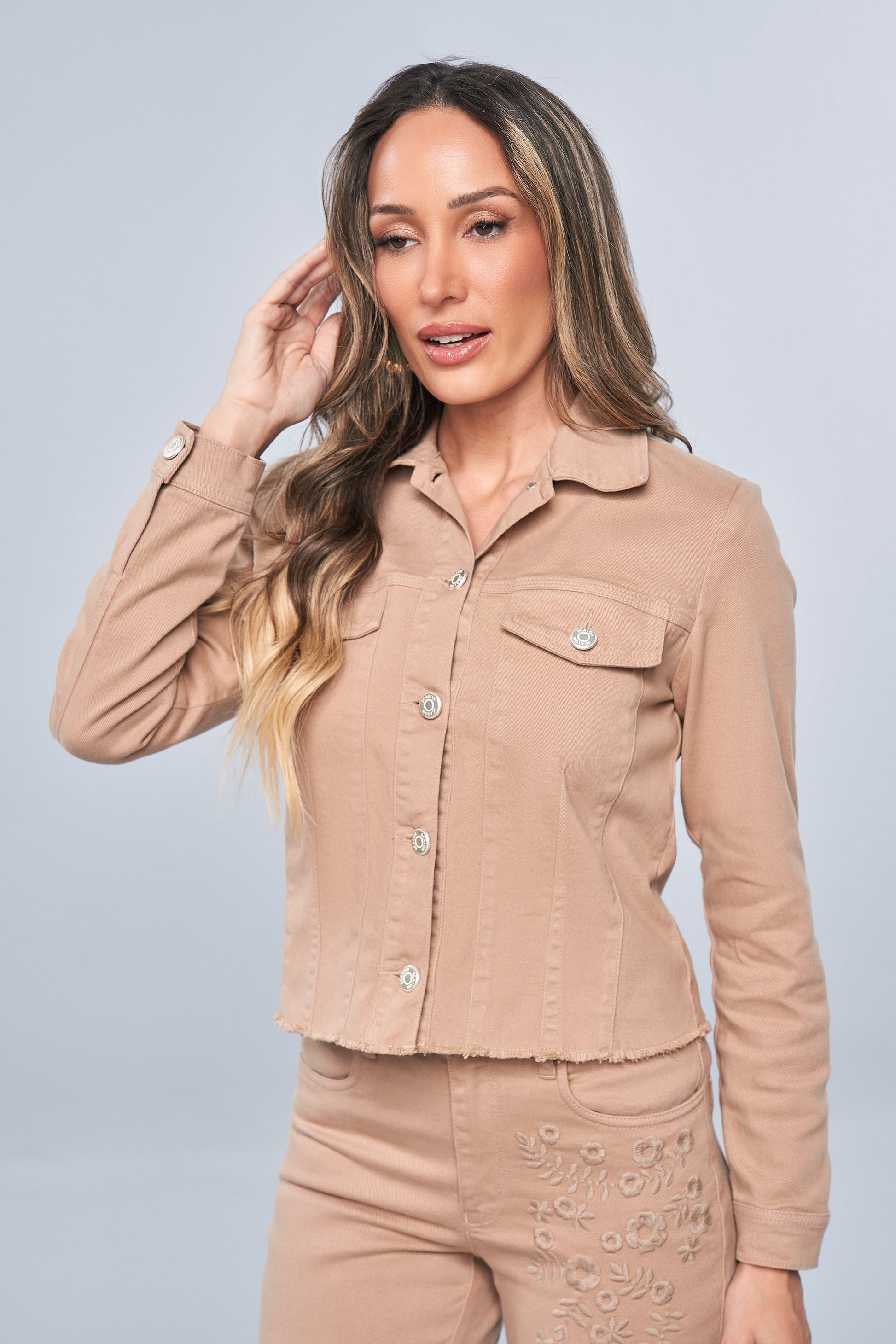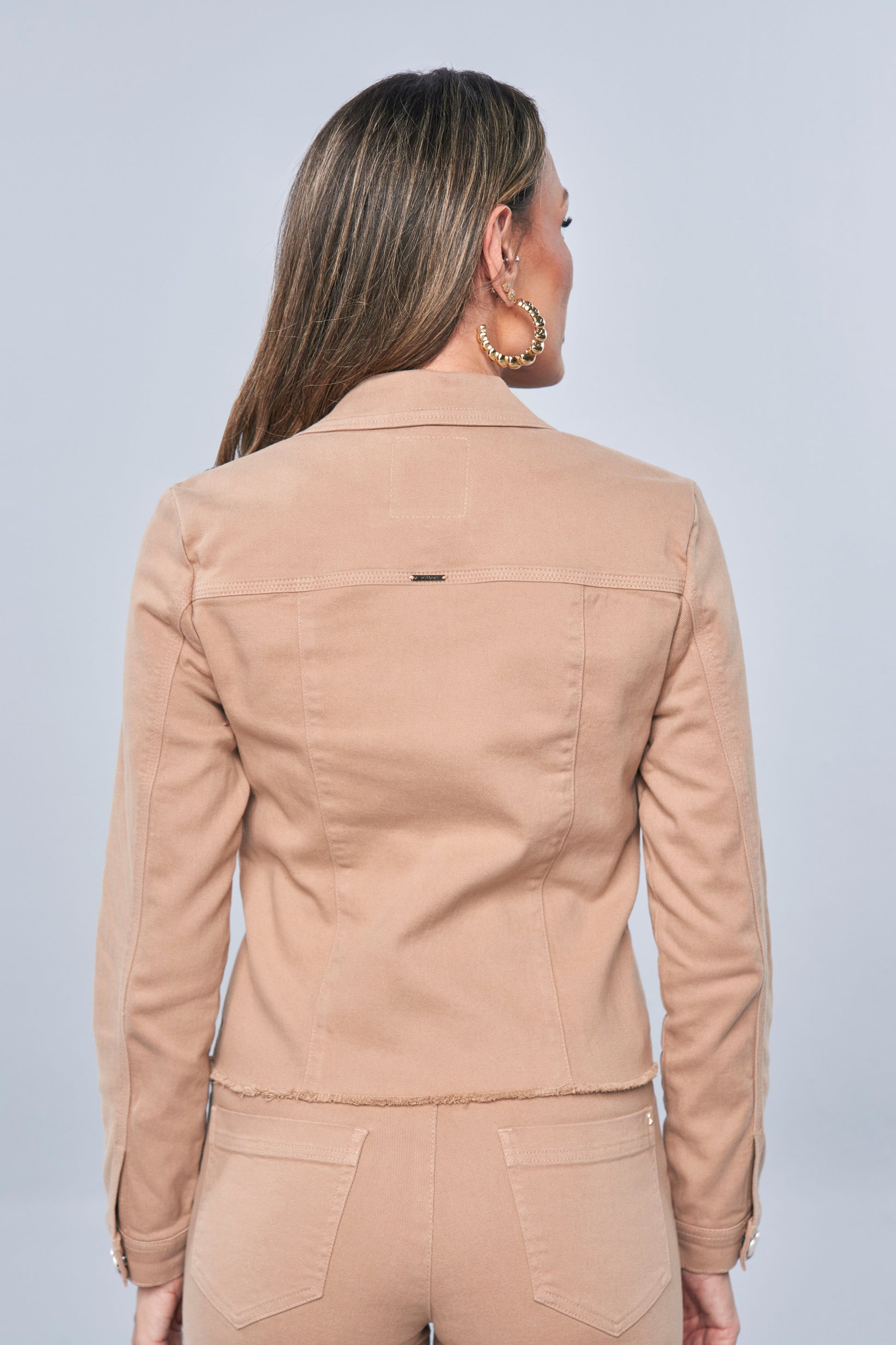 jaqueta sarja manga longa com recortes se ajusta naturalmente ao corpo sarja recorte frontal use para um look casual 99% algodao 1% elastano