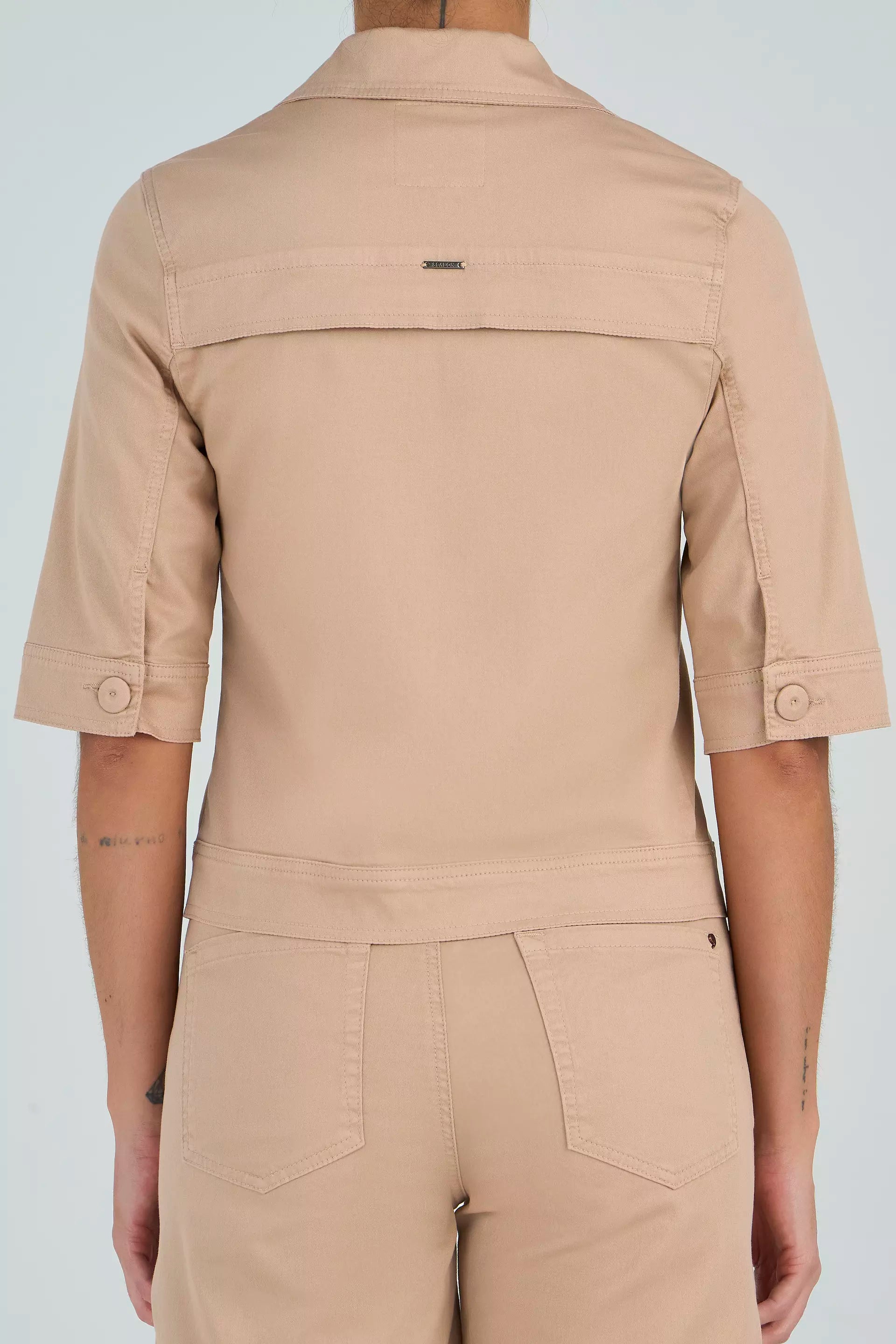 jaqueta sarja manga 3/4 com nervuras se ajusta naturalmente ao corpo sarja color nervura use para um look casual 98% algodao 2% elastano