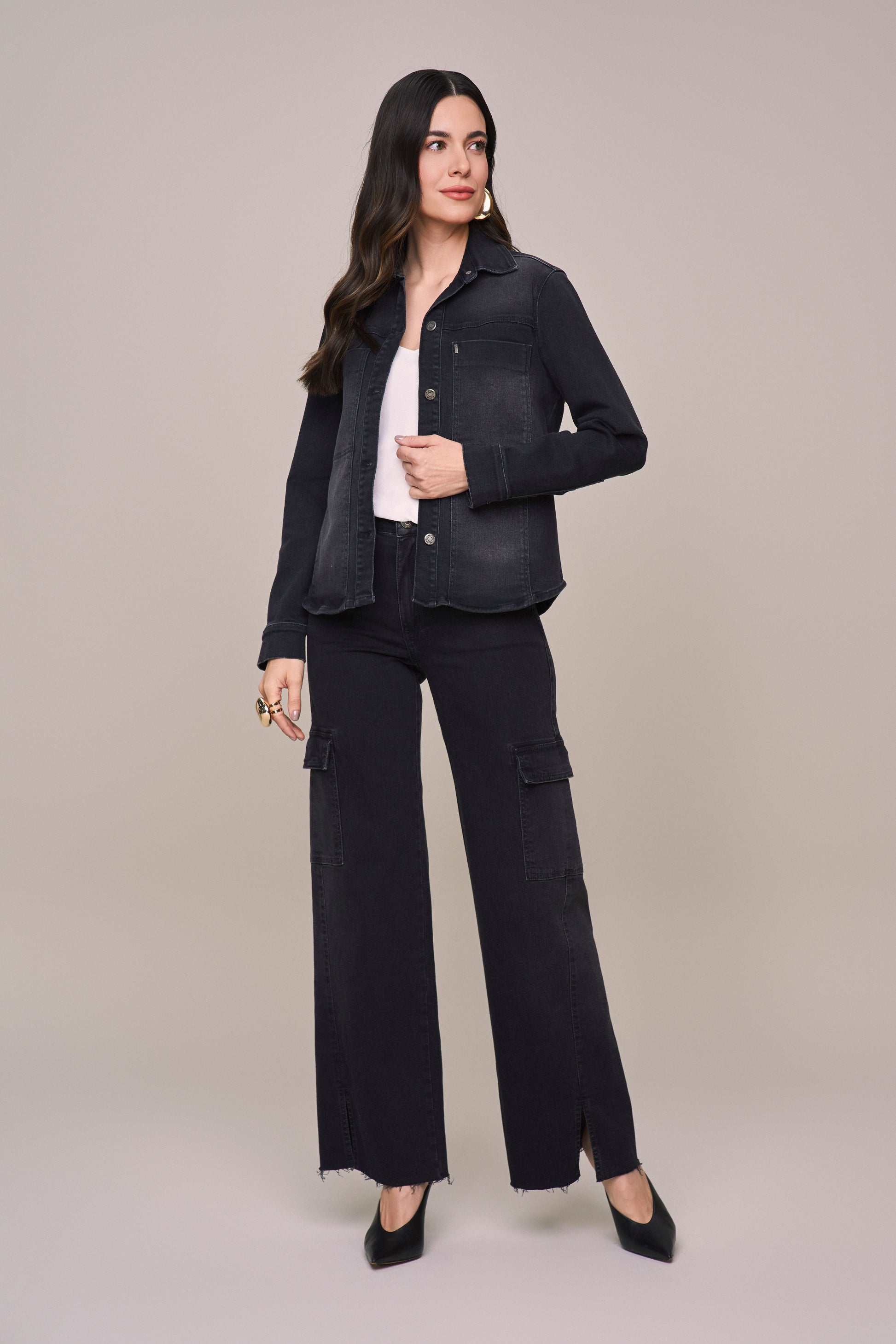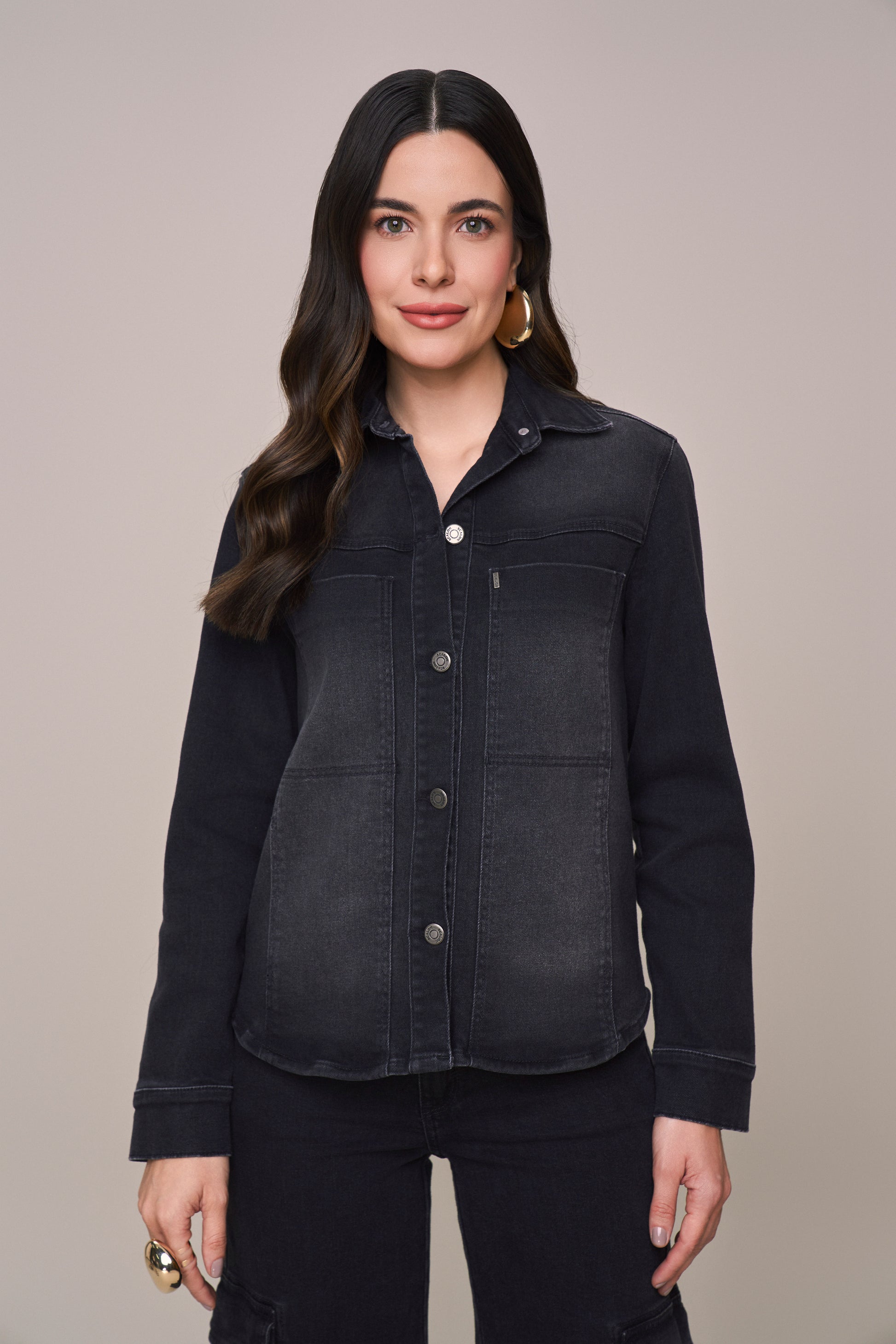 jaqueta jeans black manga longa com detalhes sobrepostos