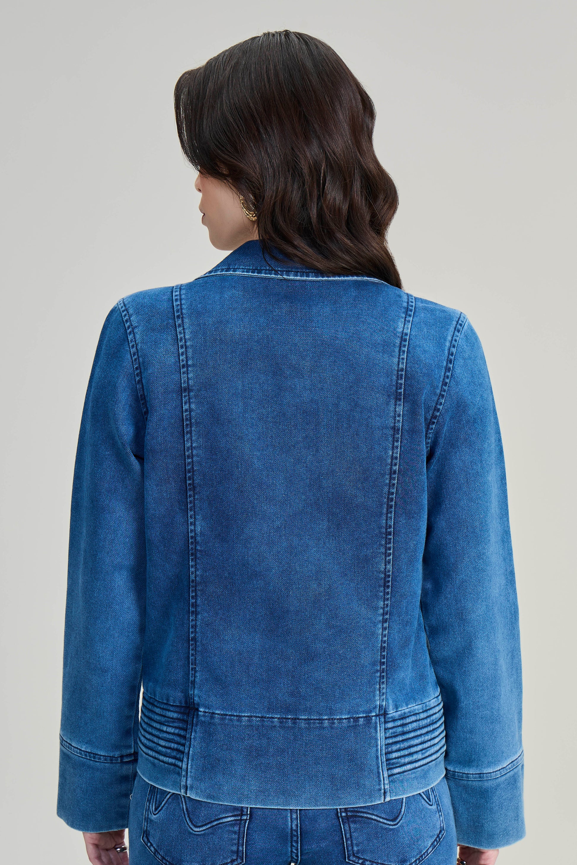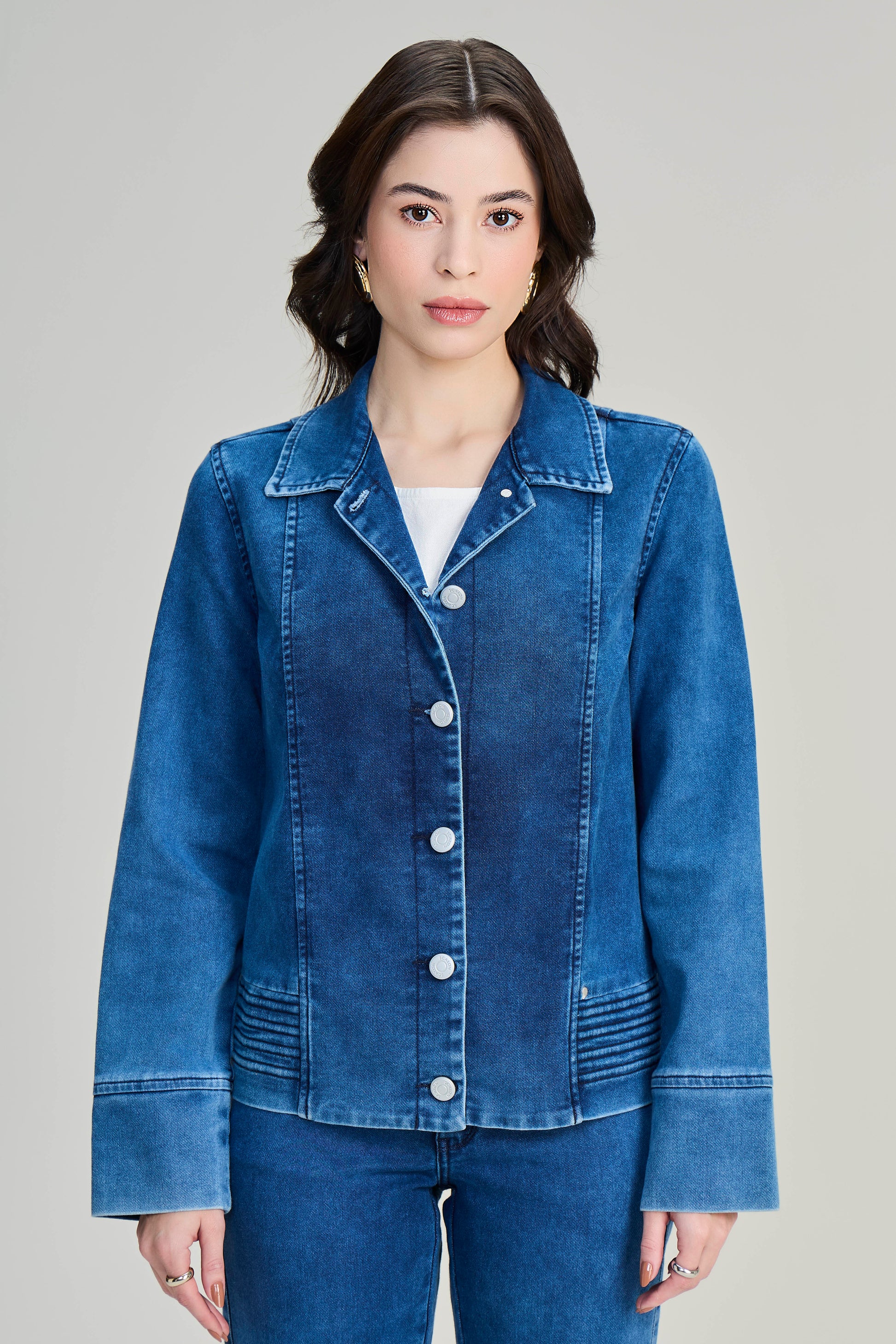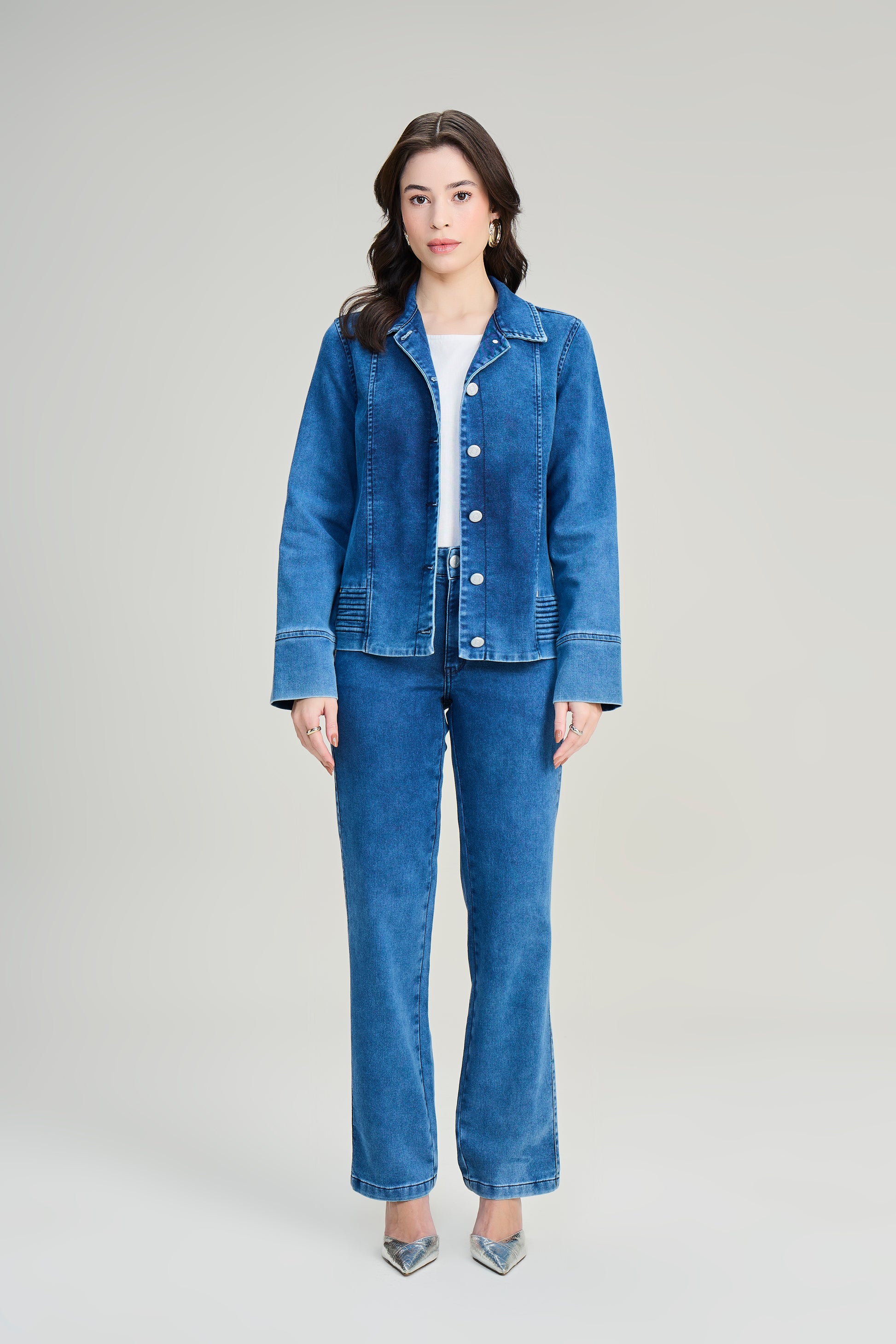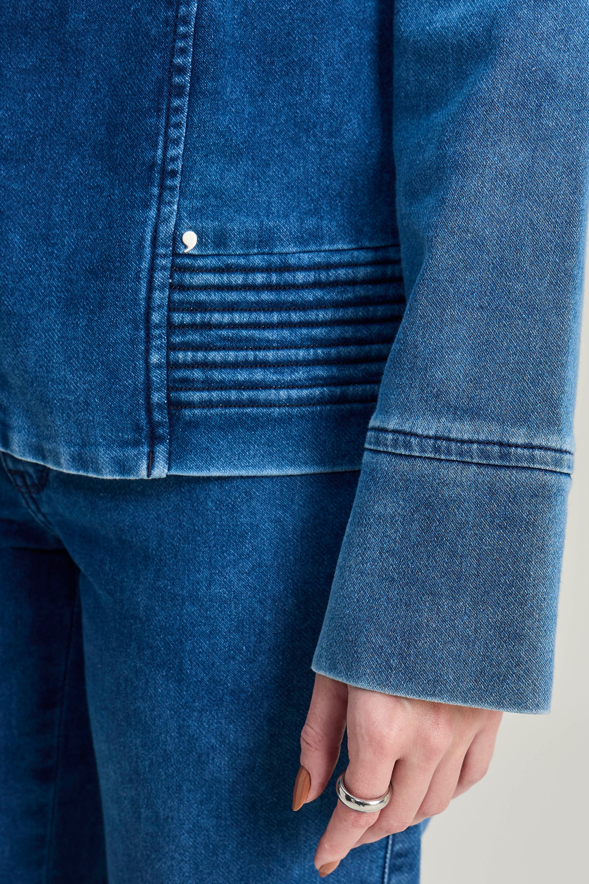 casaco jeans malha manga longa com bordado solto ao corpo jeans com elastano bordado use para um look casual 82% algodao 16% poliester 2% elastano