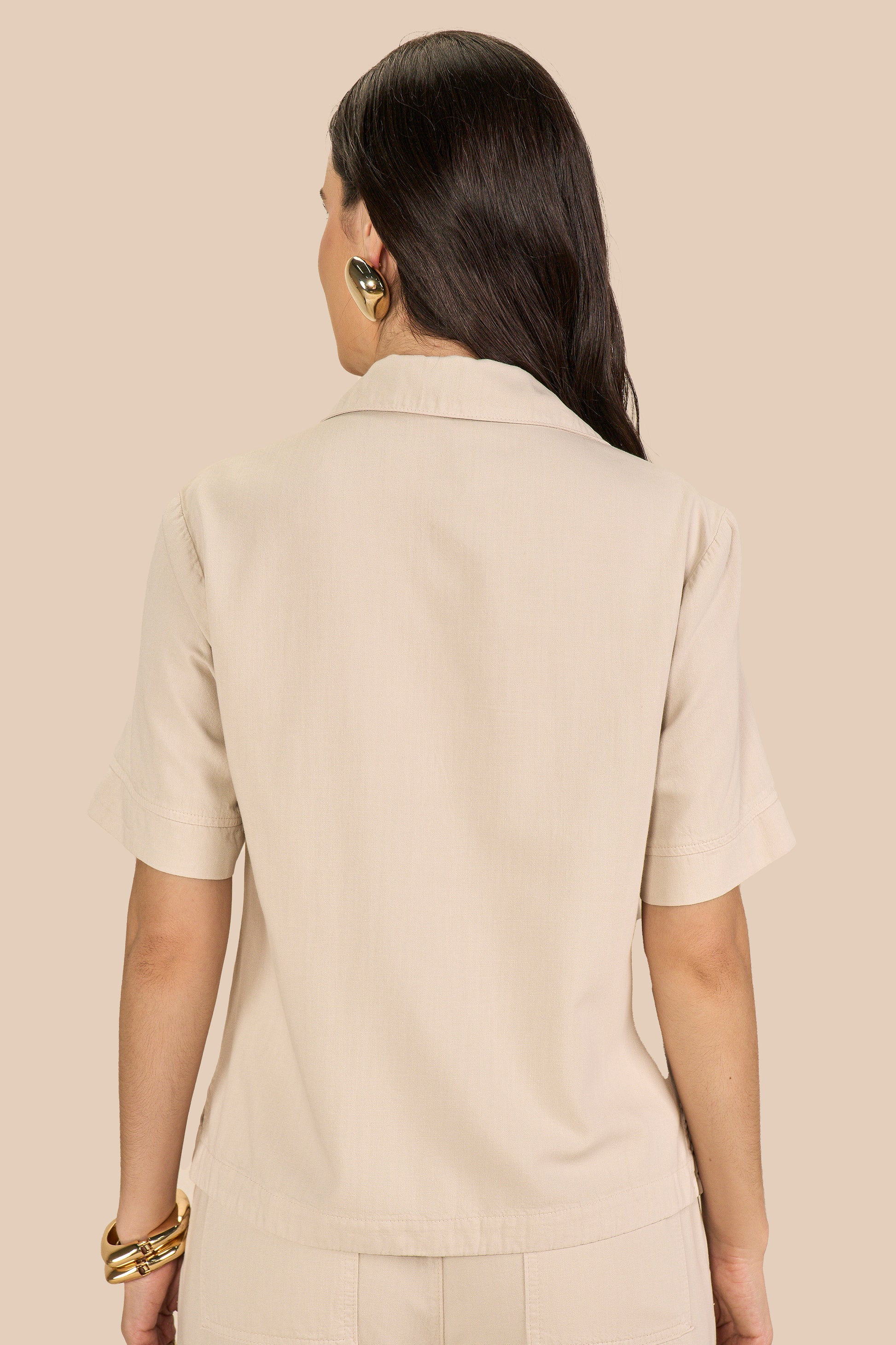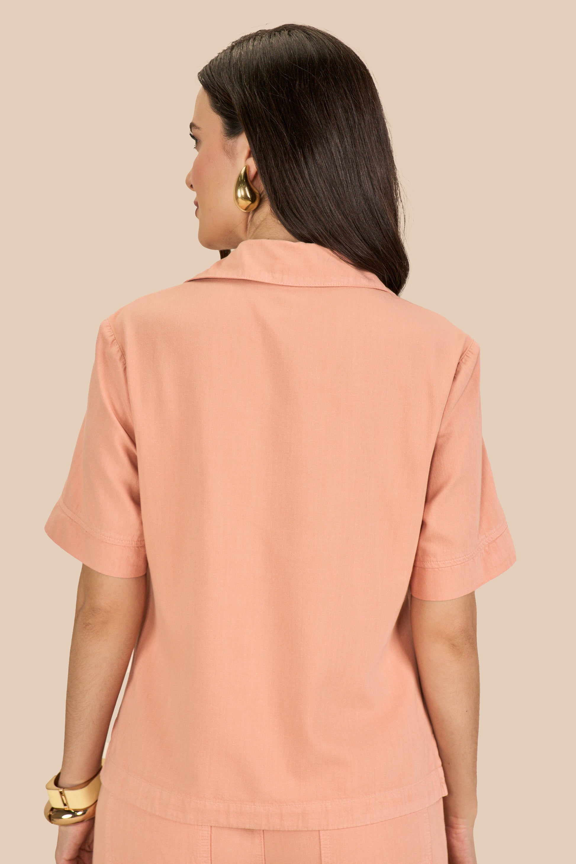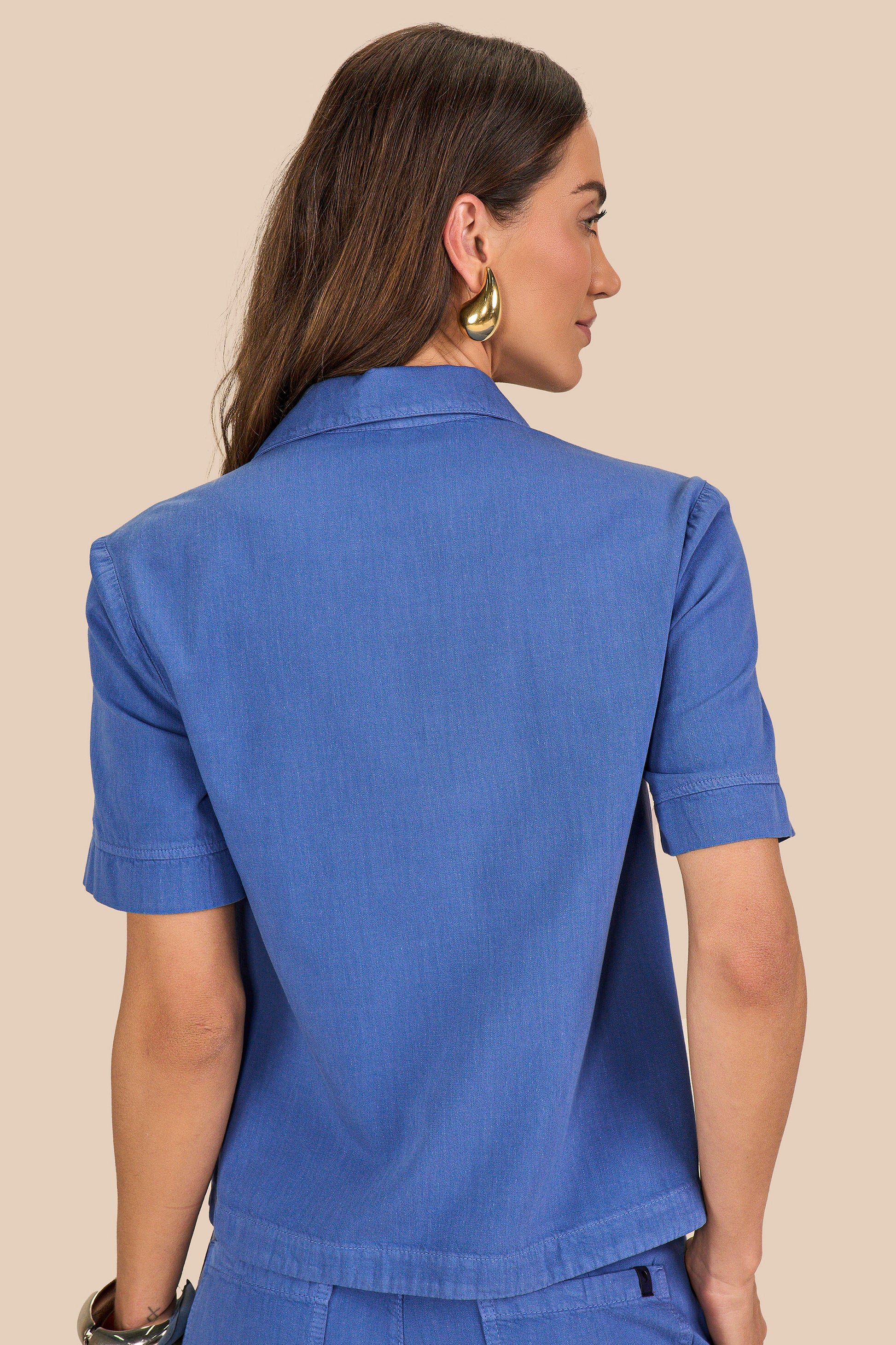 conjunto sarja blusa manga curta e calça pantalona solto ao corpo sarja leve decote v use para um look casual 67% viscose 33% algodão