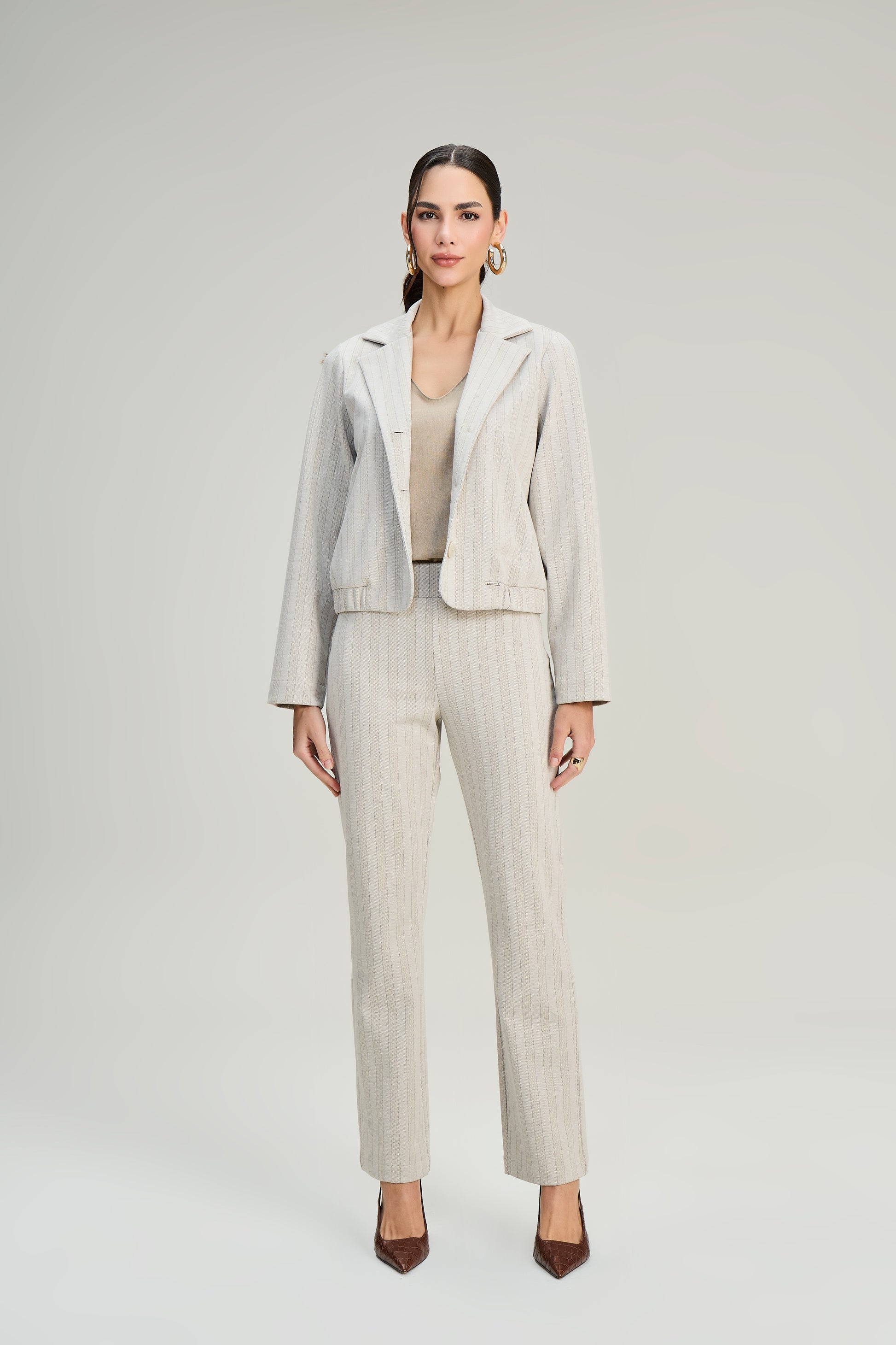 conjunto malha jaqueta e calça reta com cós de elástico solto ao corpo malha cos de elastico use para um look casual 84% poliester 12% viscose 4% elastano