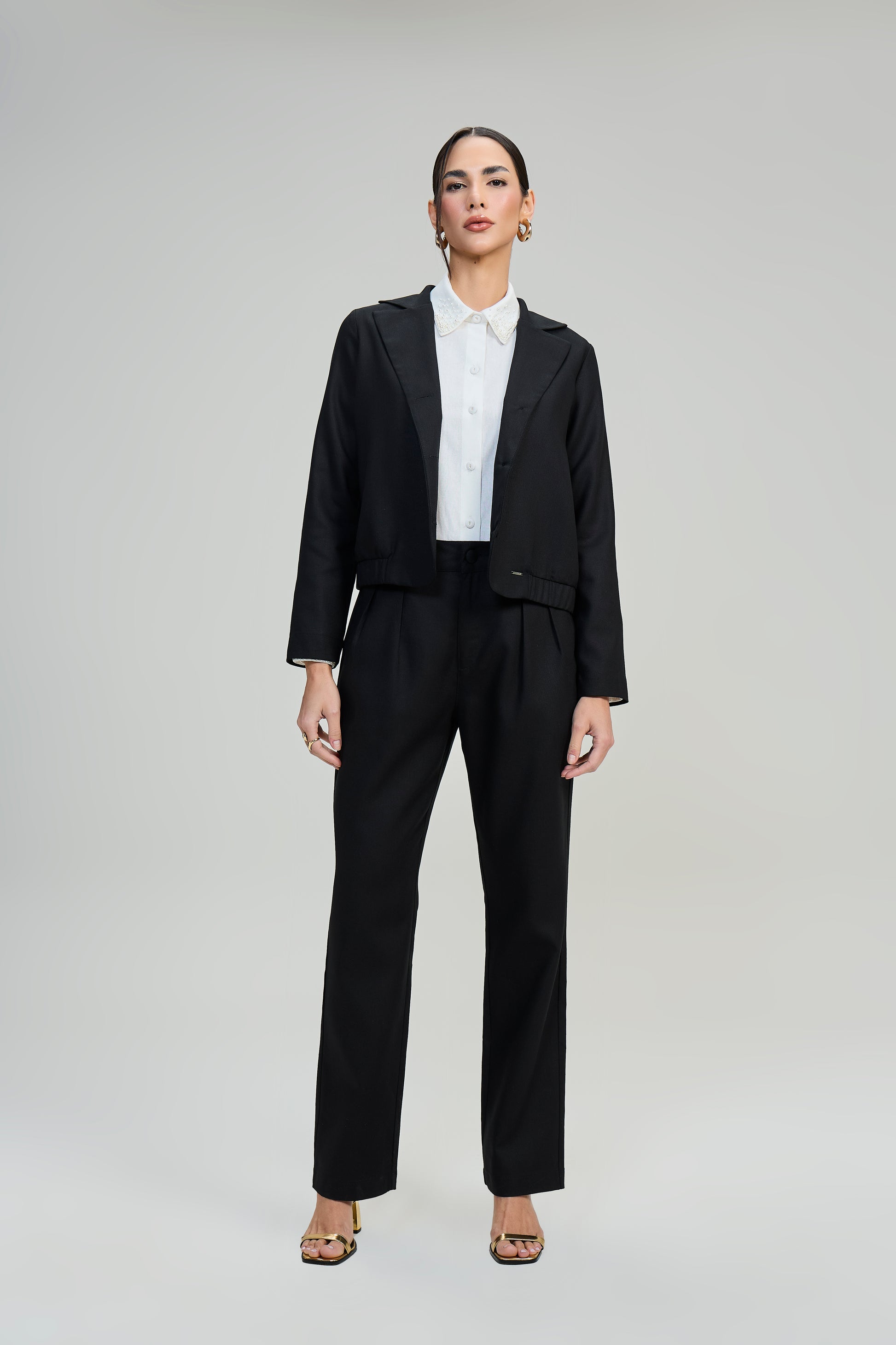 conjunto viscose jaqueta manga longa e calça reta com detalhe passante