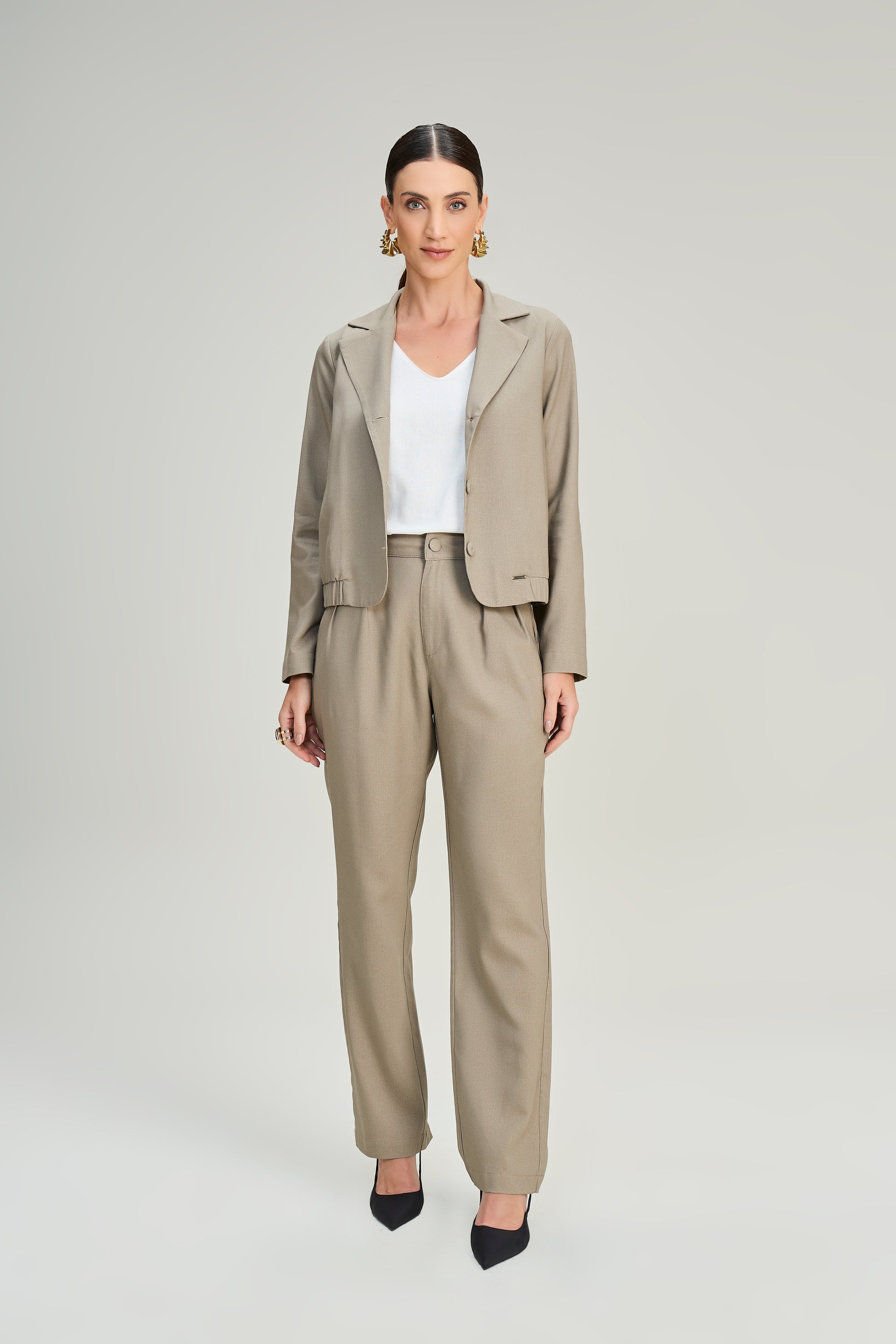 conjunto viscose jaqueta manga longa e calça reta com detalhe passante