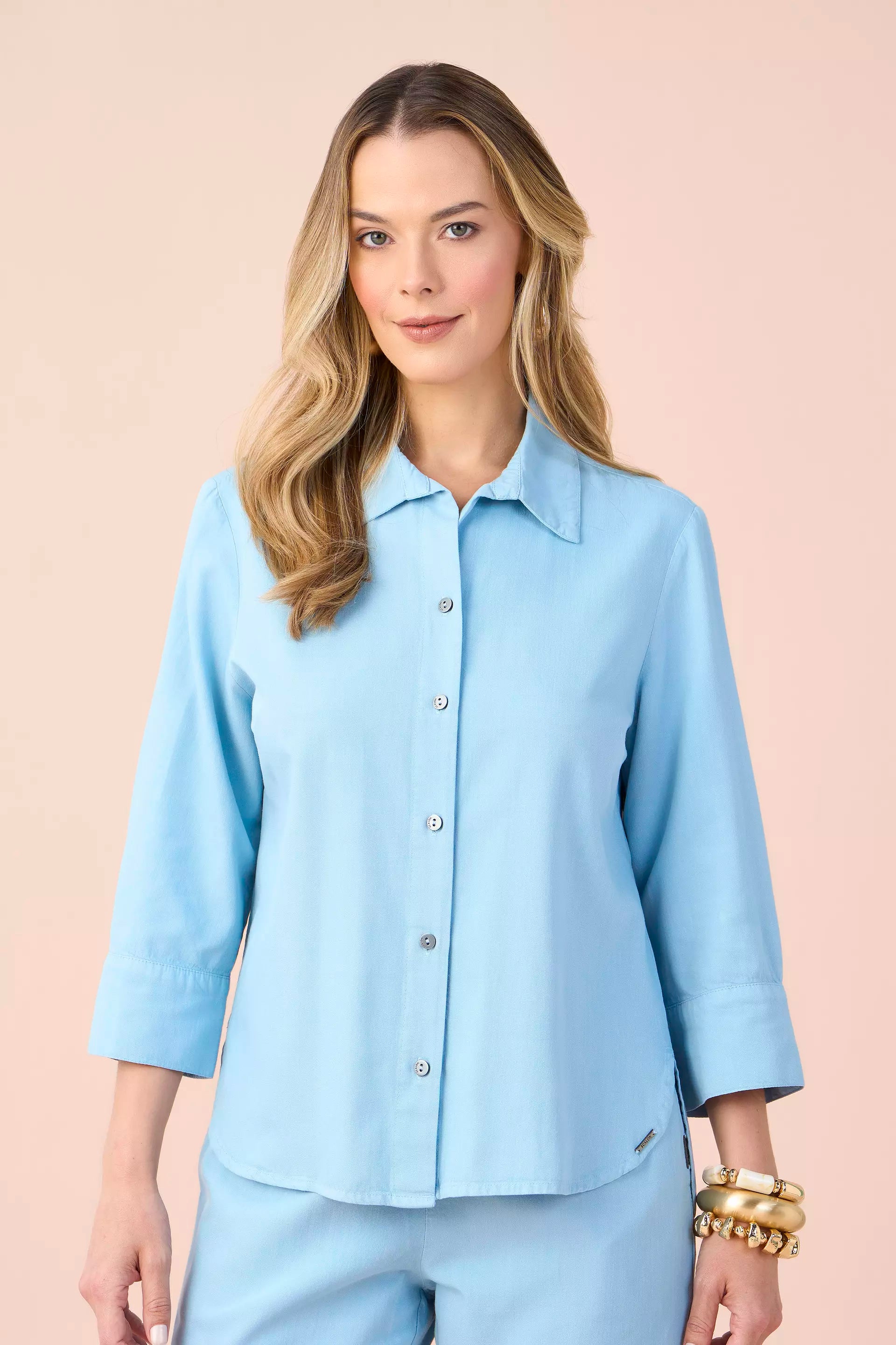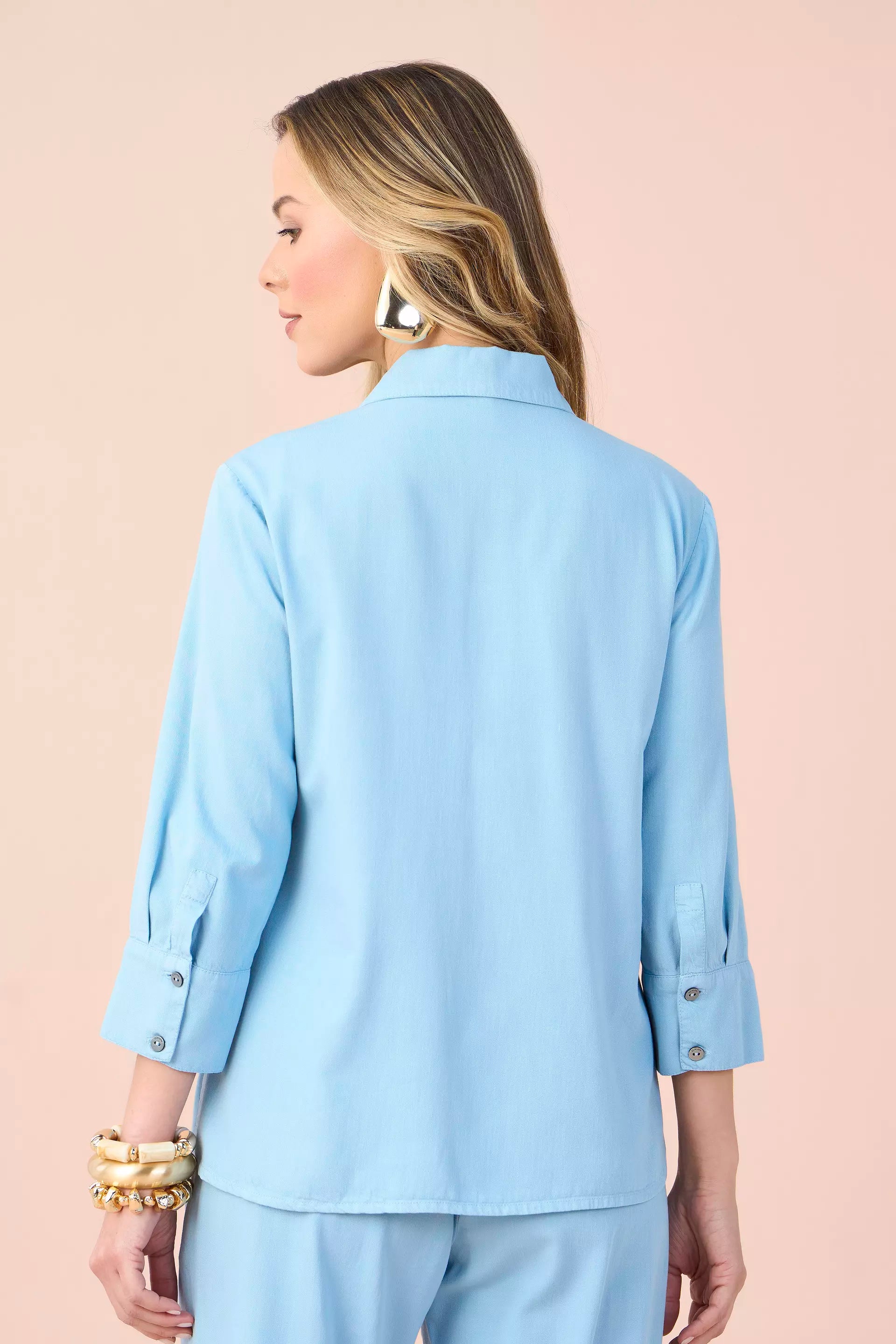 conjunto sarja camisa manga 3/4 e calça mom cós de elástico solto ao corpo sarja leve cos de elastico use para um look casual 67% viscose 33% algodao