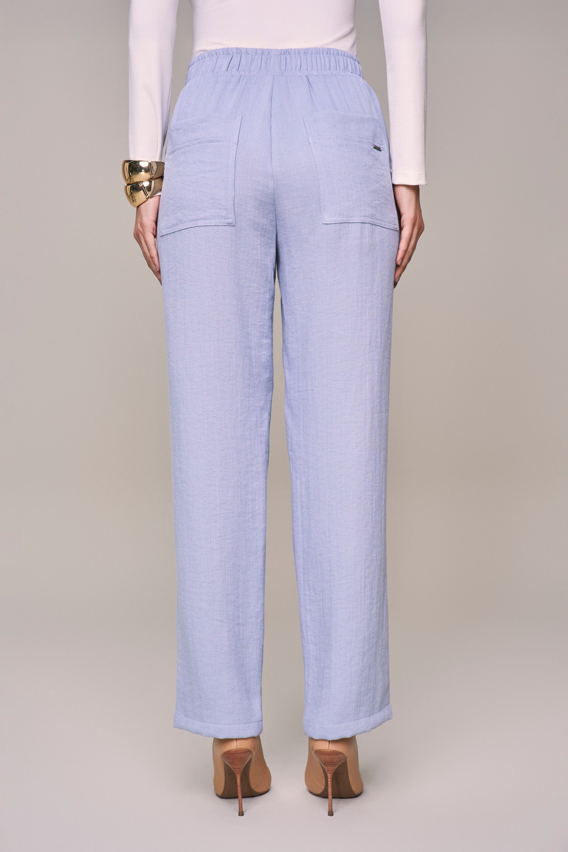 conjunto viscose blusa manga 3/4 e calça reta com intermediária solto ao corpo viscose recortes use para um look casual 67%viscose 27%poliamida 6%linho